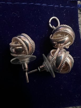 Sterling Silver Knot Earrings And Pendant