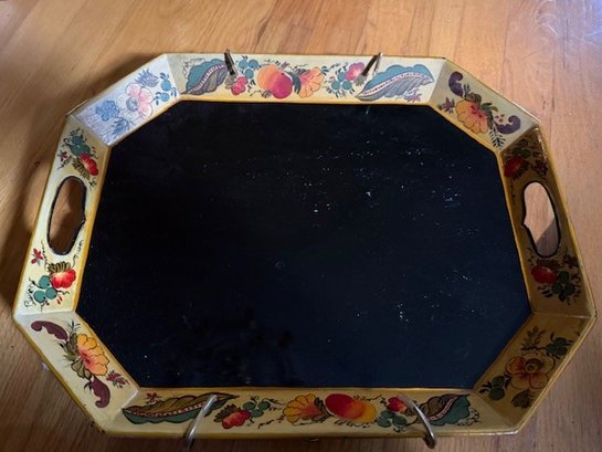 Stunning Extra Large Tole Painted Metal Tray Hexagonal Fall Decor