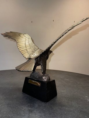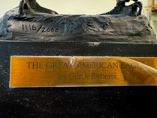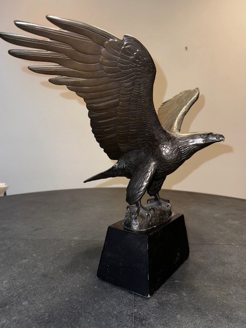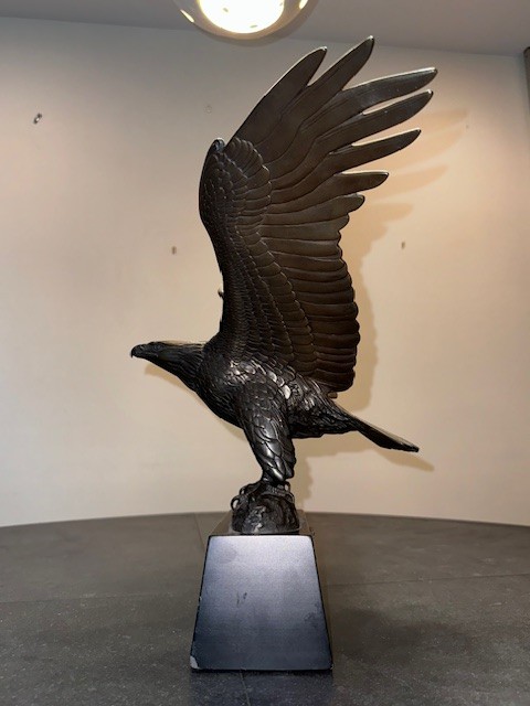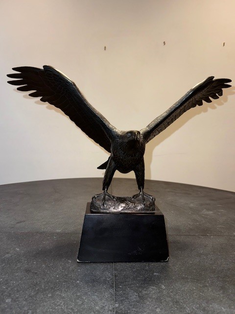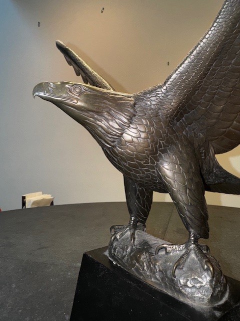A limited edition sculpture depicting a majestic eagle, crafted from bronze using the technique of bronze casting. This art piece pays homage to American heritage and showcasing the beauty of wildlife in a unique and detailed sculpture form. A must-have for art enthusiasts and collectors, this statue captures the essence of a strong and powerful symbol of the United States.