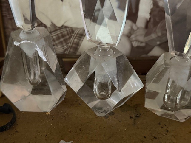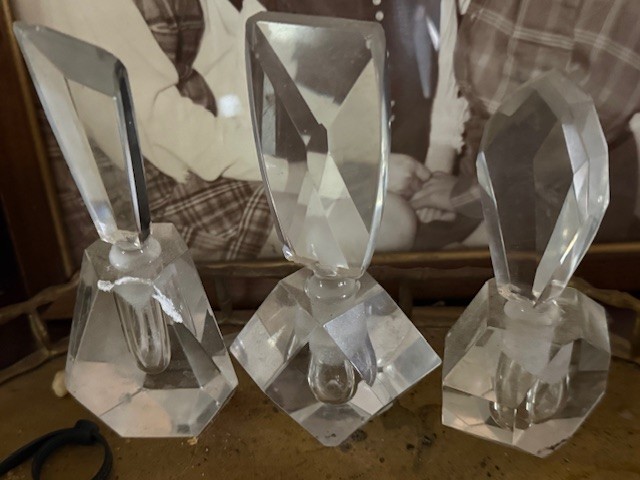 Three Crystal Perfume Bottles Approx 6-7" Tall