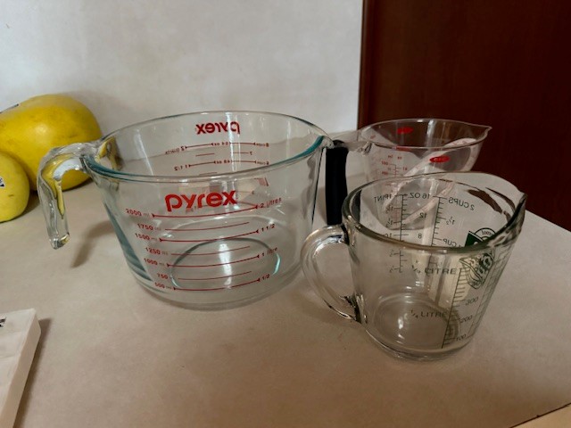 Three Pyrex Measuring Cups