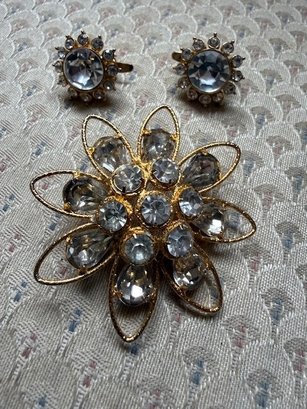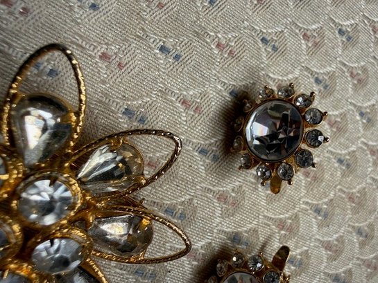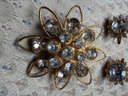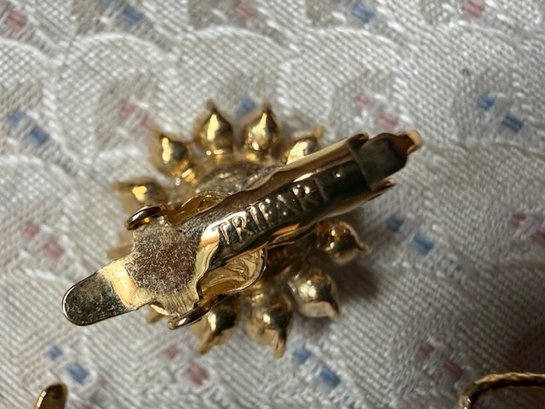 Trifari Clip On Star Burst Earrings And Brooch Ensemble