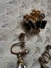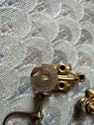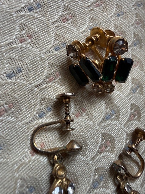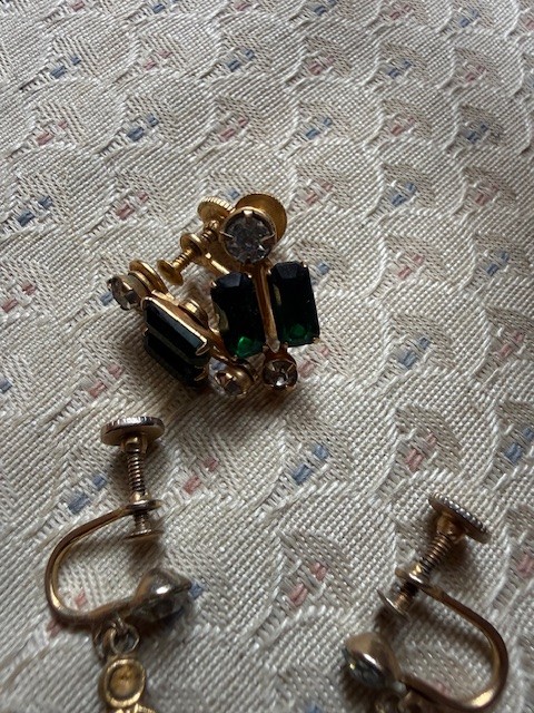 Two Pair Of Emerald Colored Stone Screw Back Earrings,