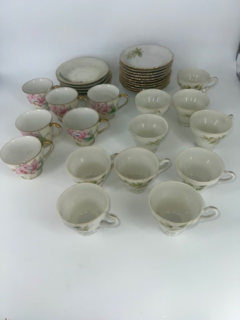 Two Sets Of Occupied Japan Tea Cups And Saucers Floral Motifs 16 Total 10/6