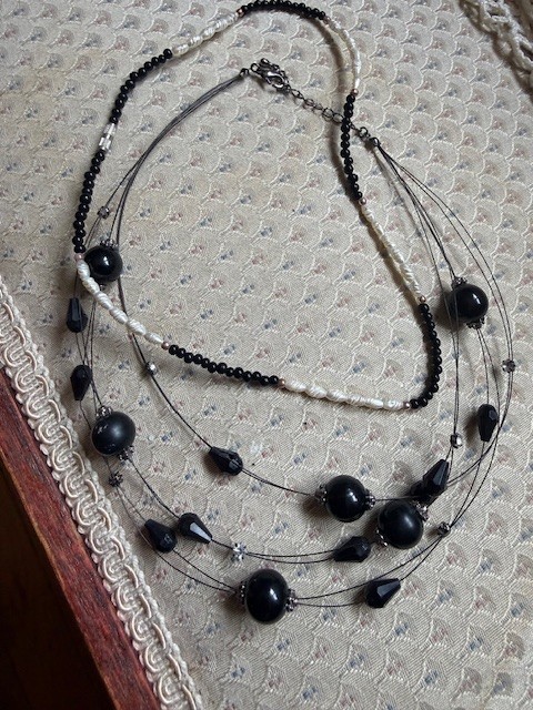 Two Silver And Black Glass Beaded Necklaces, 16"