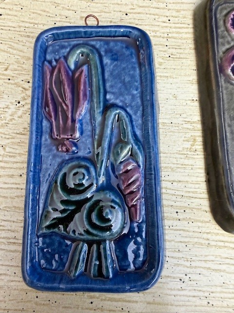 Two Stunning Tiles Floral, Made In Israel Approx 5.5" Tall