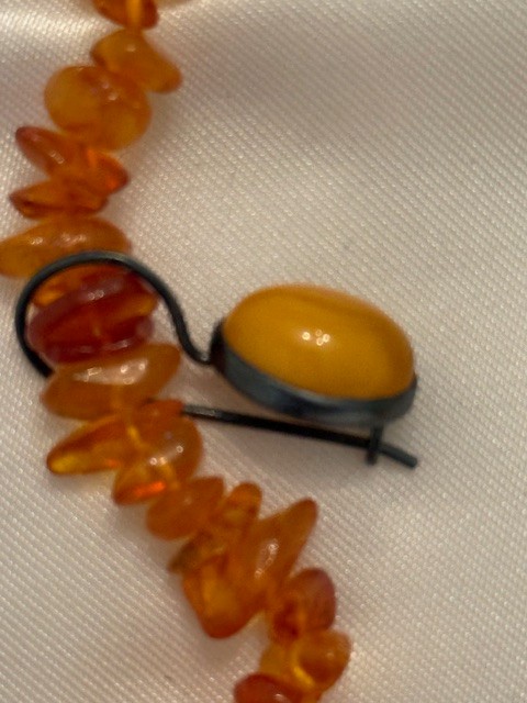 Vintage Amber Necklace And Amber? Tone Earrings