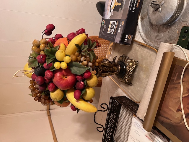 Vintage Footed Bowl With Faux Fruits Approx 14" Tall