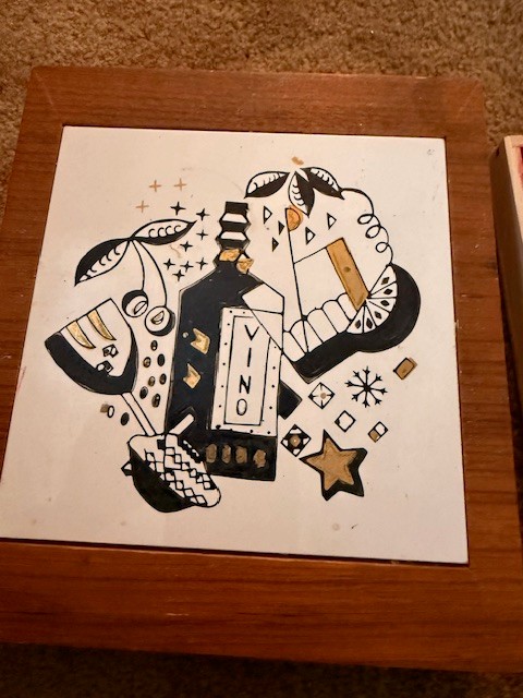 Vintage Fred Roberts Vino Barware And Cheese Set In Tiled Case