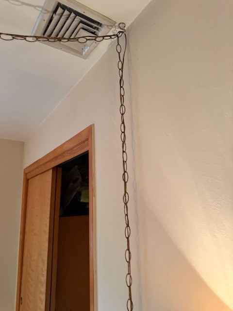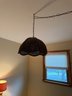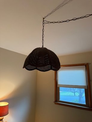 Vintage MCM Brown Wicker Hanging Swag Lamp Overhead Fixture Chain To Outlet