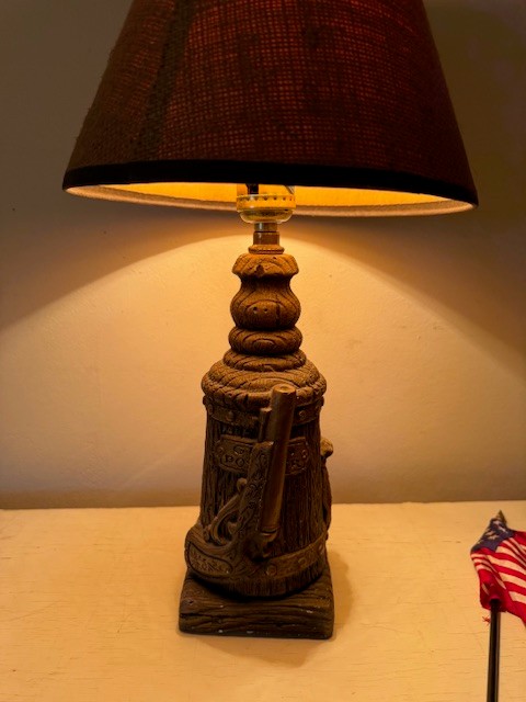 Vintage Western Themed Wooden Based Table Lamp