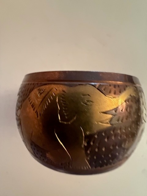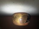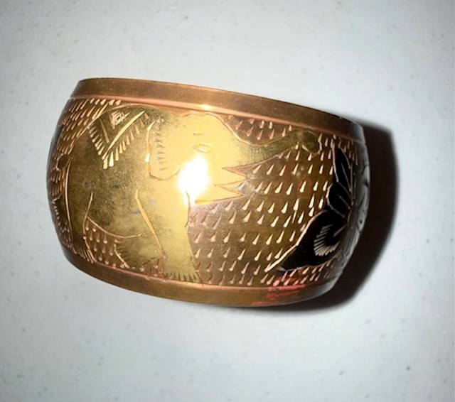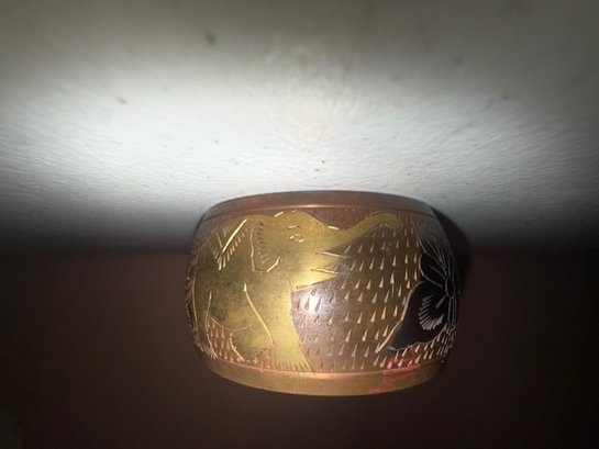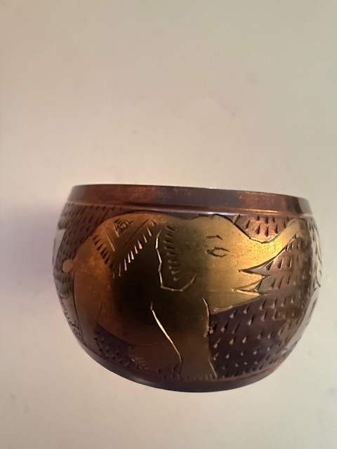 Wide Etched Brass Bracelt With Elephants