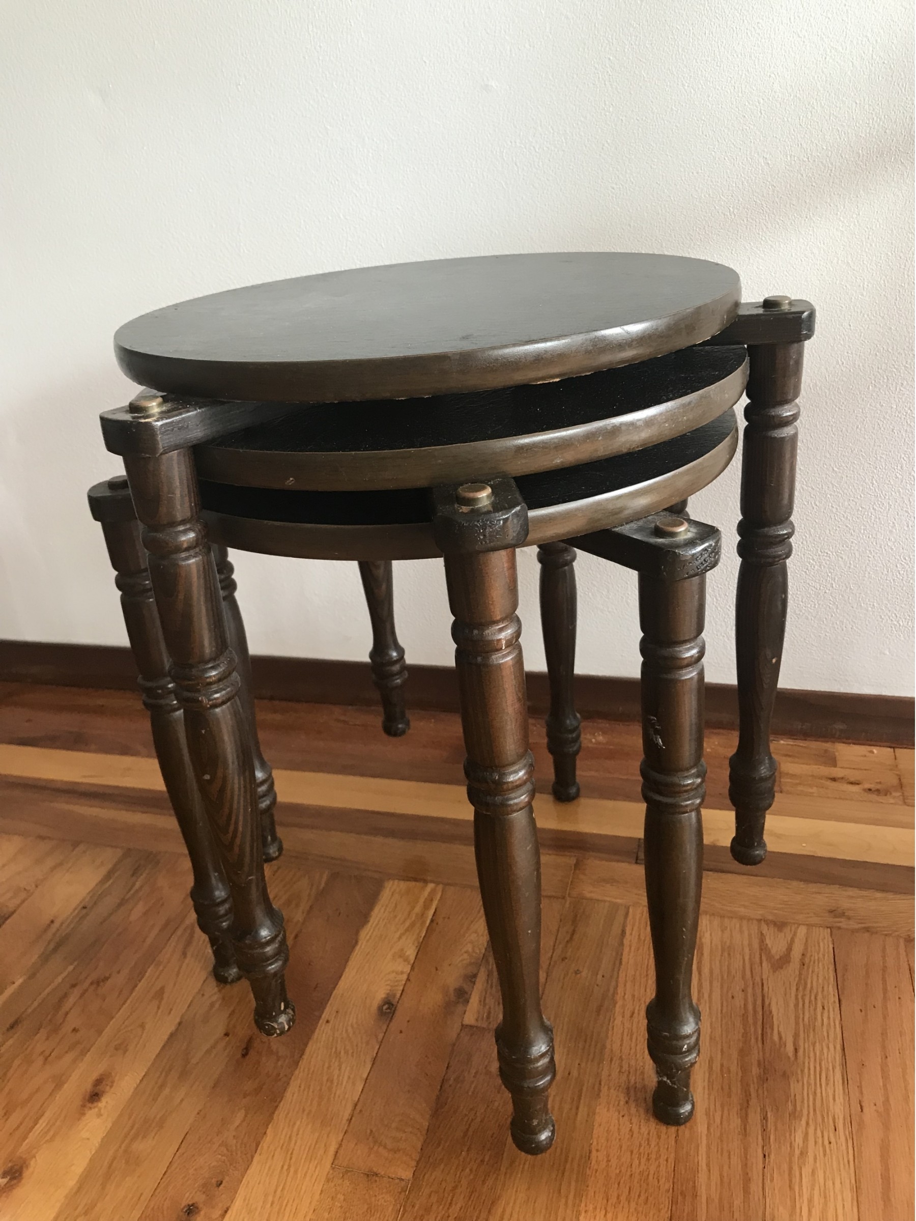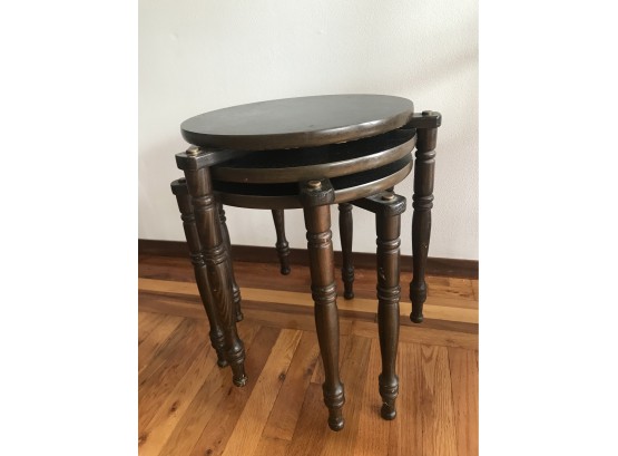 Three black round top nesting tables