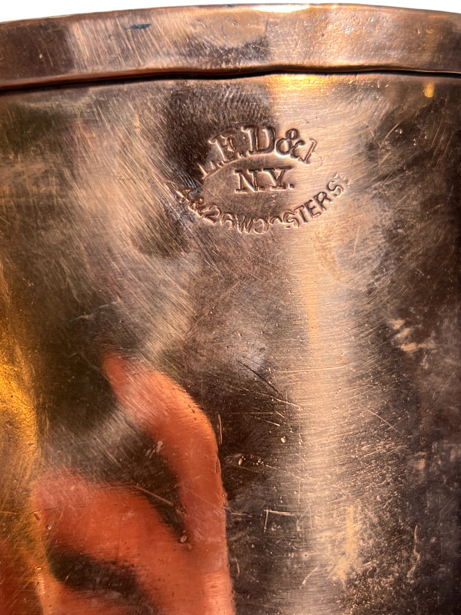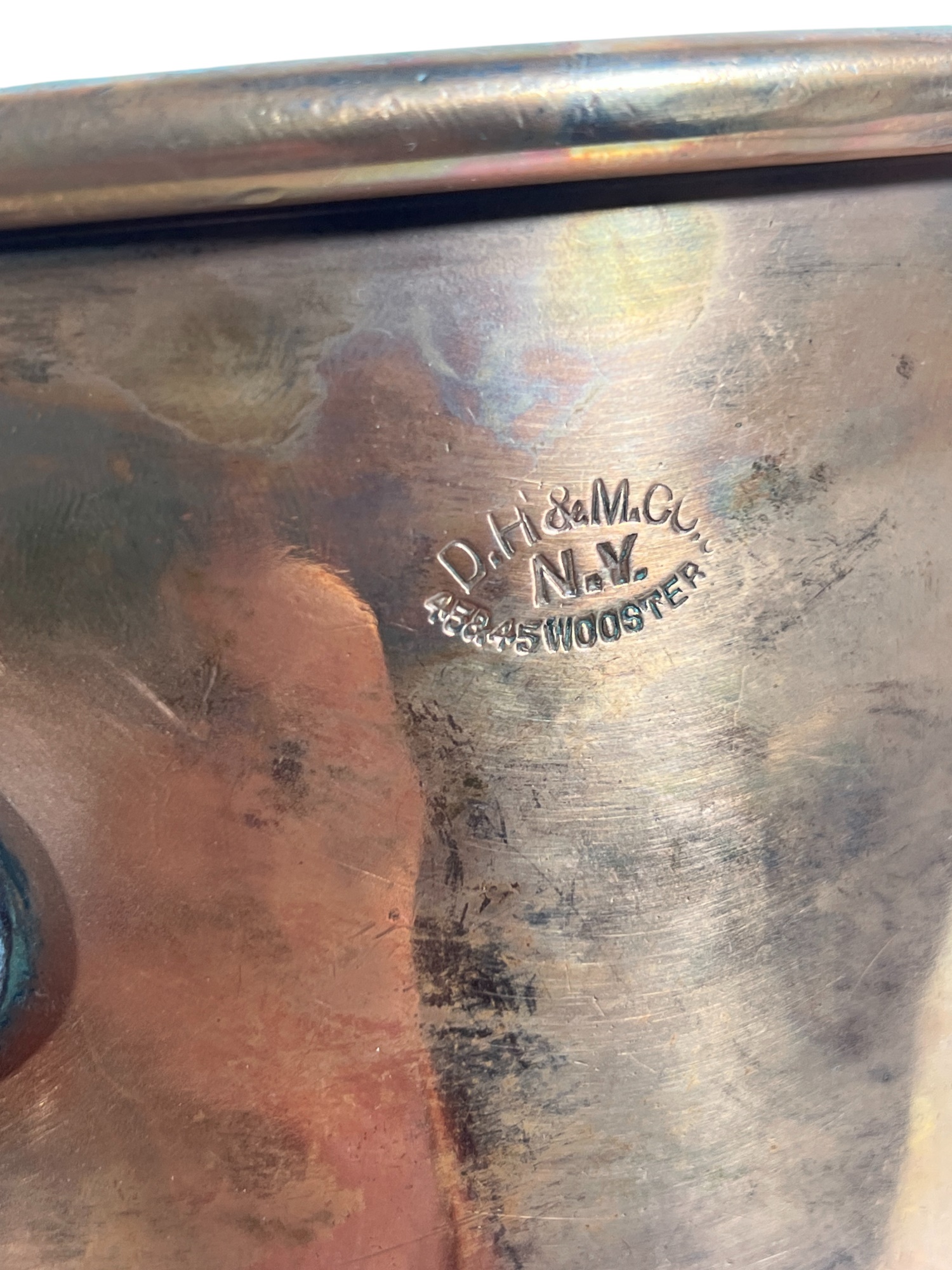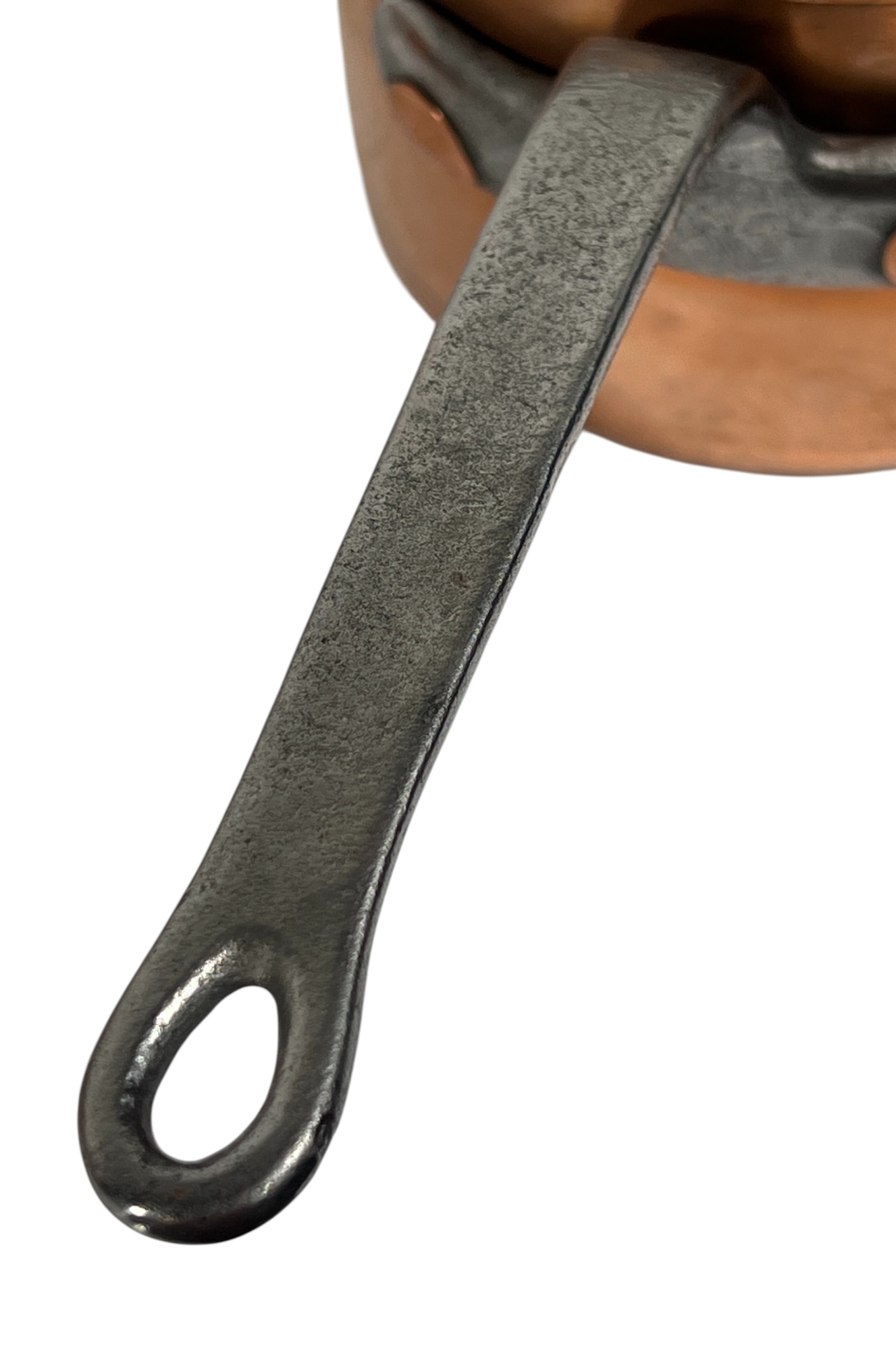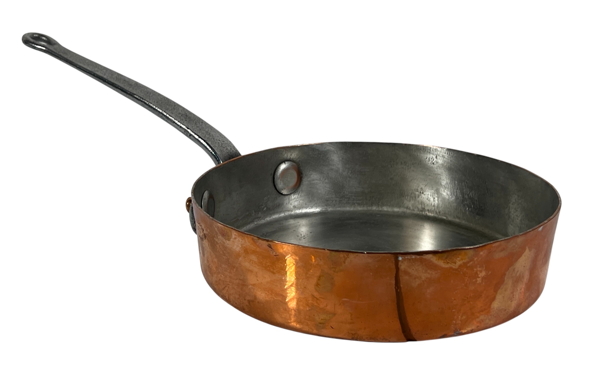 LFD & H copper sauce pan and (2) DH & M copper pots. (19th/20th c). 5 x 7 3/4 x 15 inches. Condition: Good. Temp No 8602
