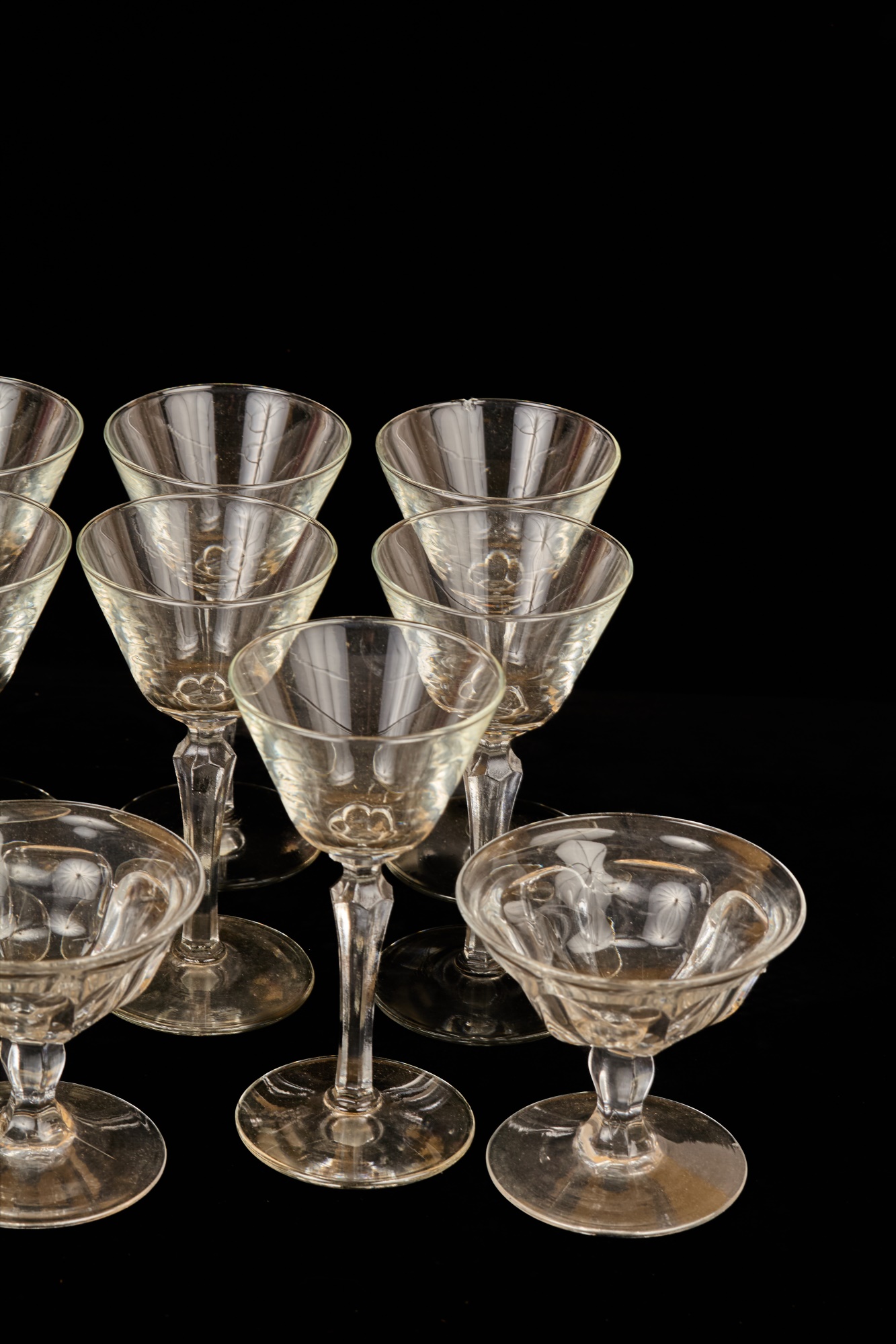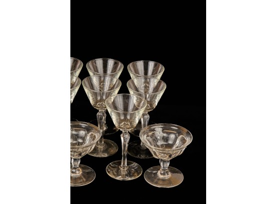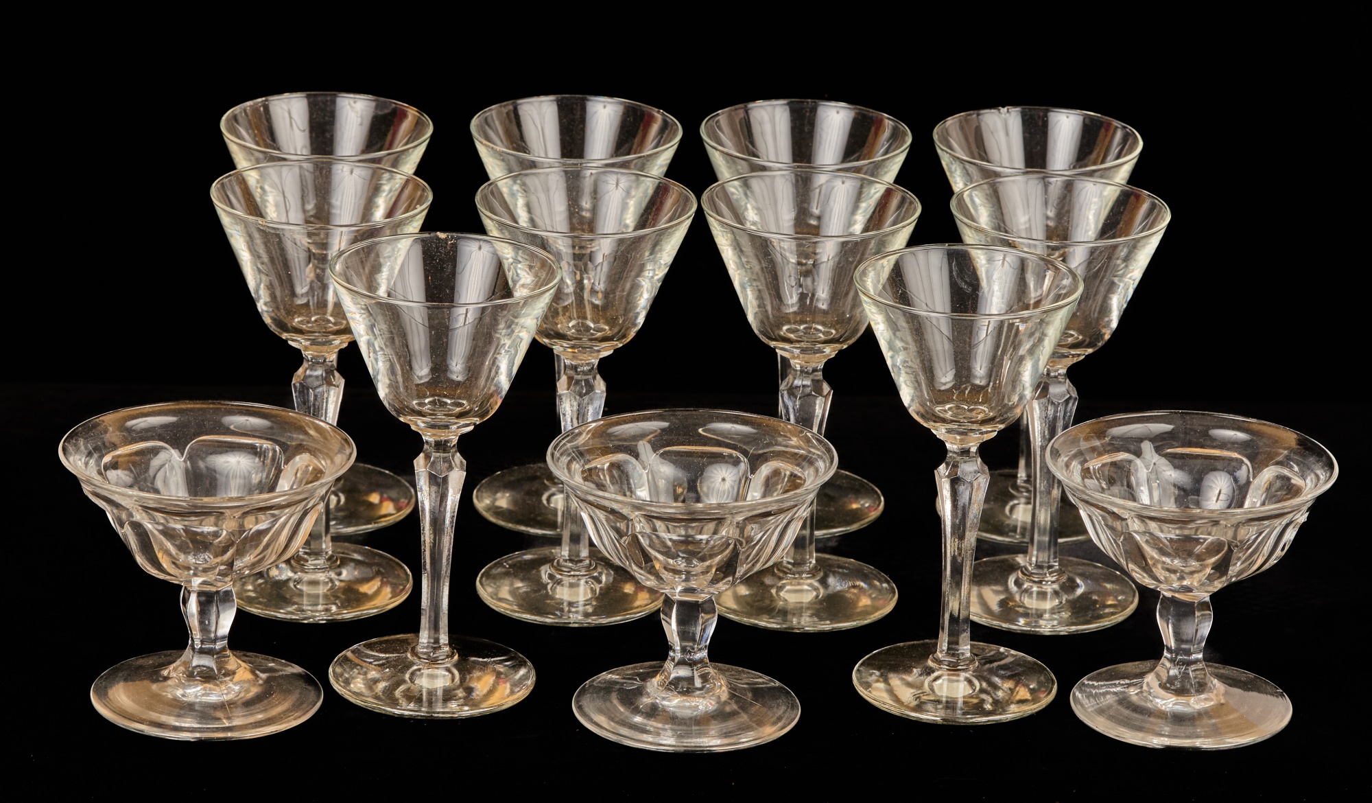 Libbey 3001 5.75 inches, Heisey Colonial 3.5 inches Condition: Good, (1) sherry stem has a rim chip Temp No 6106