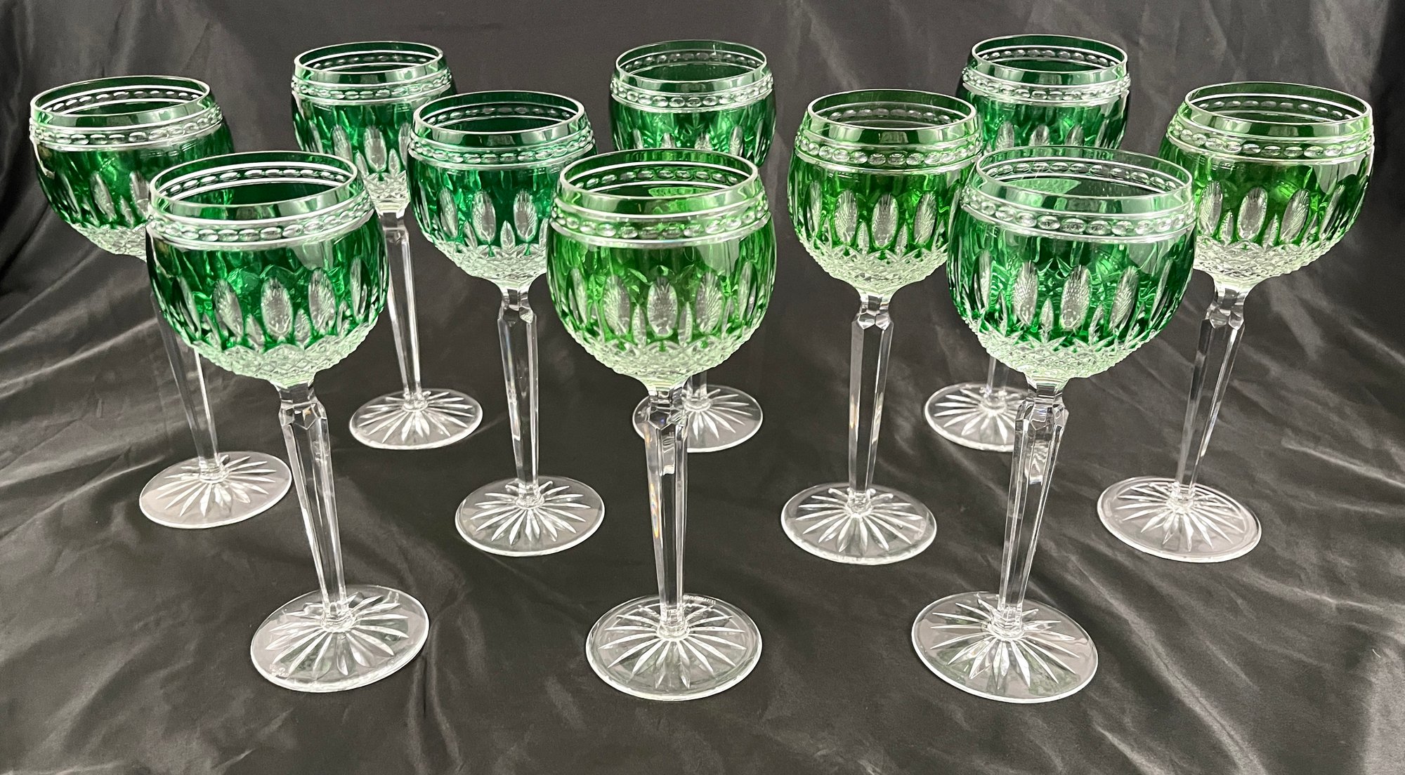 Waterford Crystal wine glasses. 8" x 2 3/4". Signed