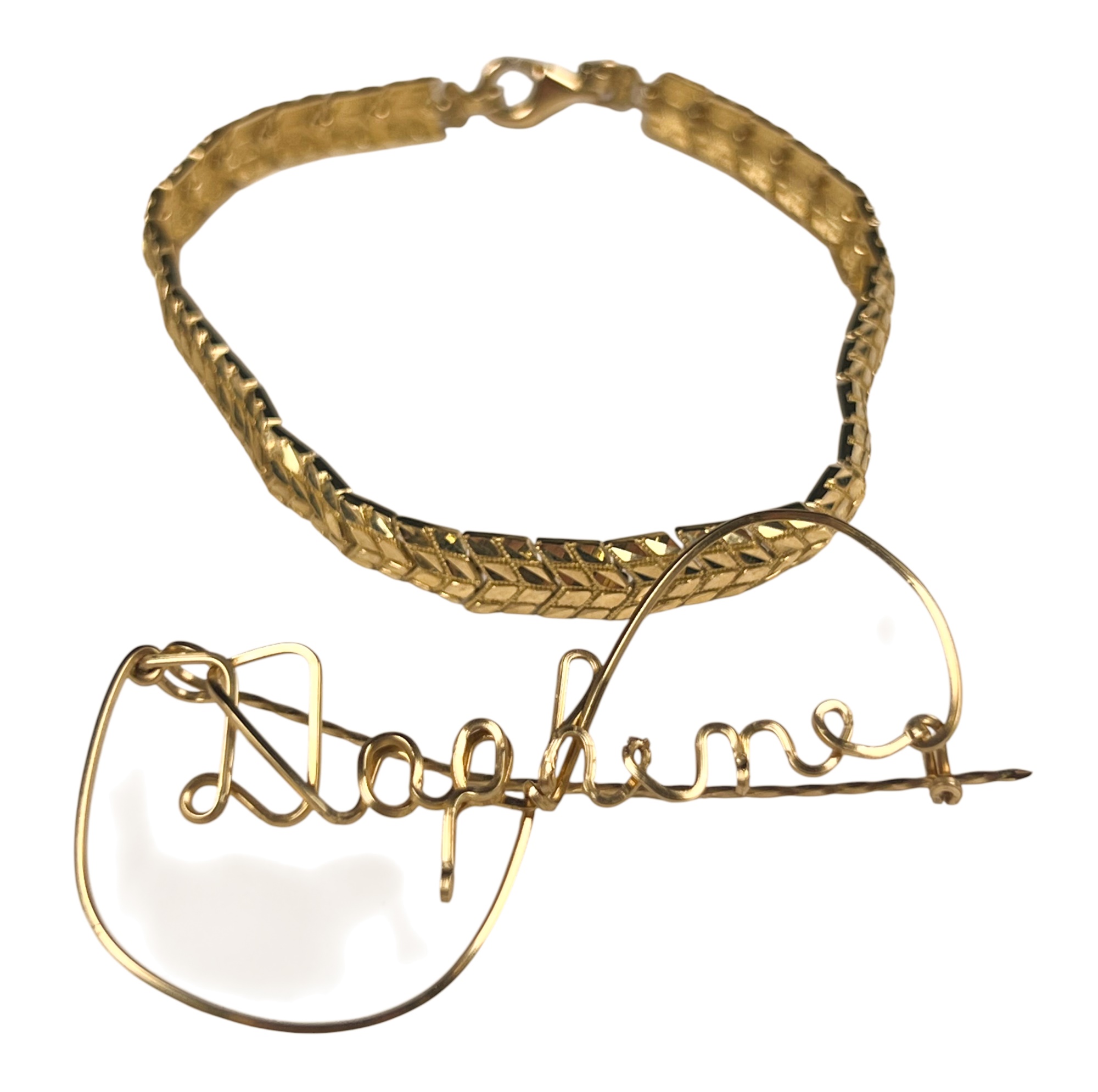 Bracelet marked 10K, brooch tests as 10K. Bracelet 8". 6.4 DWT Condition: Good, used