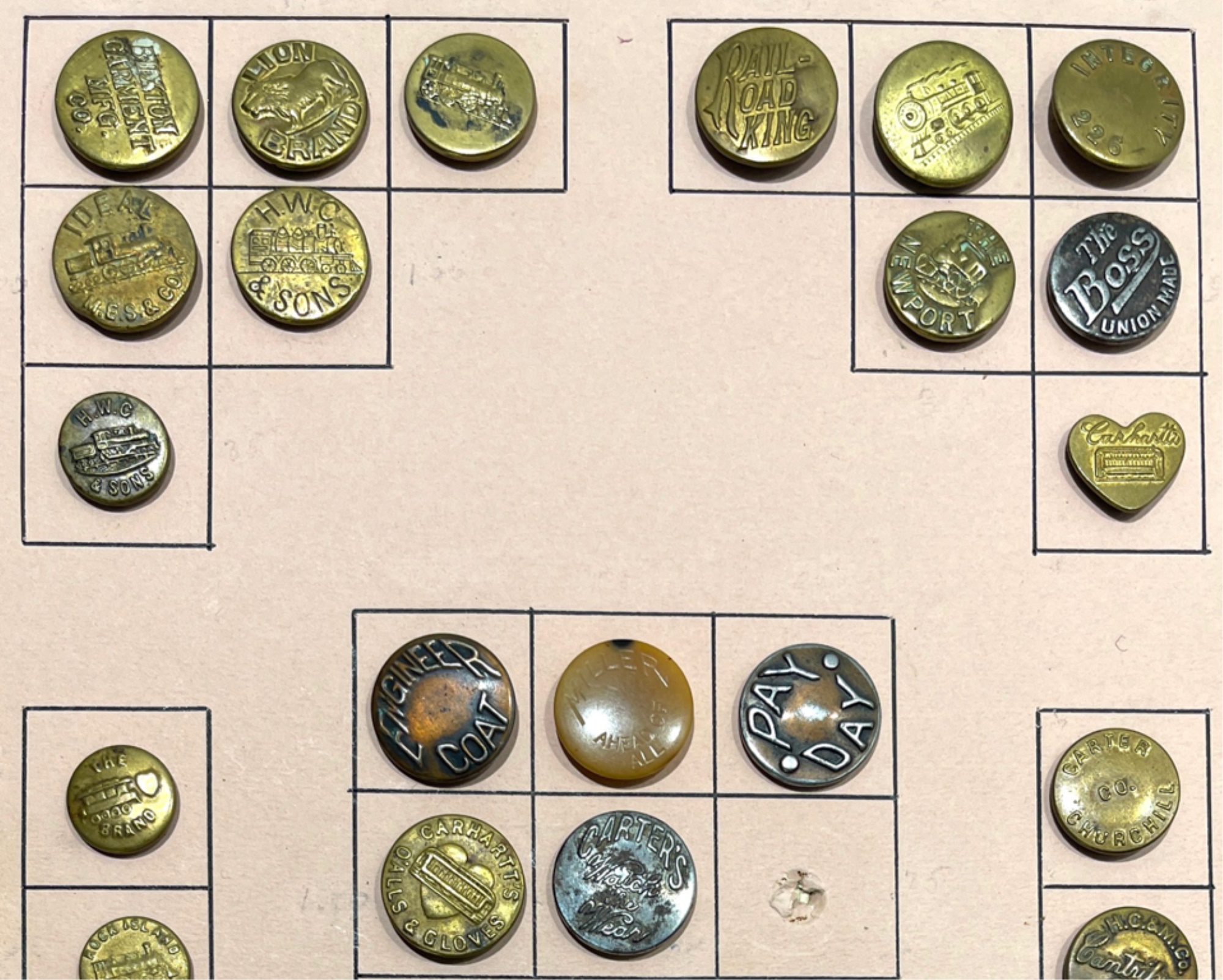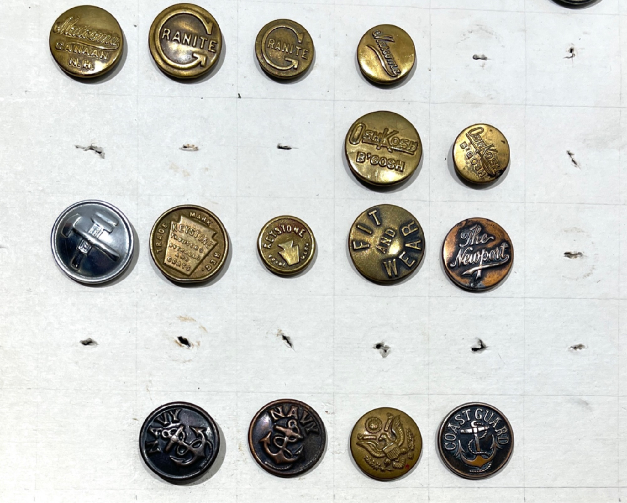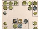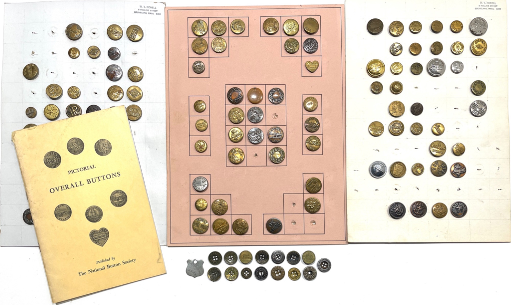 With overall button pictorial guide. Some mounted on (3) cards. 12" x 8" and 12" x 9" cards