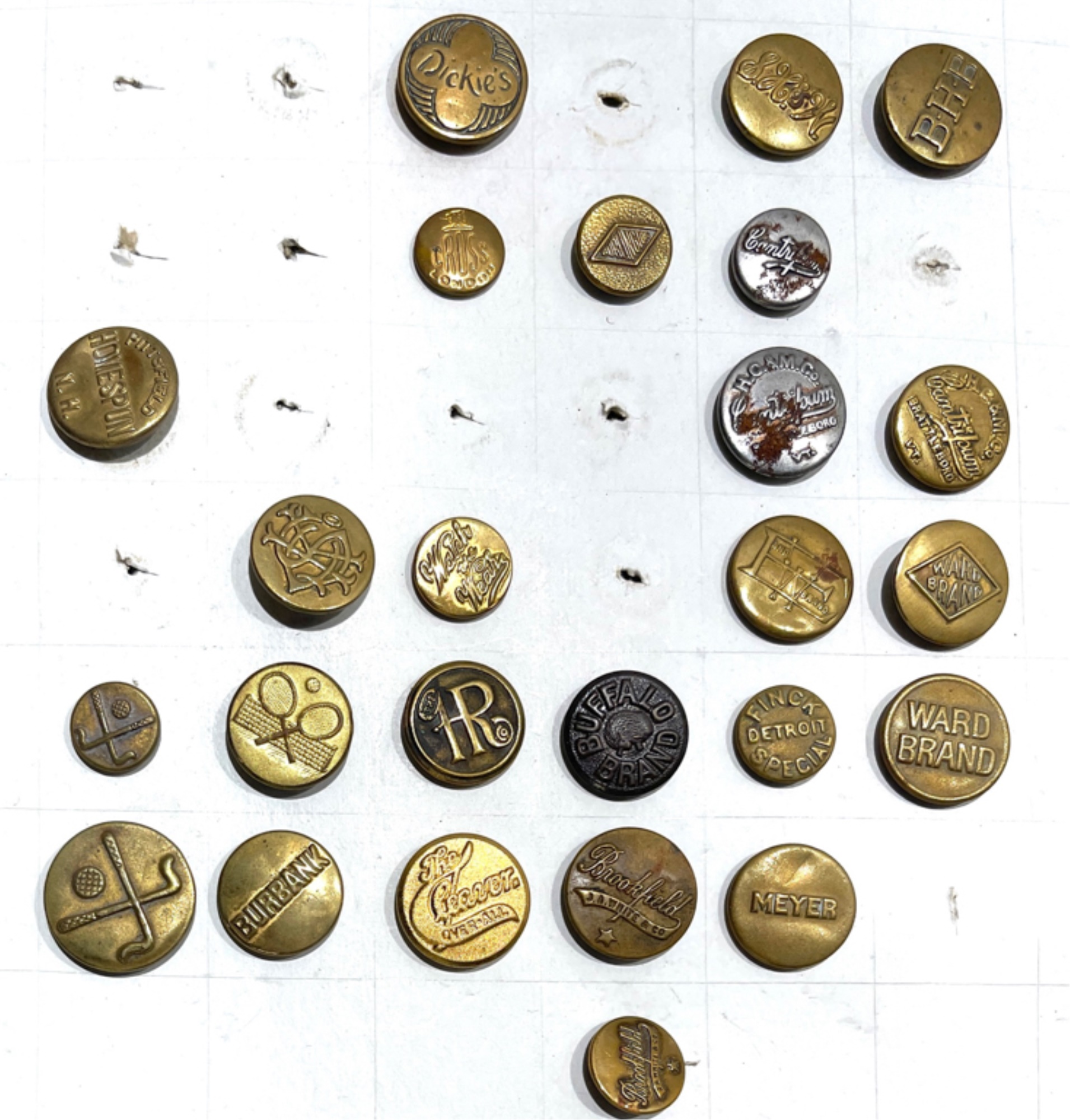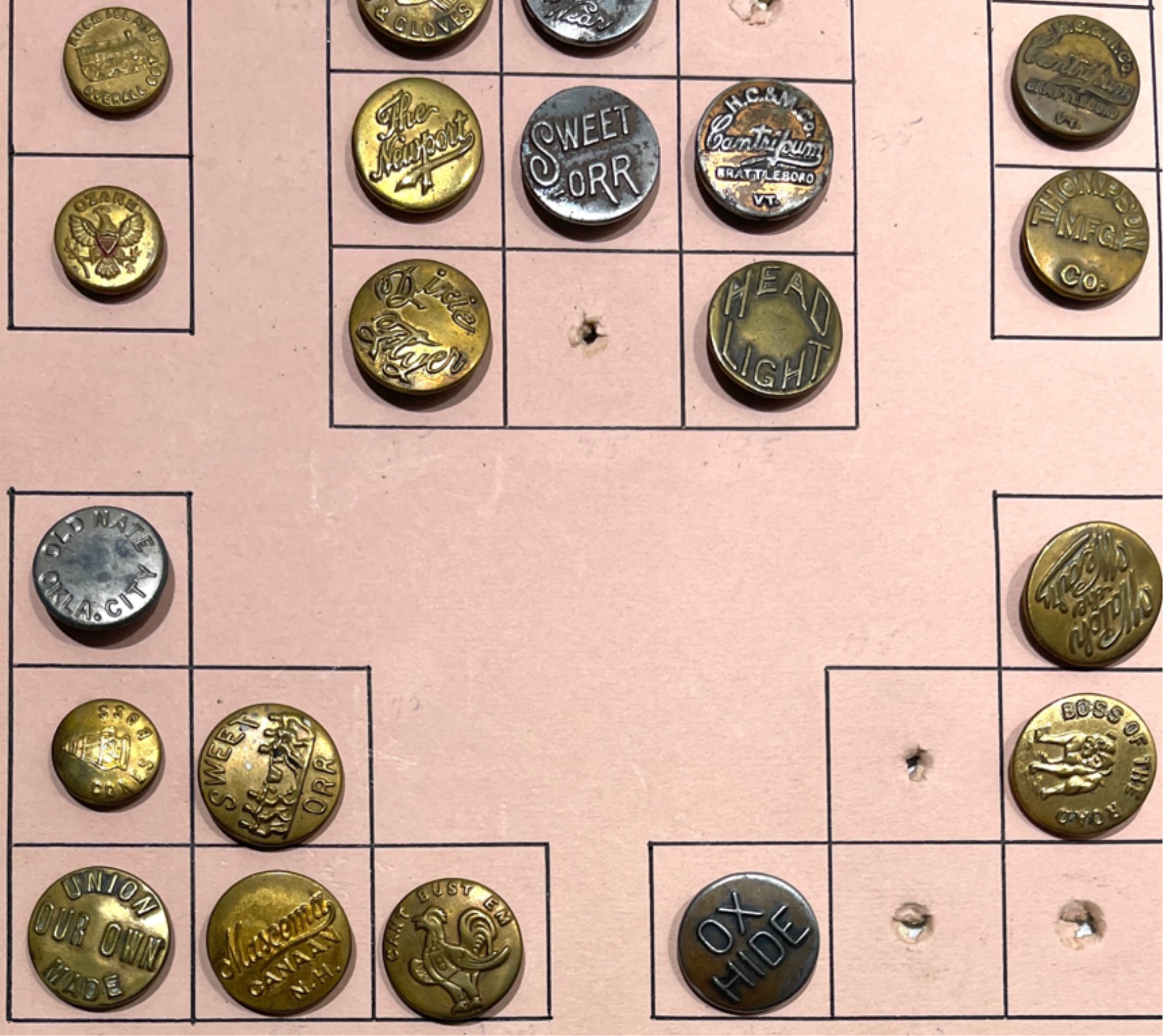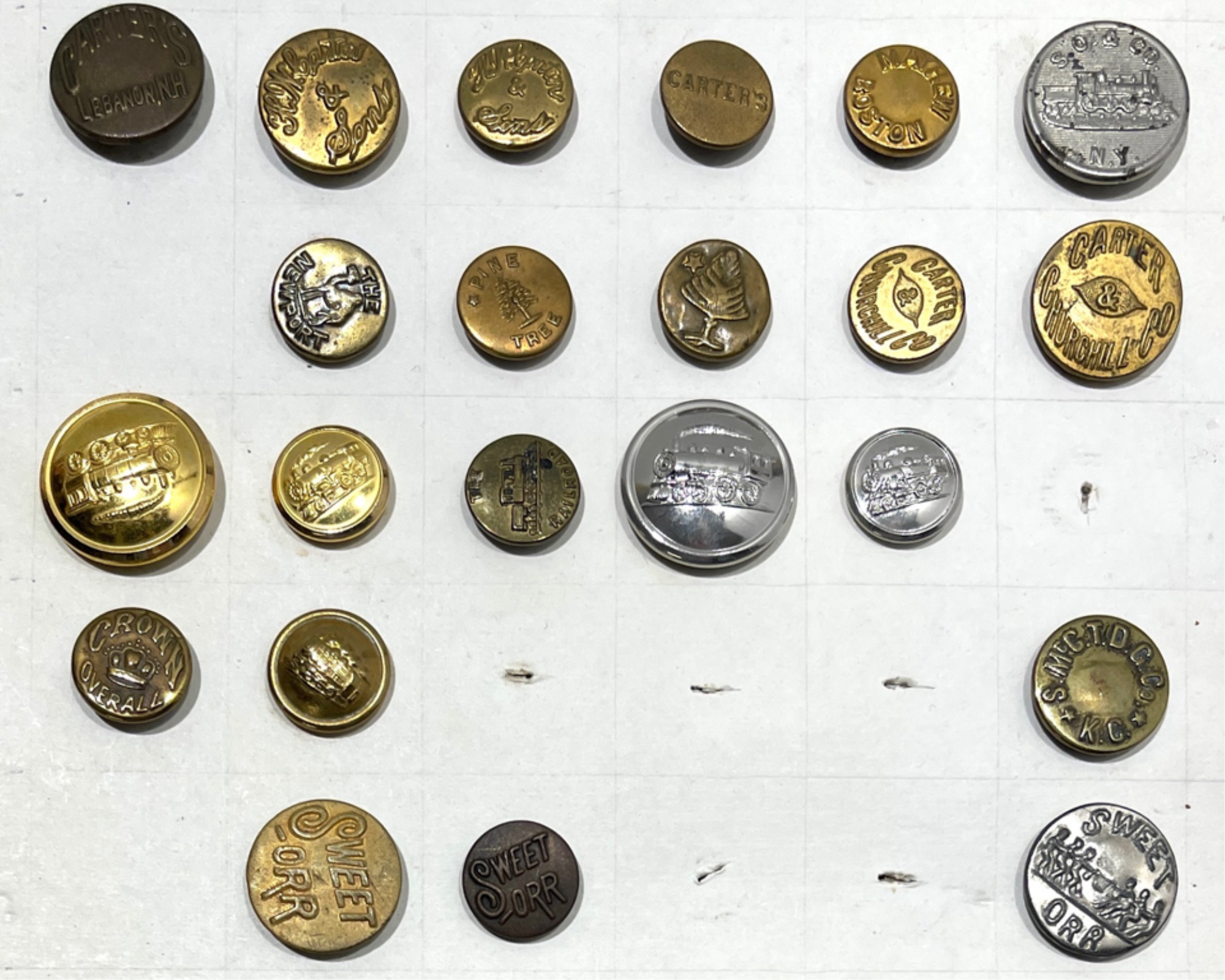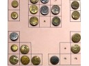 With overall button pictorial guide. Some mounted on (3) cards. 12" x 8" and 12" x 9" cards