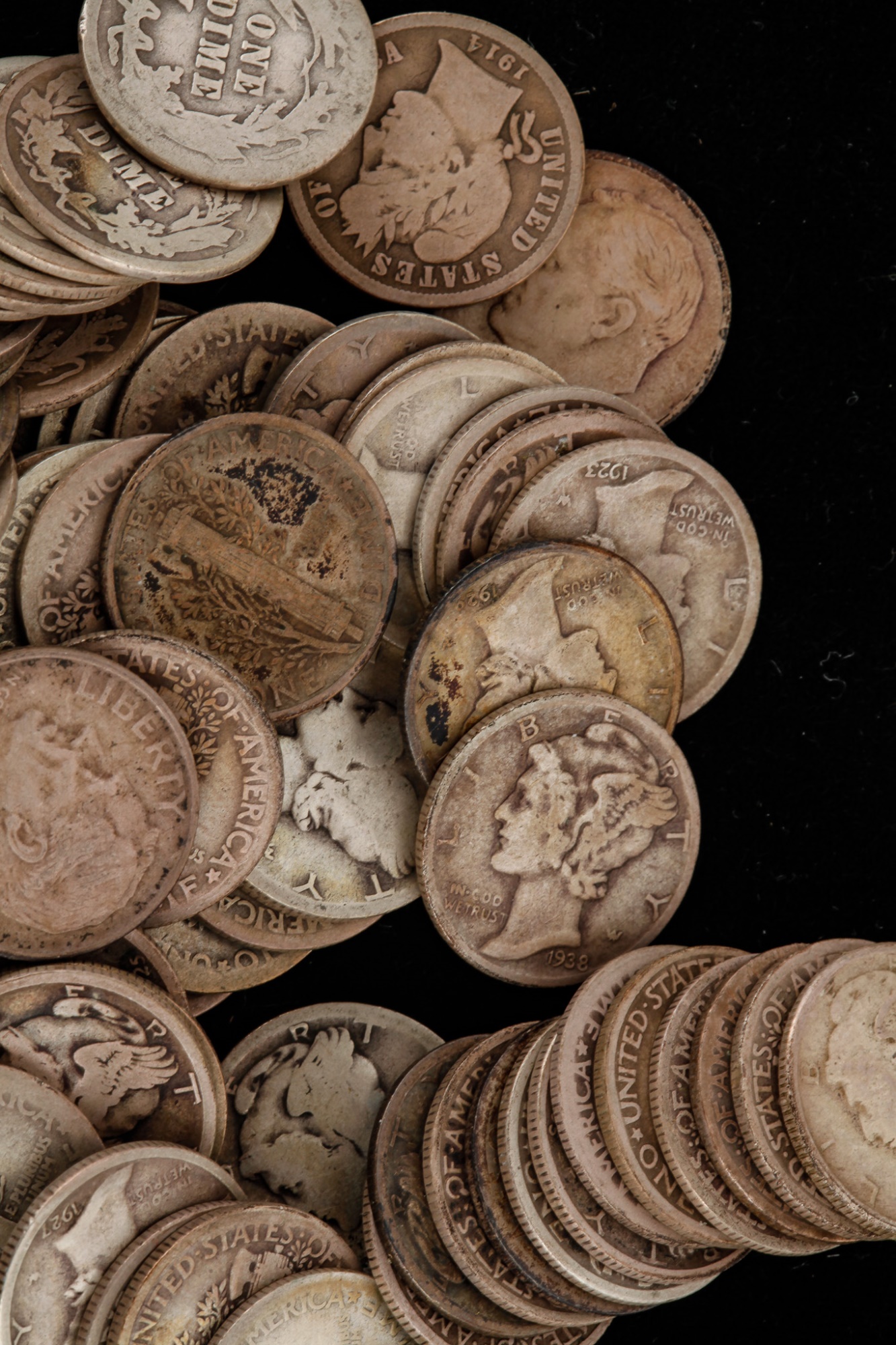Barber, Mercury and Roosevelt. Weight does not include Roosevelt dimes-some clad