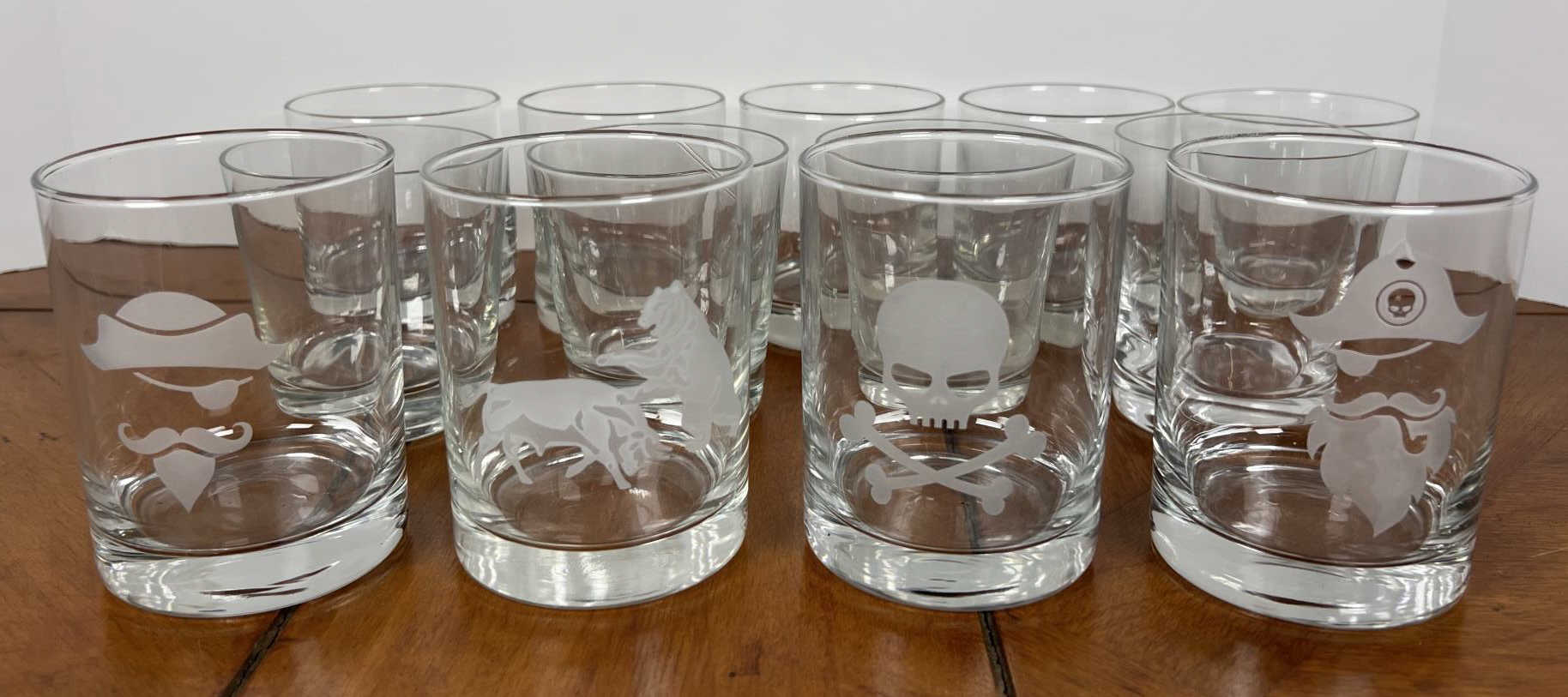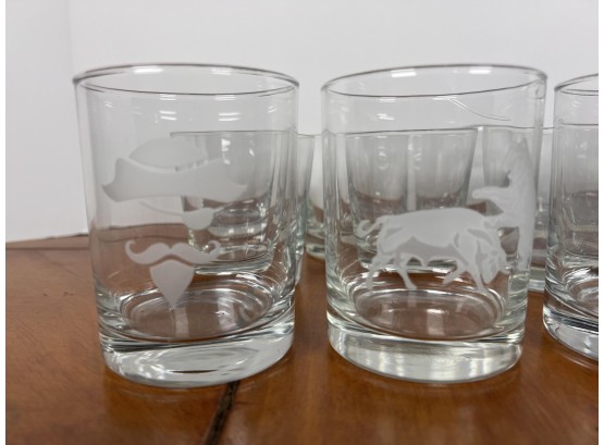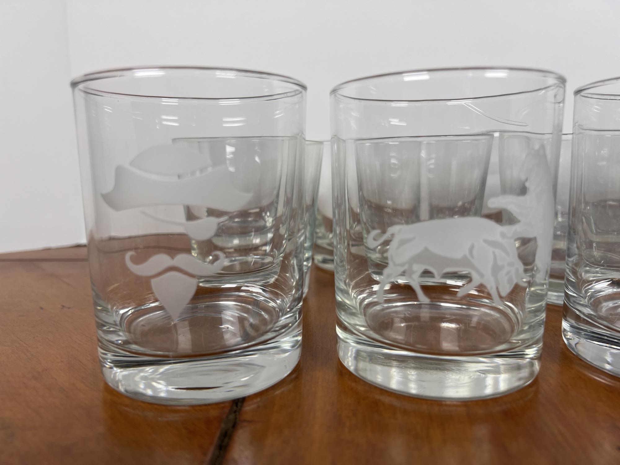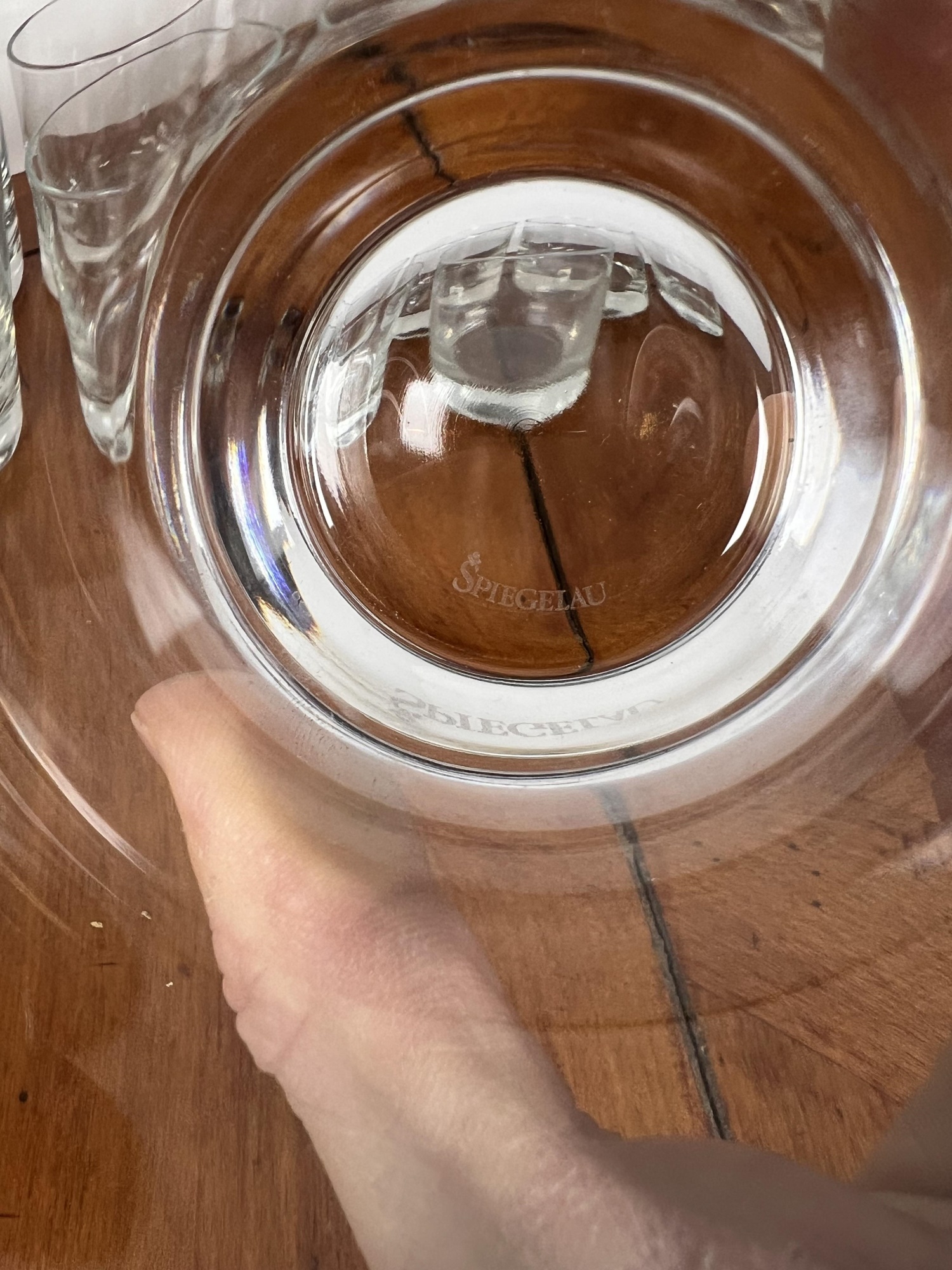 (4) with etched designs. (1) marked Spiegelau. Tallest 4 1/8" Condition: Good Temp No 6426