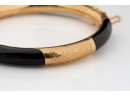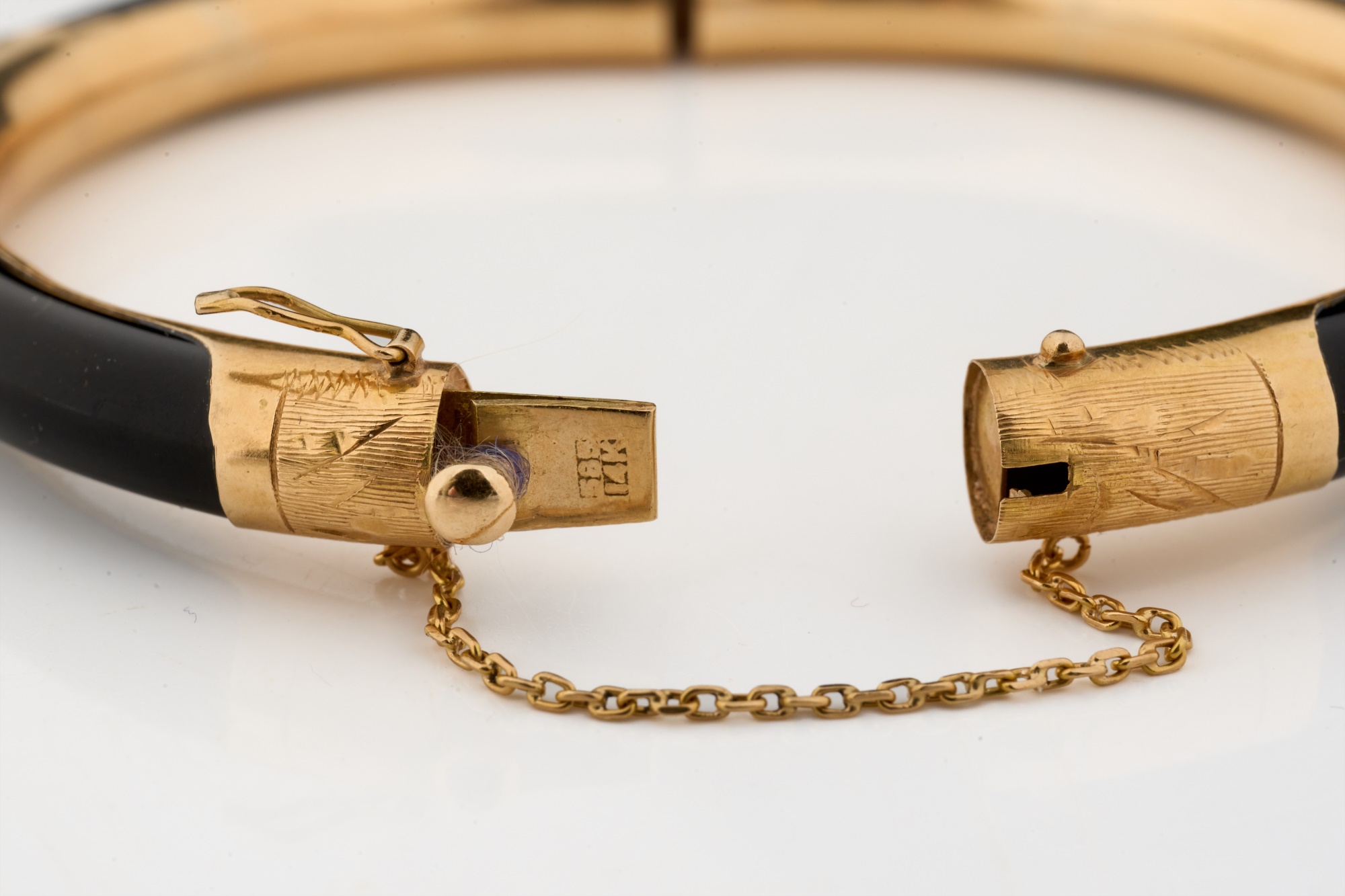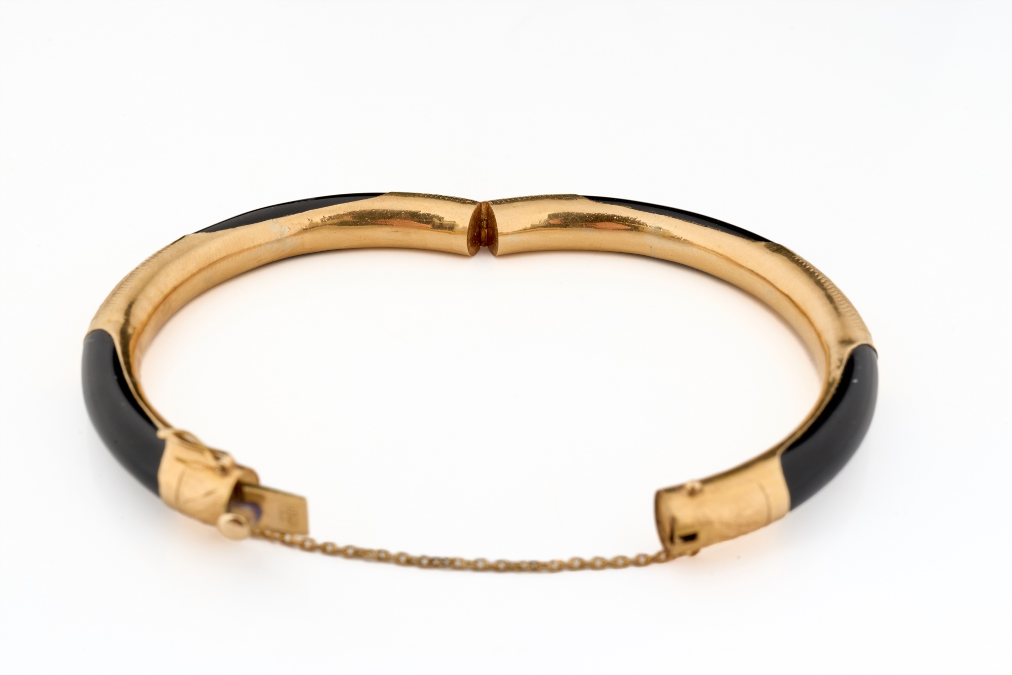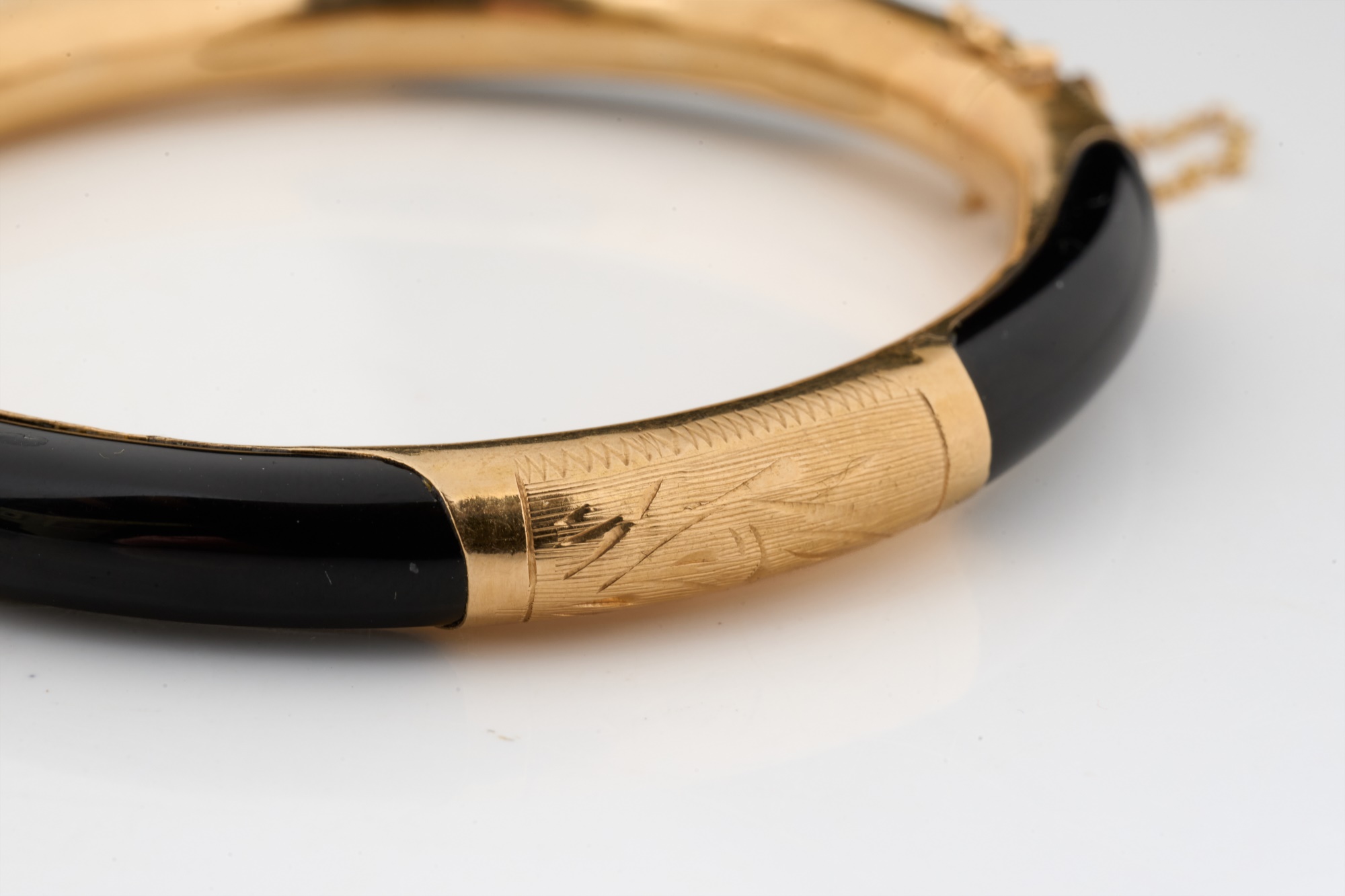 Engraved rose gold and onyx. 2.75 inches (diameter). 13.5 dwt (gross weight) Condition: Good