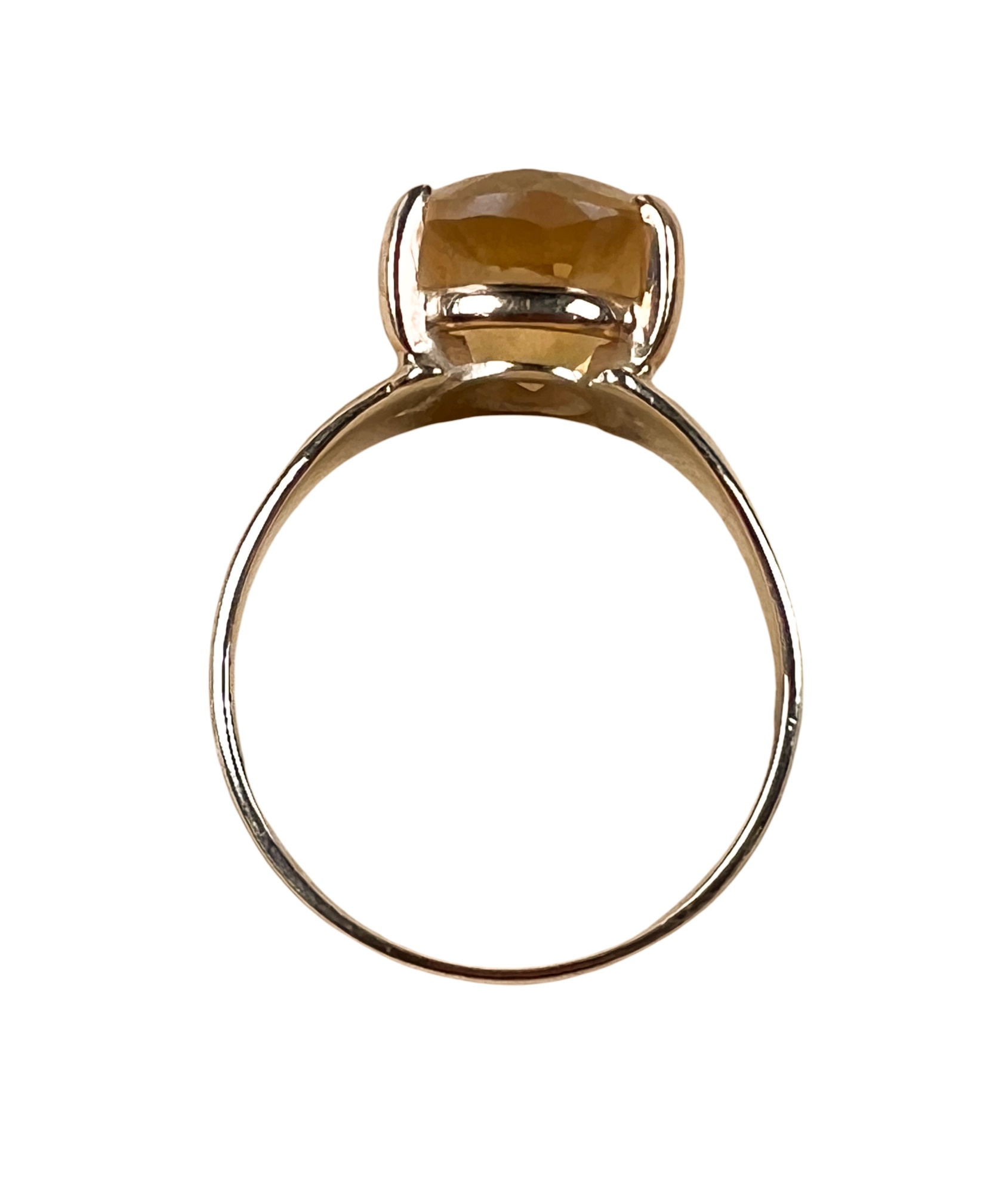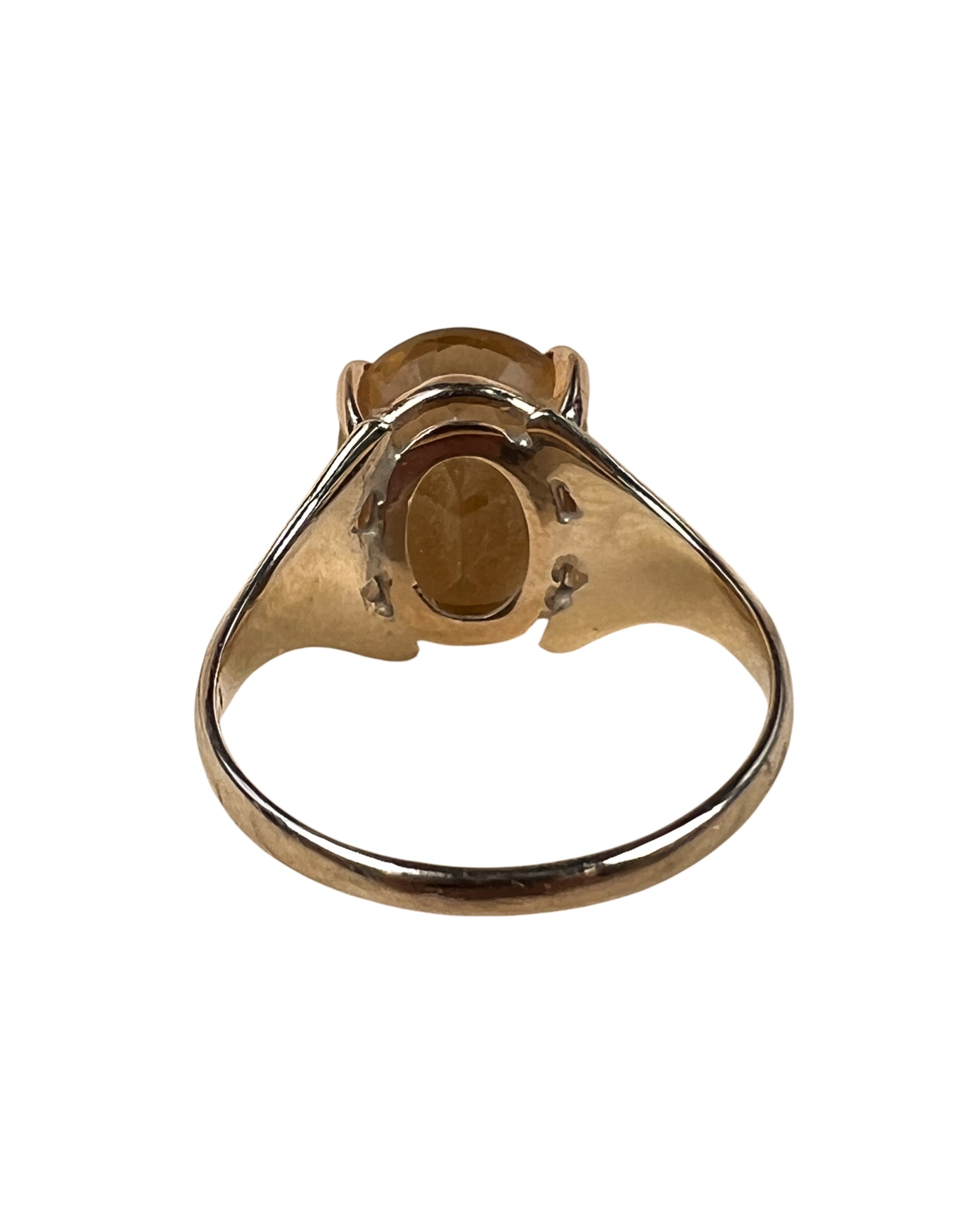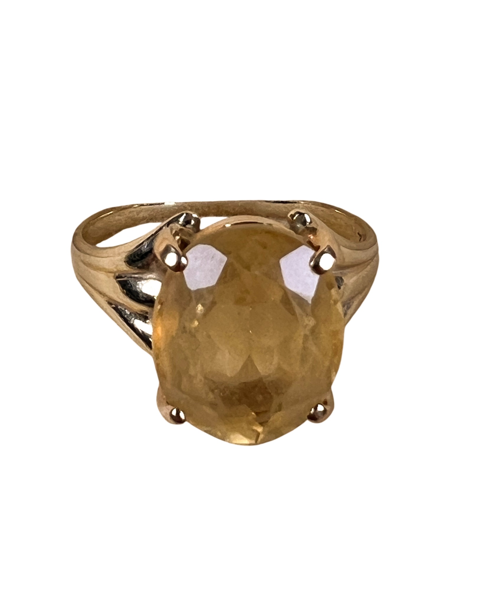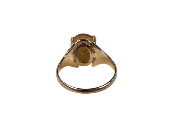 Marked 14K. Stone tests as citrine but is most likely synthetic. 2.4 DWT. Size 8. Condition: Good, used