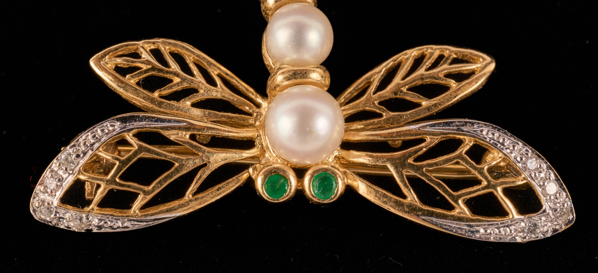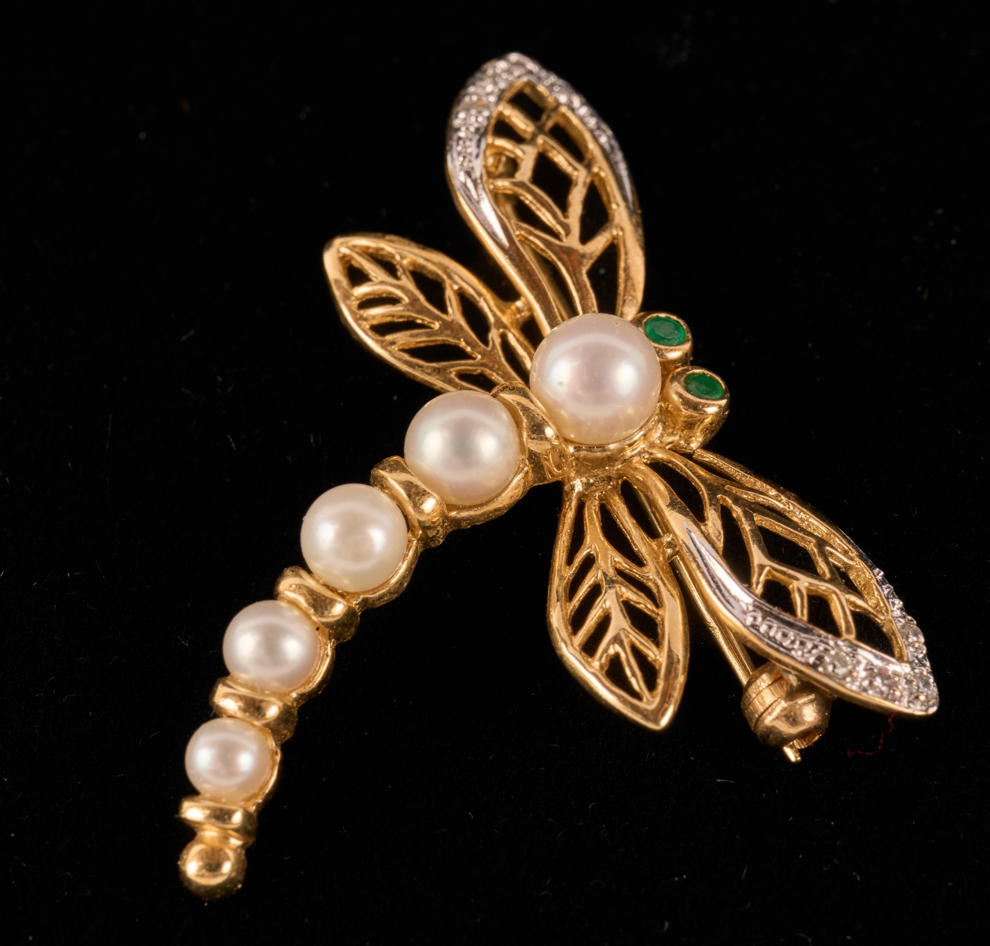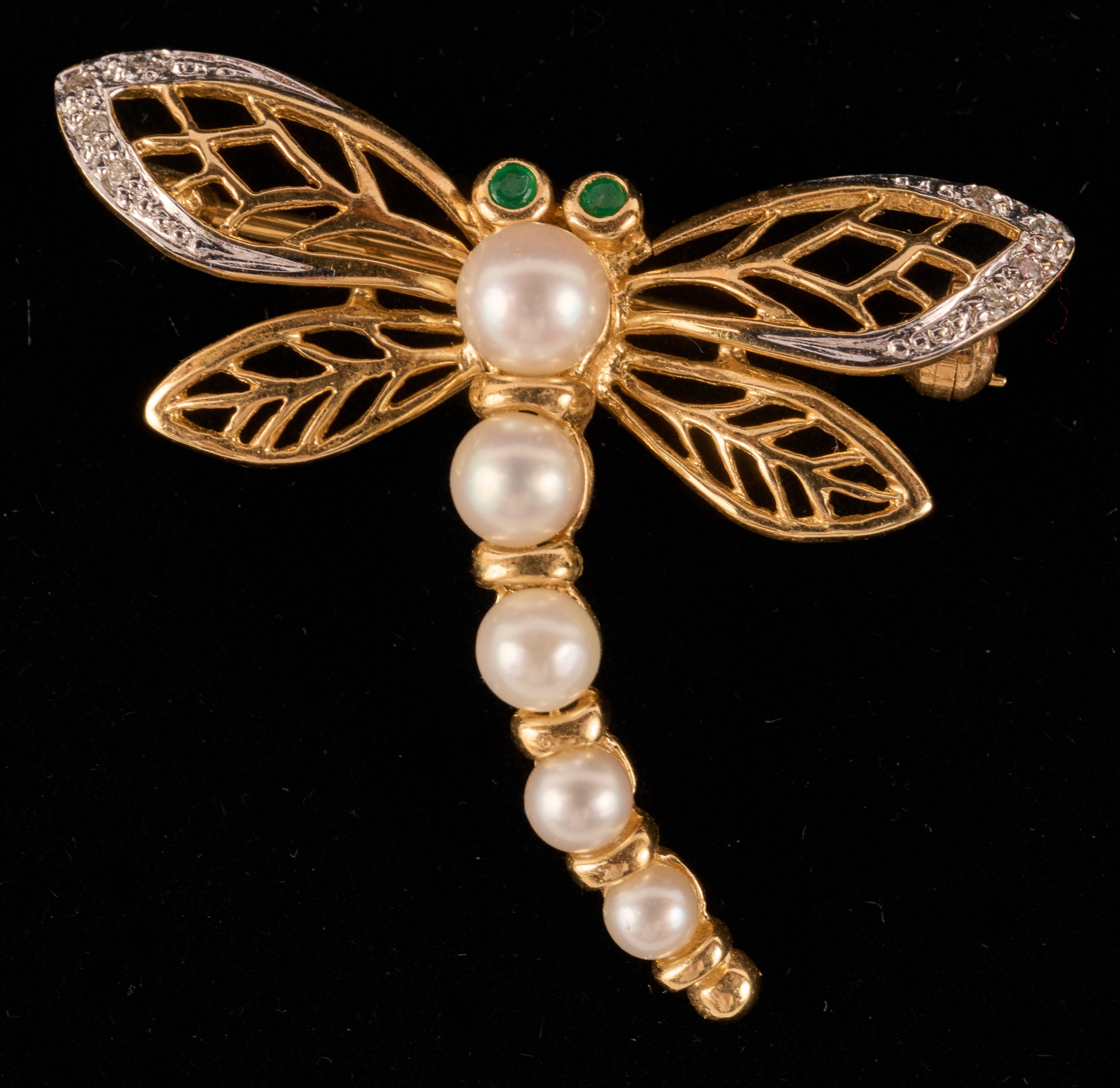 Set with melee diamonds, pearls and emeralds. 1.25 and .75 inches. 4.7 dwt (gross weight) Condition: Good