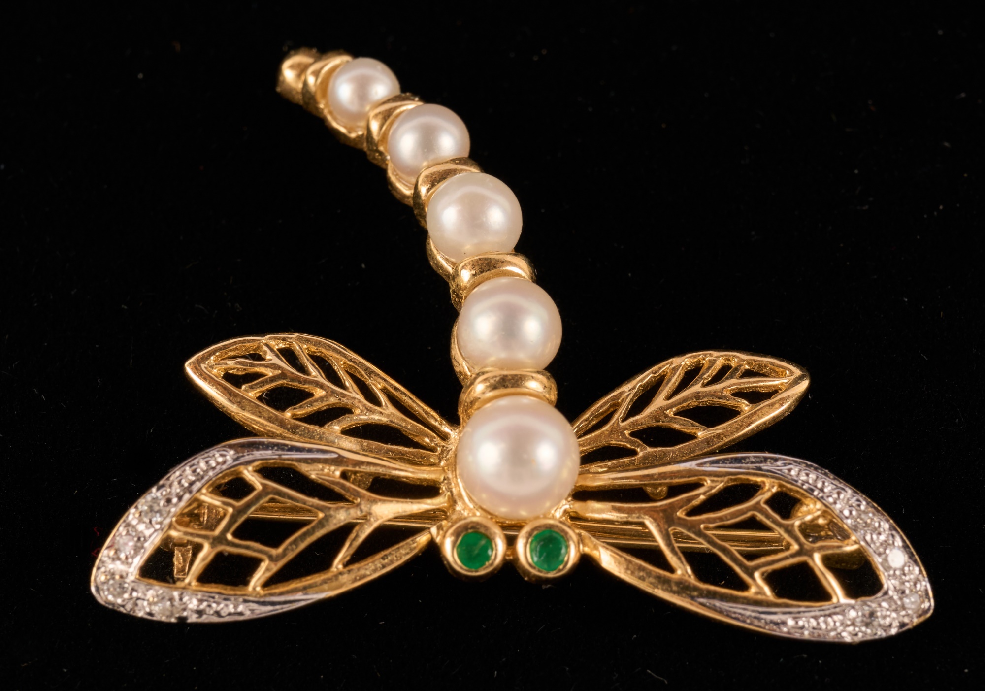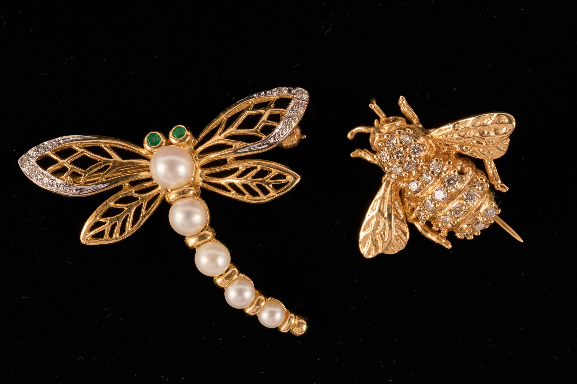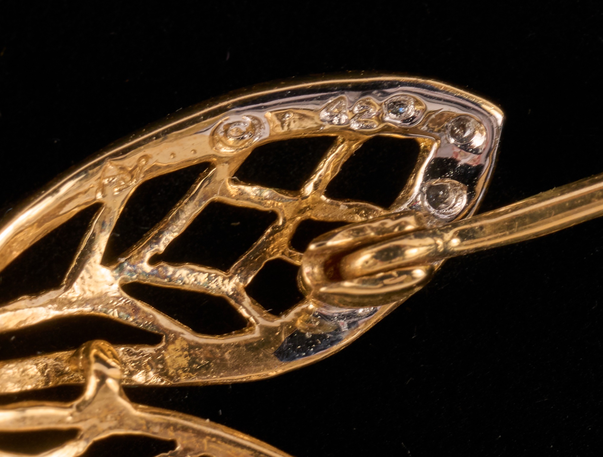 Set with melee diamonds, pearls and emeralds. 1.25 and .75 inches. 4.7 dwt (gross weight) Condition: Good
