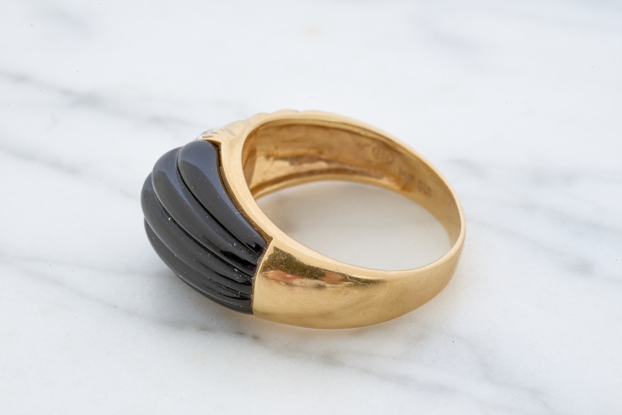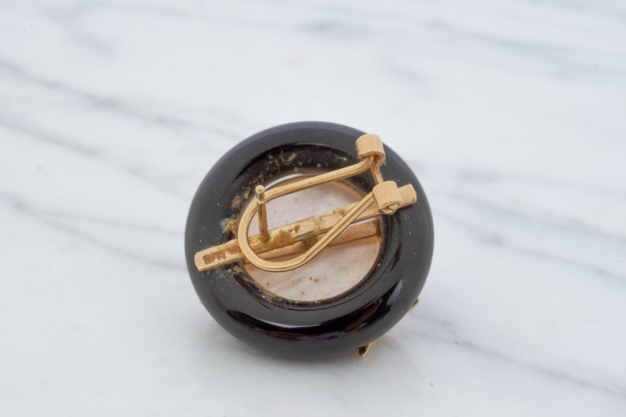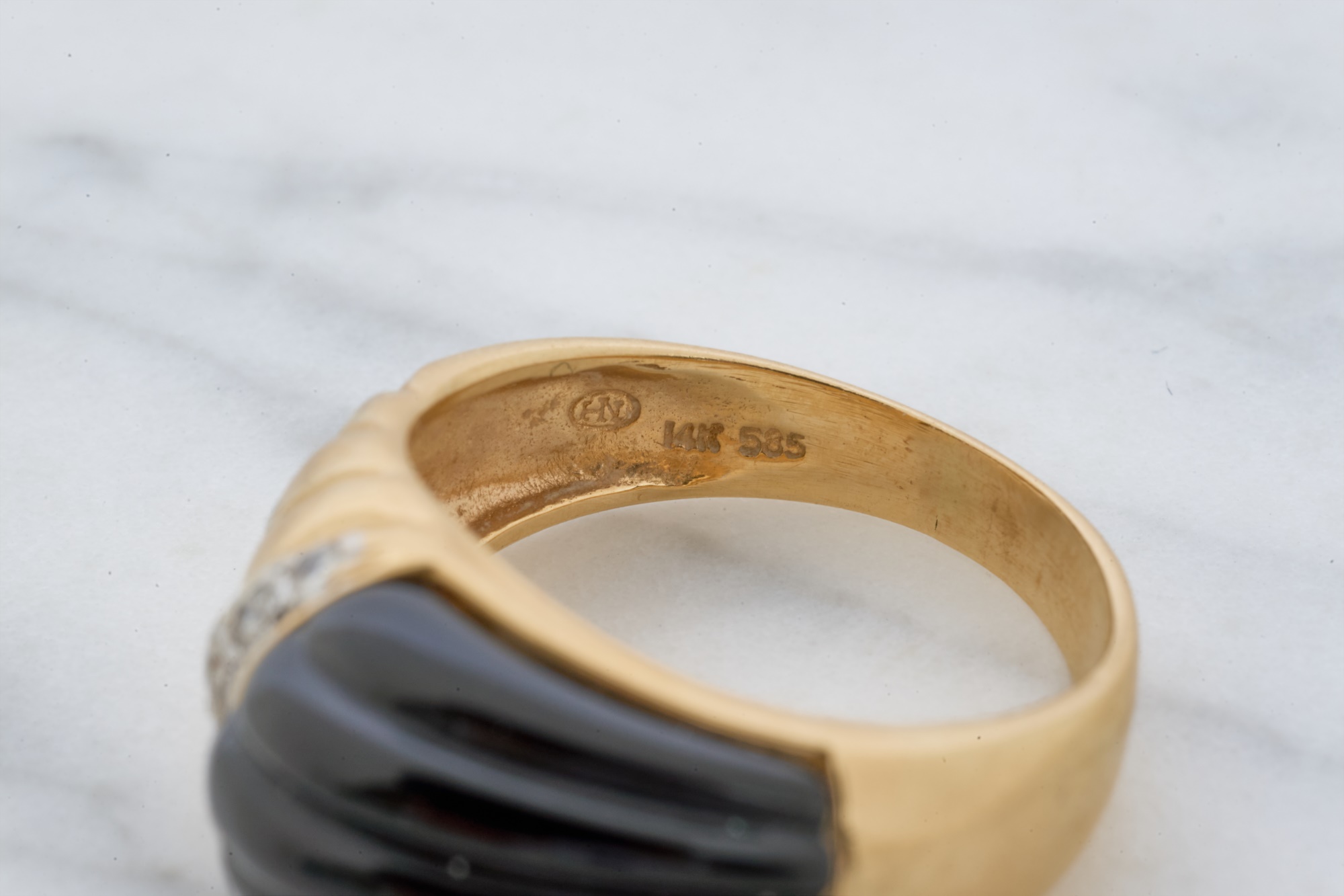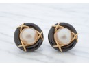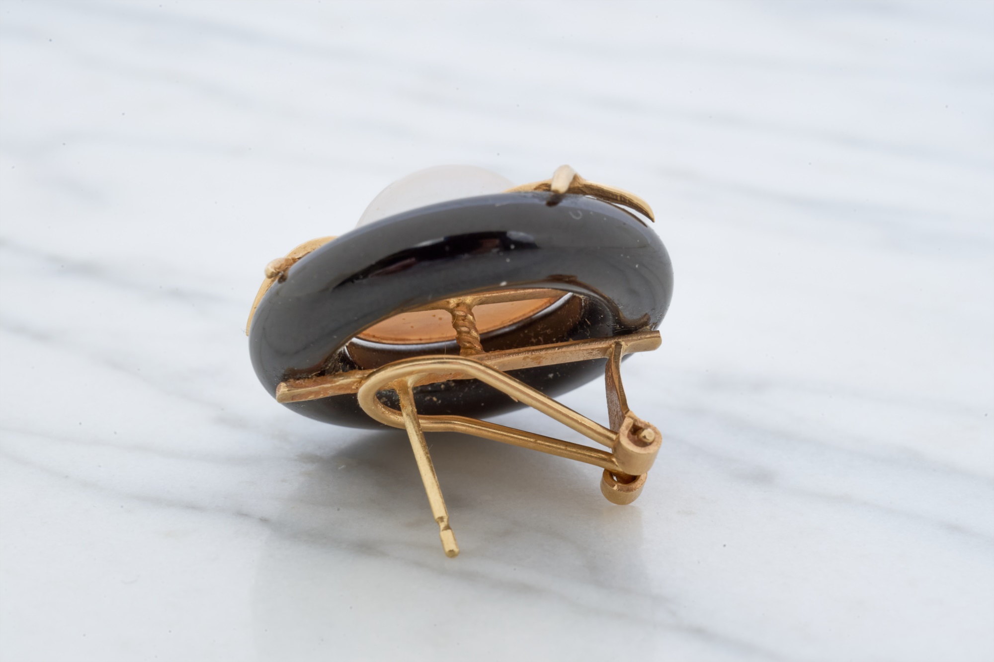 12mm Mabe pearl in .87 inch setting. Ring size 7.5 is set with accent diamonds under 1mm. 4.6 dwt (ring) 12.1 dwt (gross weight for both) Condition: Not a matching set Good