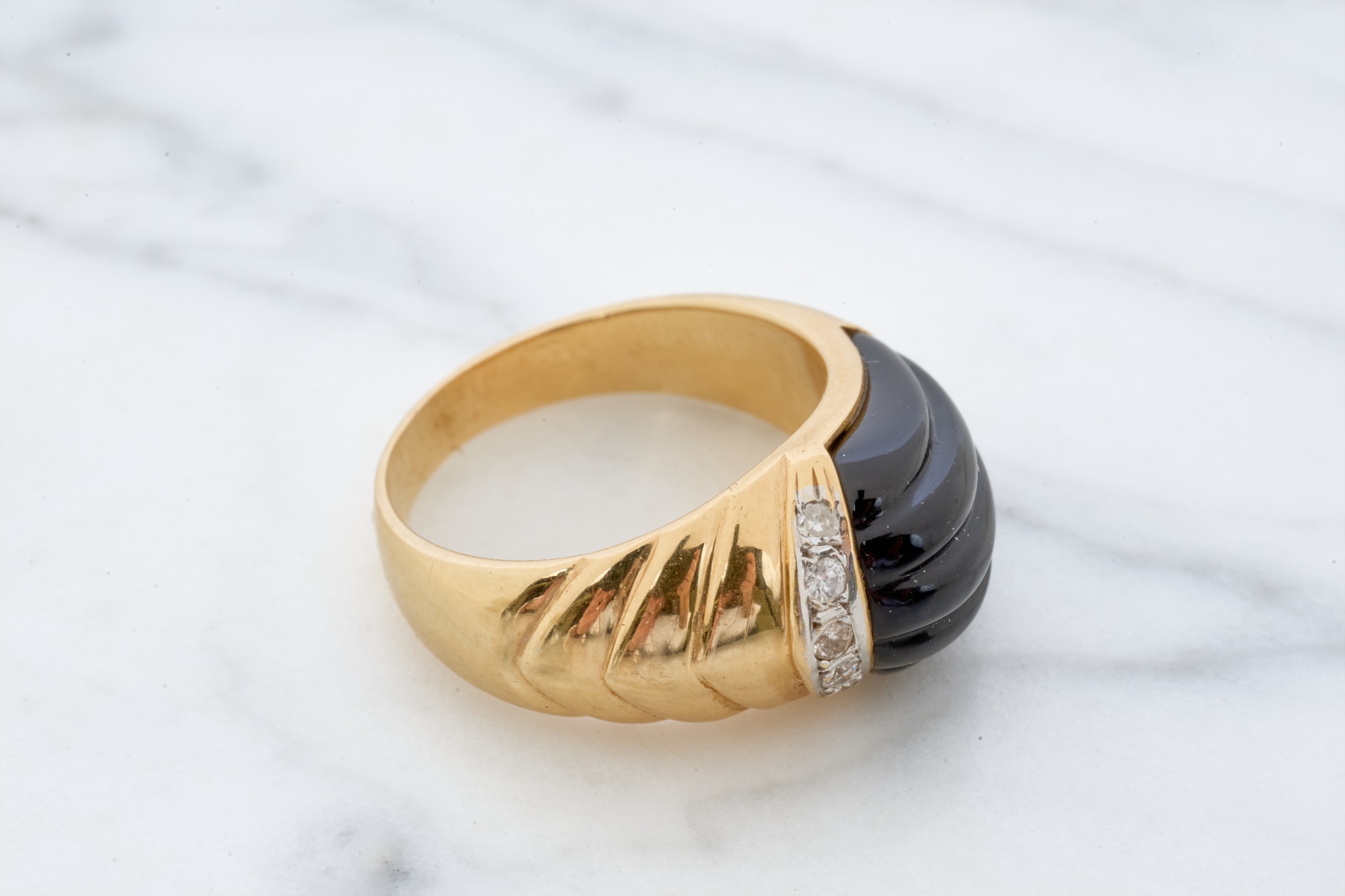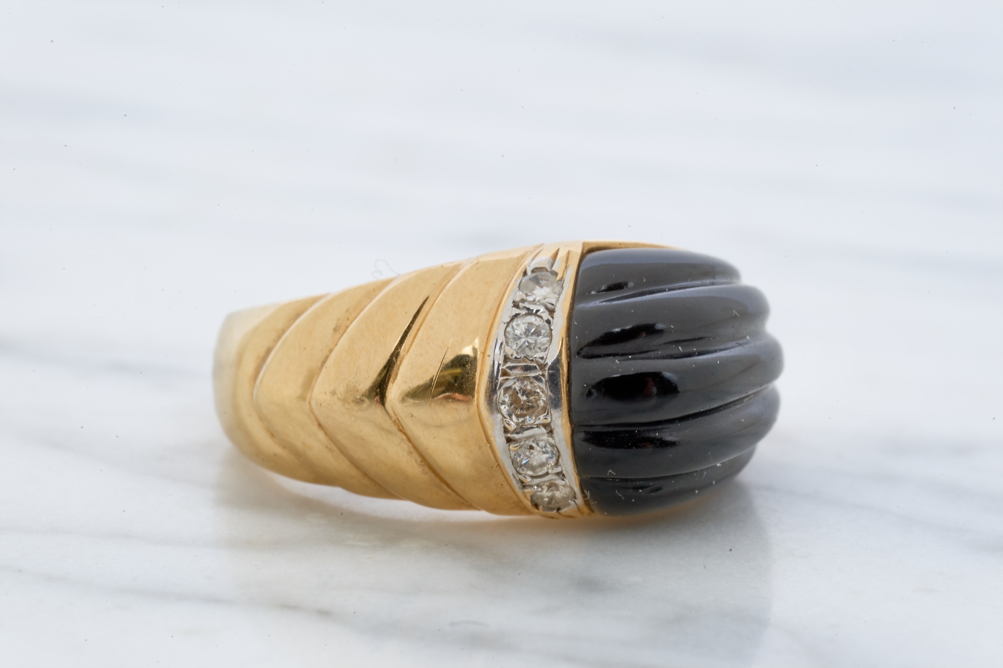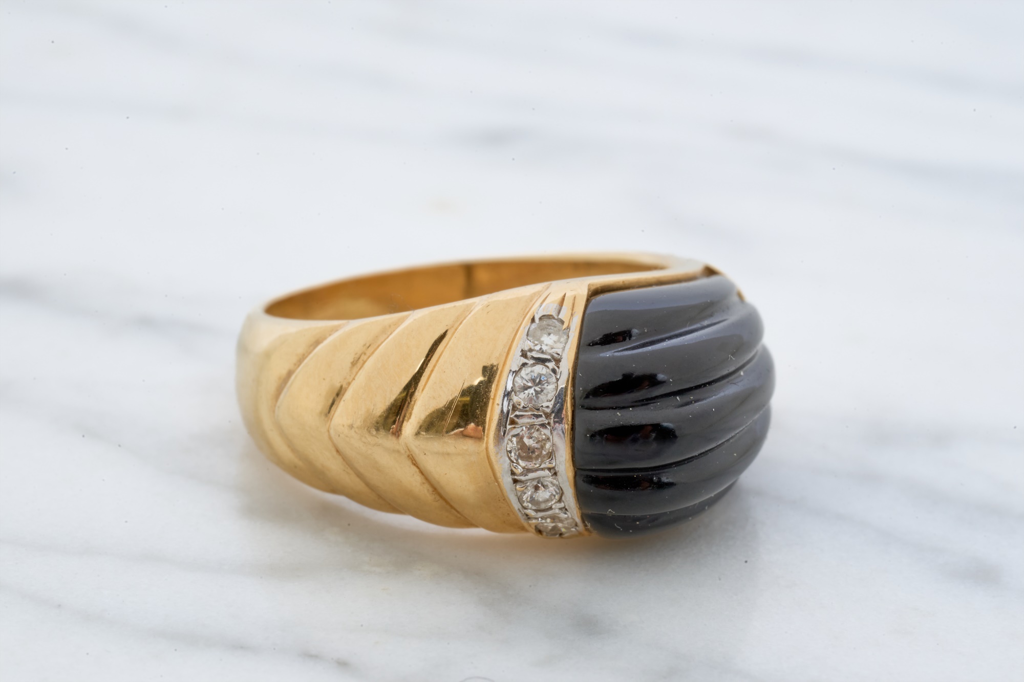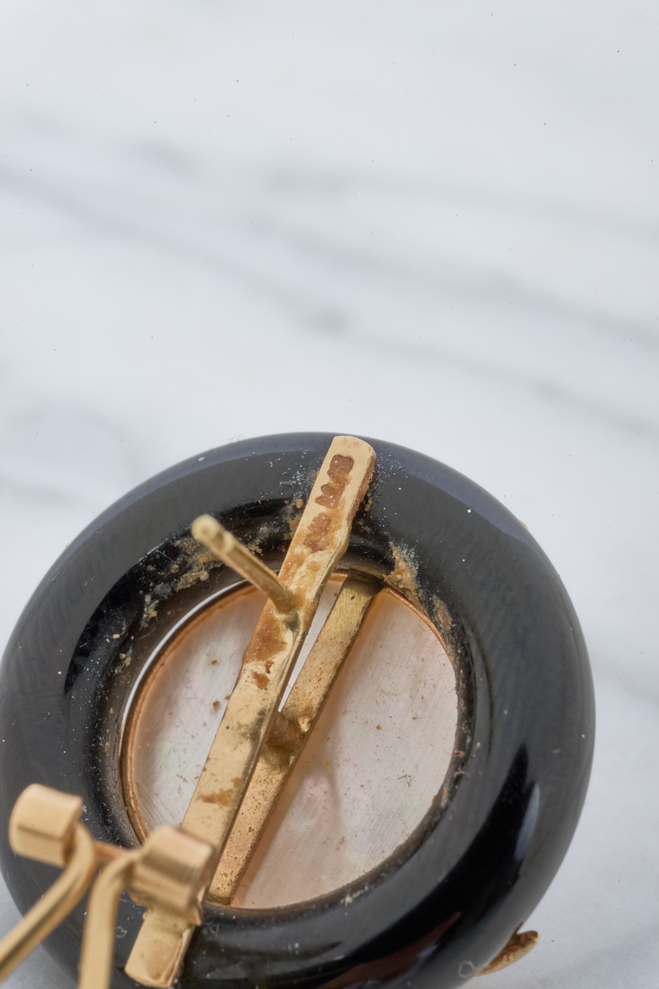 12mm Mabe pearl in .87 inch setting. Ring size 7.5 is set with accent diamonds under 1mm. 4.6 dwt (ring) 12.1 dwt (gross weight for both) Condition: Not a matching set Good