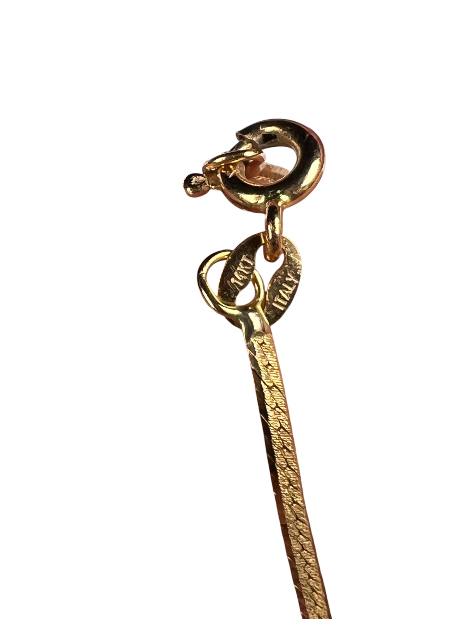 Necklace marked 14K. 24" long. Pendant unmarked Condition: Good, used