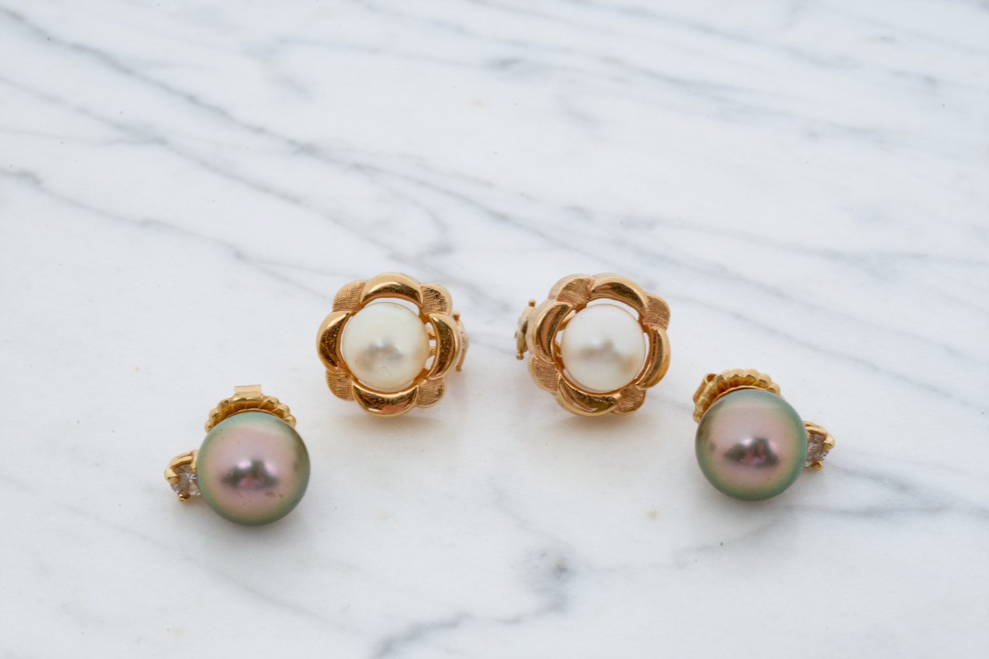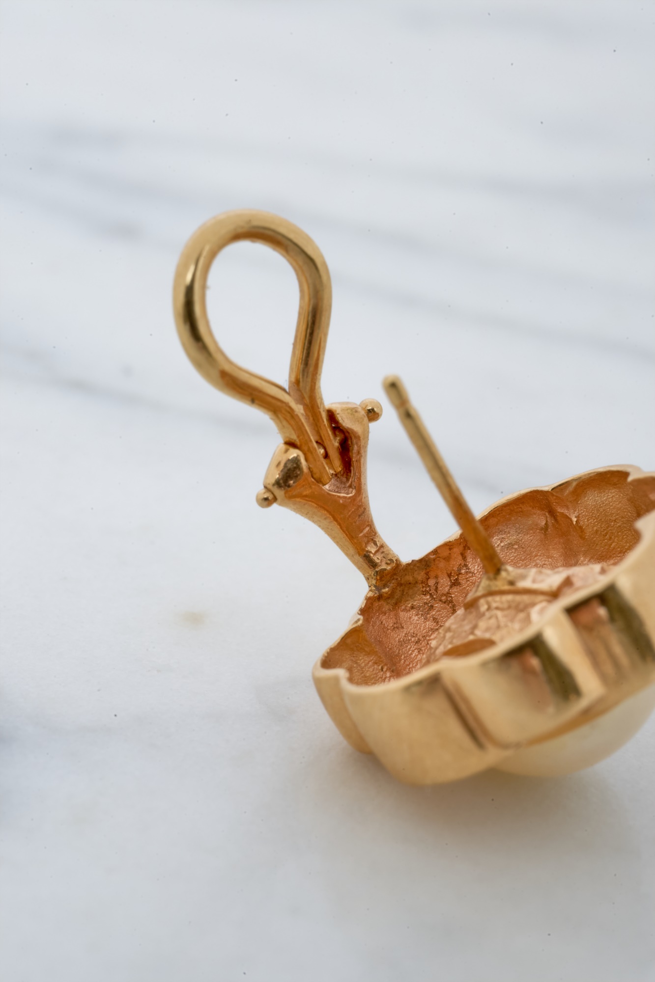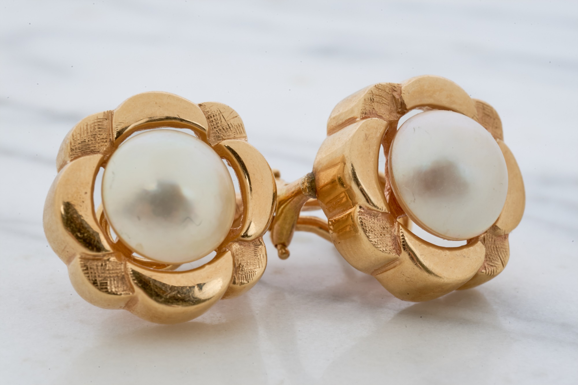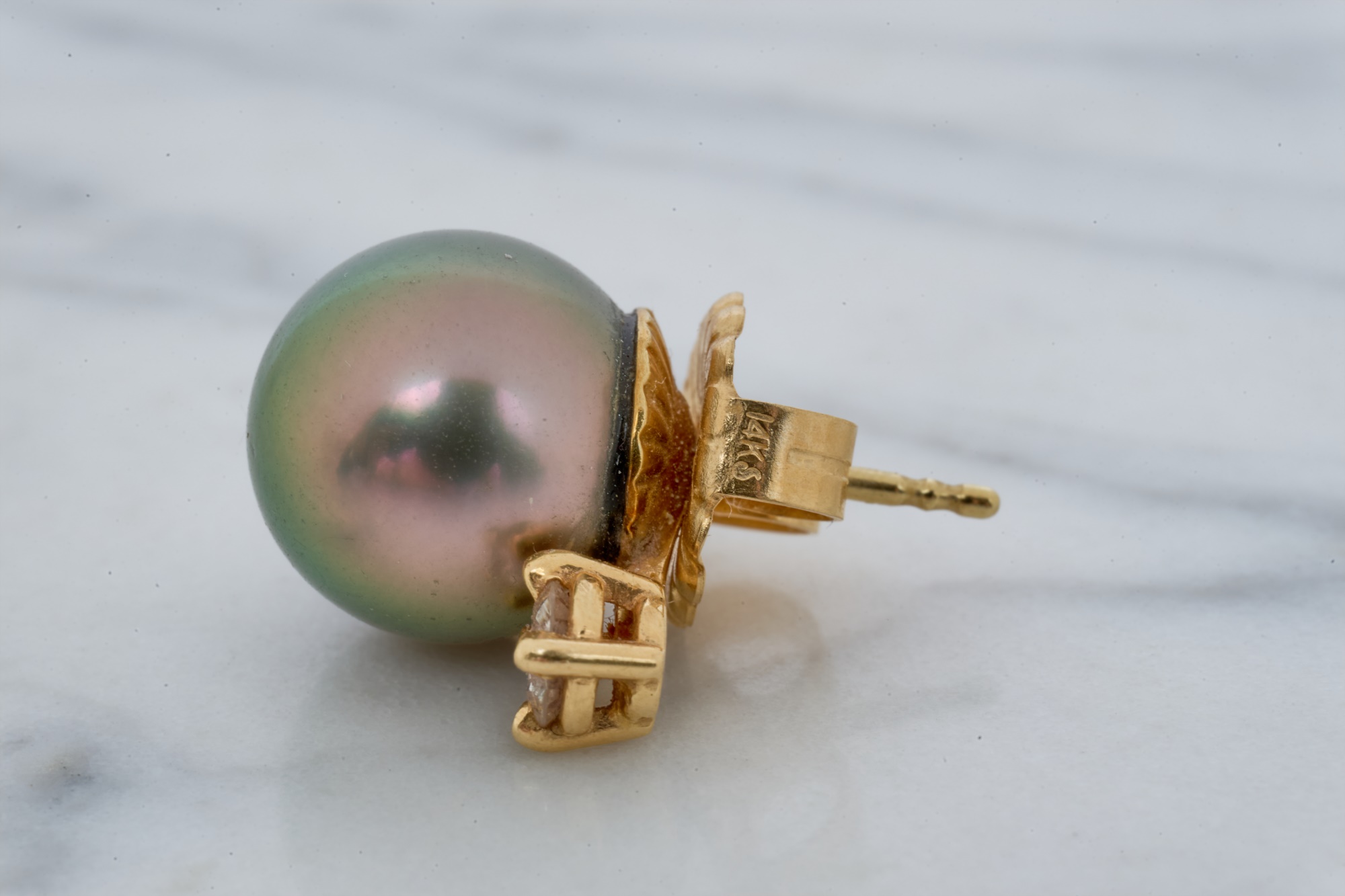 Set with 4mm satellite diamonds 11mm (diameter). Together with a pair of 9mm Mabe pearl earrings. 9.5 dwt (gross weight) Condition: Good