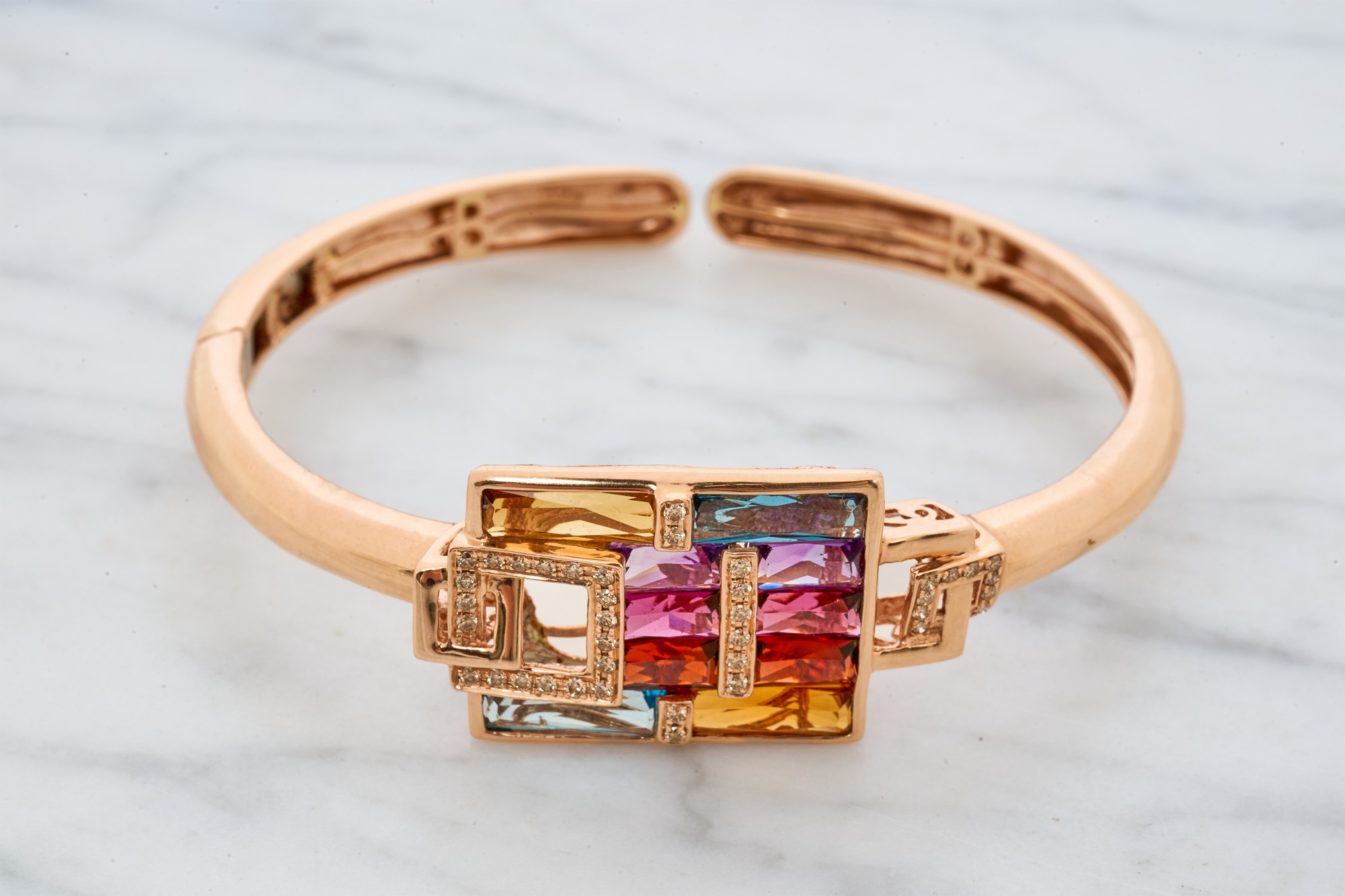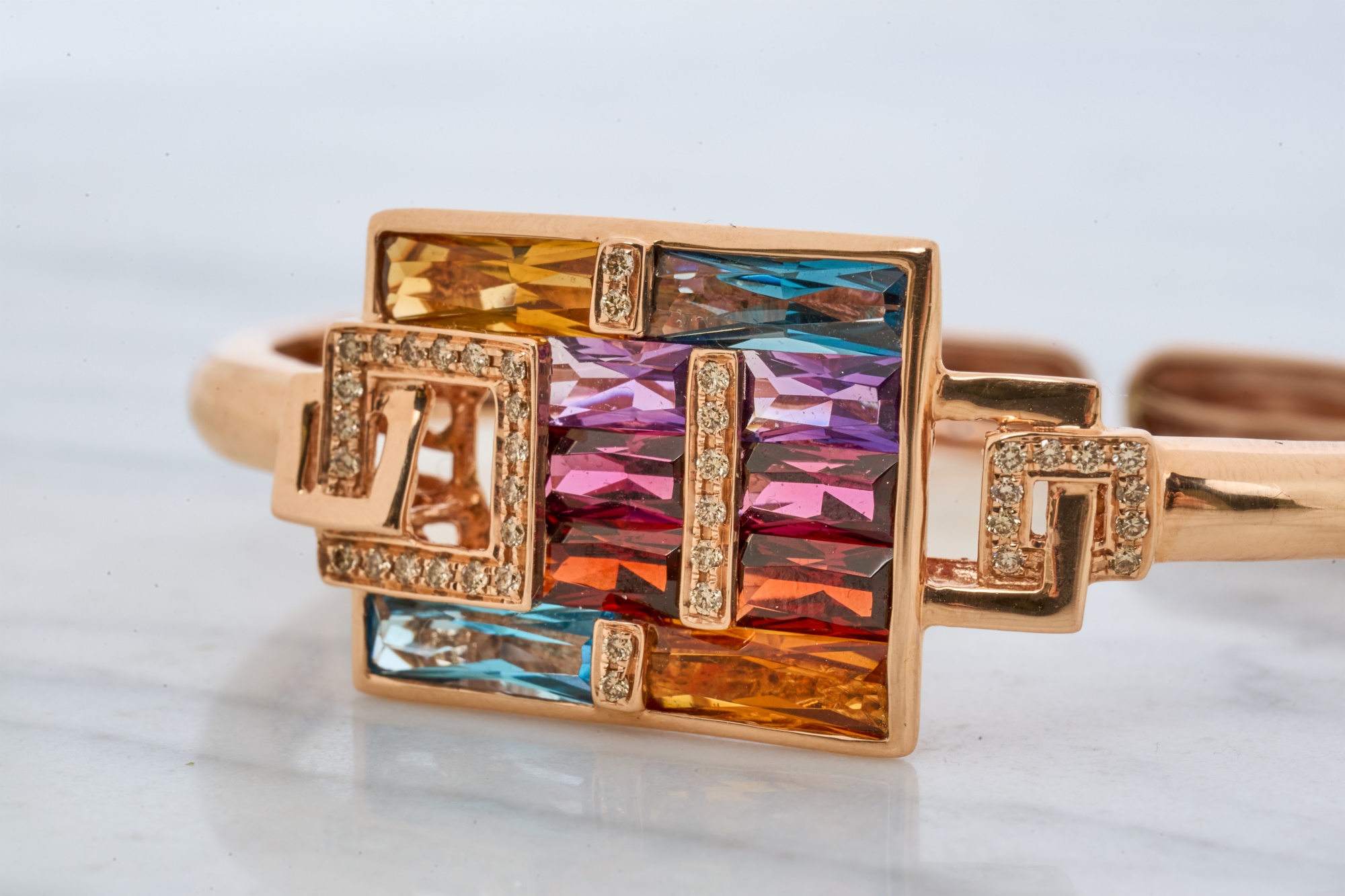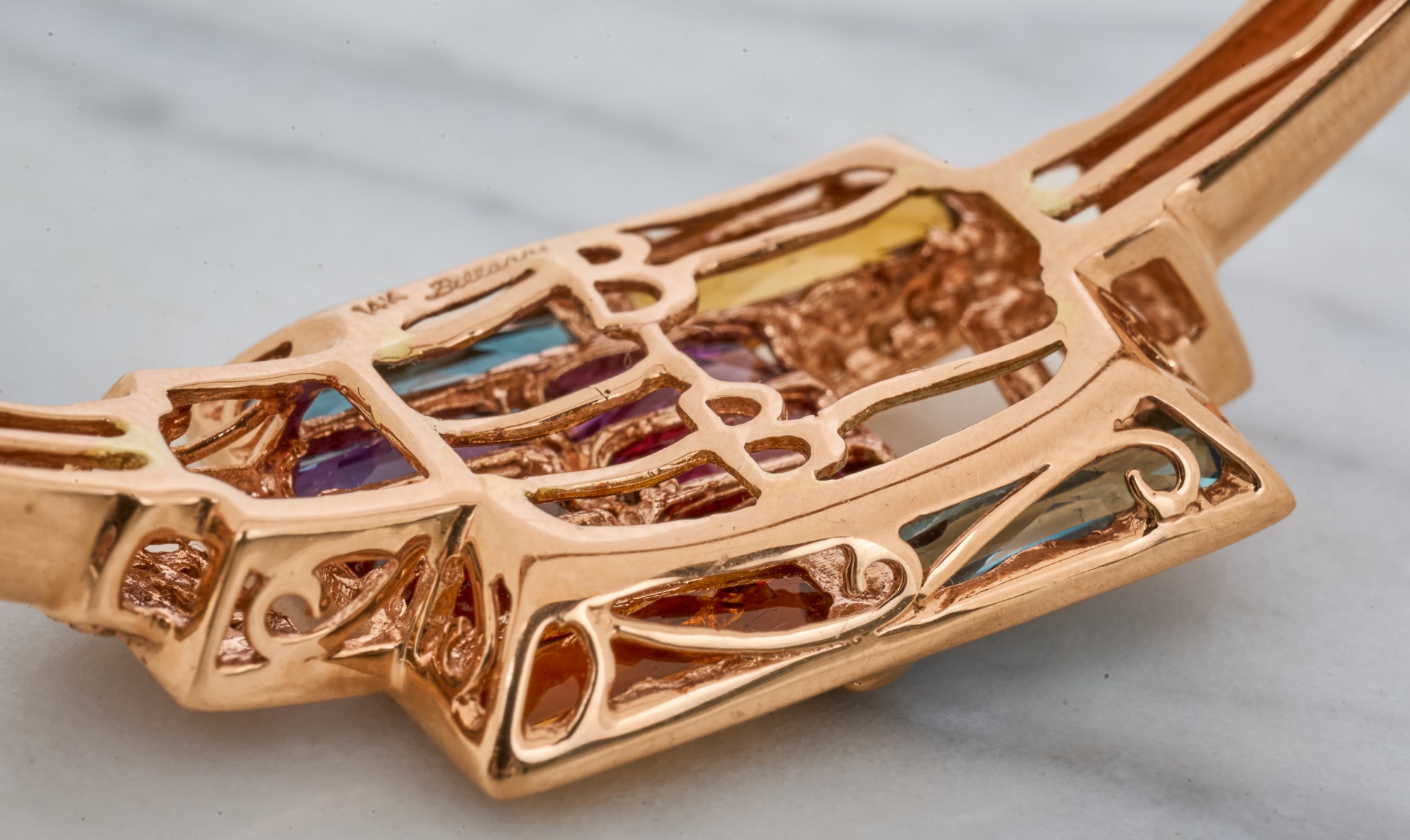 By Bellarri Boulevard. (39) Round diamonds and (10) mixed gemstones. 2 x 2.25 inches. 10.2 dwt Condition: Good