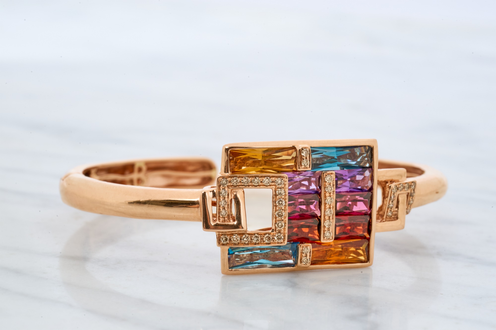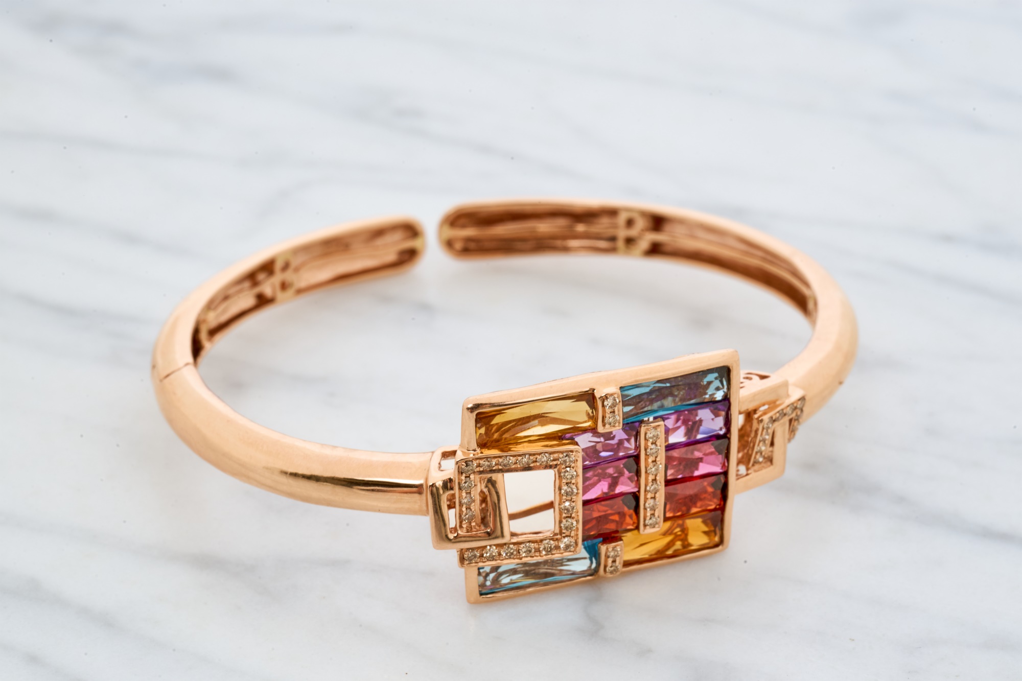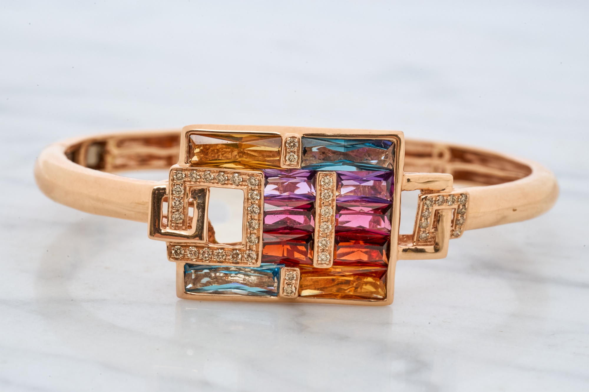 By Bellarri Boulevard. (39) Round diamonds and (10) mixed gemstones. 2 x 2.25 inches. 10.2 dwt Condition: Good