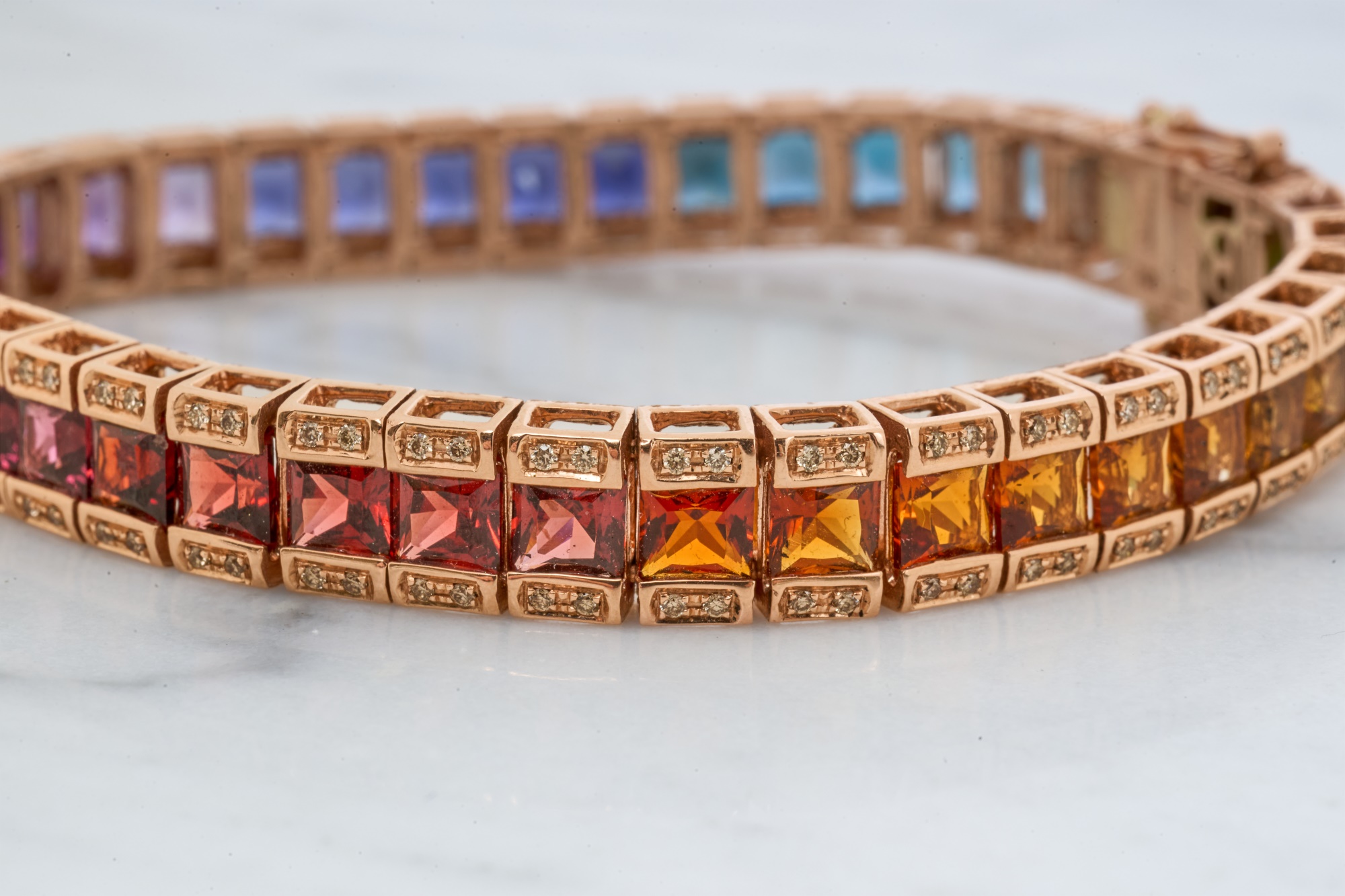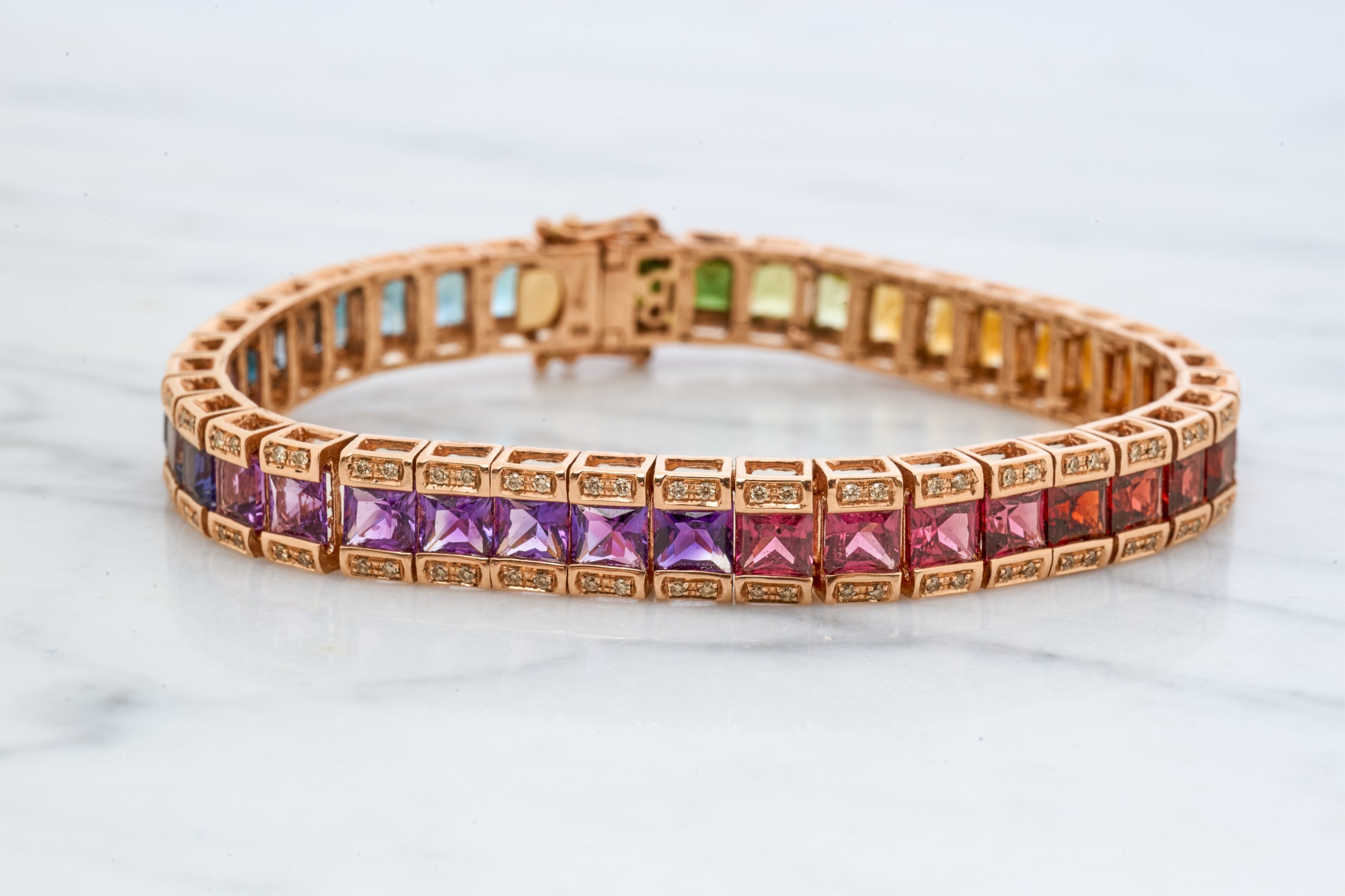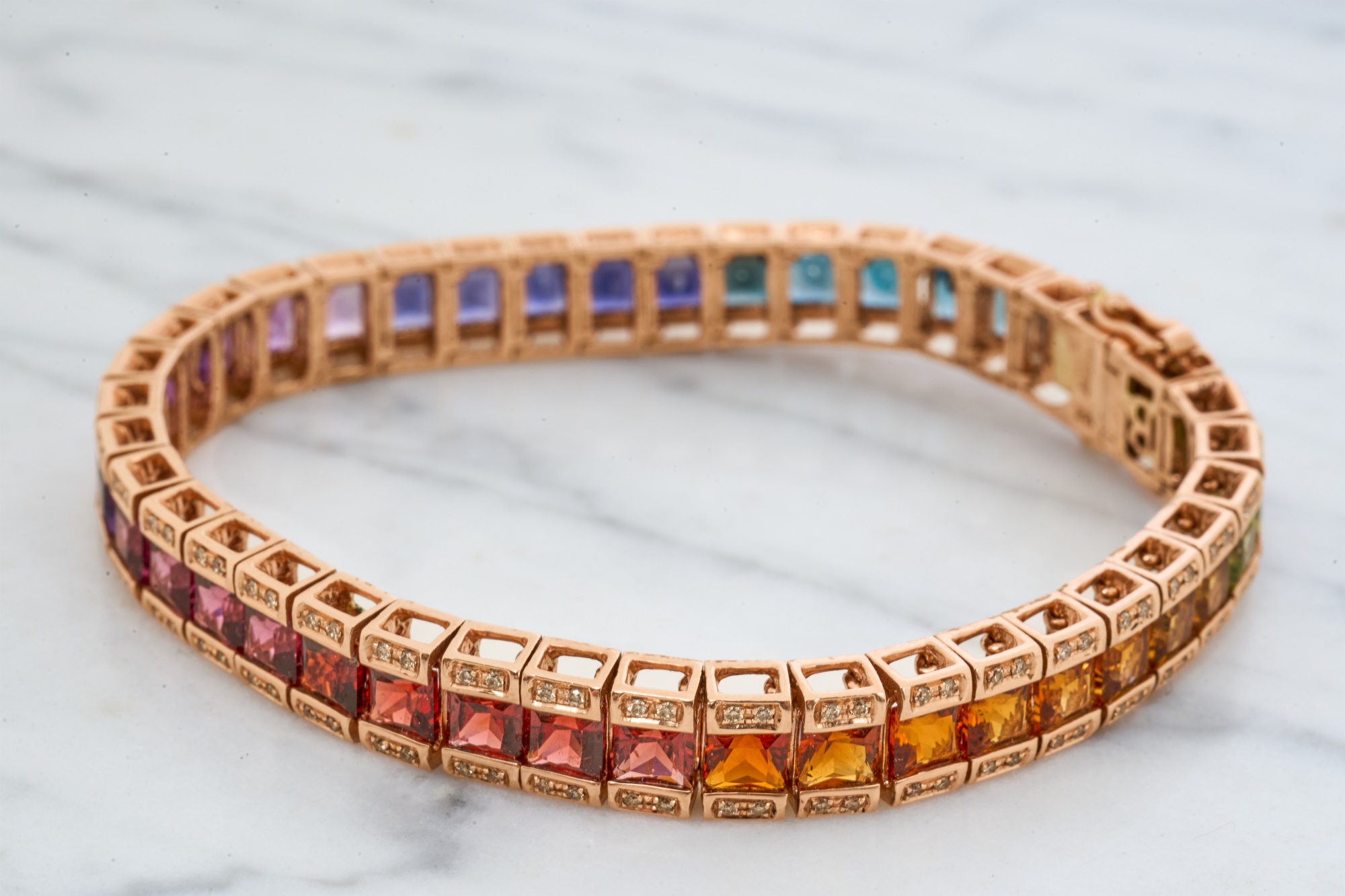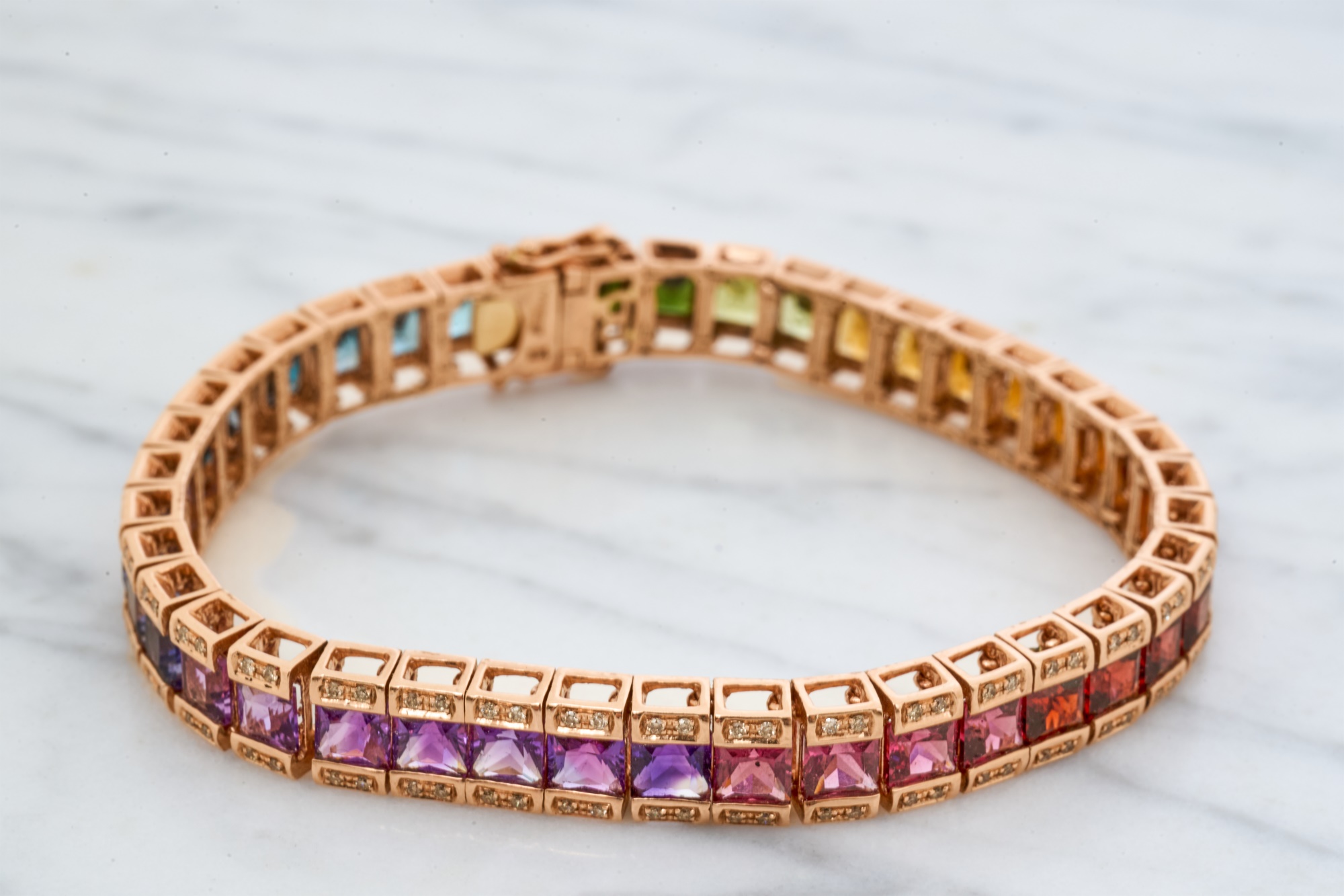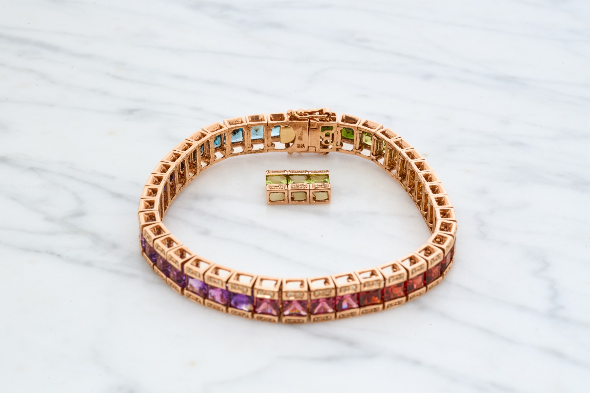 By Bellarri Boulevard. Mixed gemstones. 6.5 inches. Together with (3) extra links 14.6 dwt (total) Condition: Good