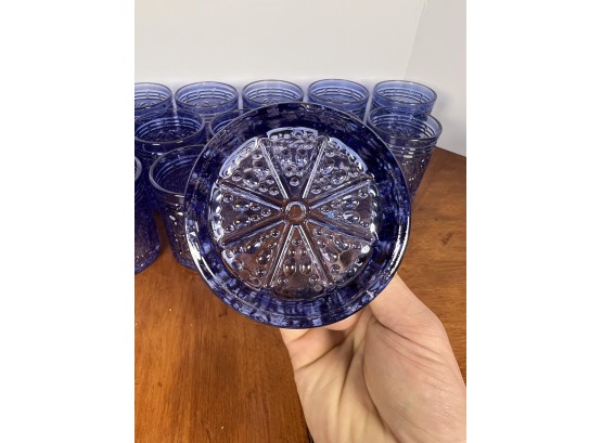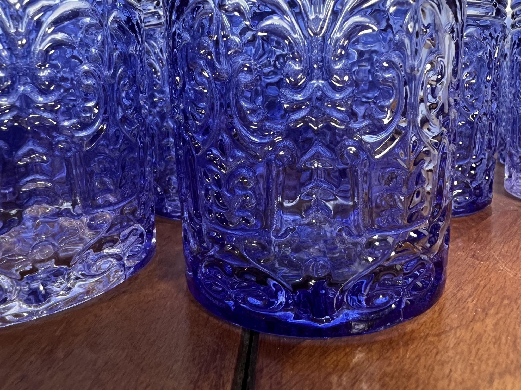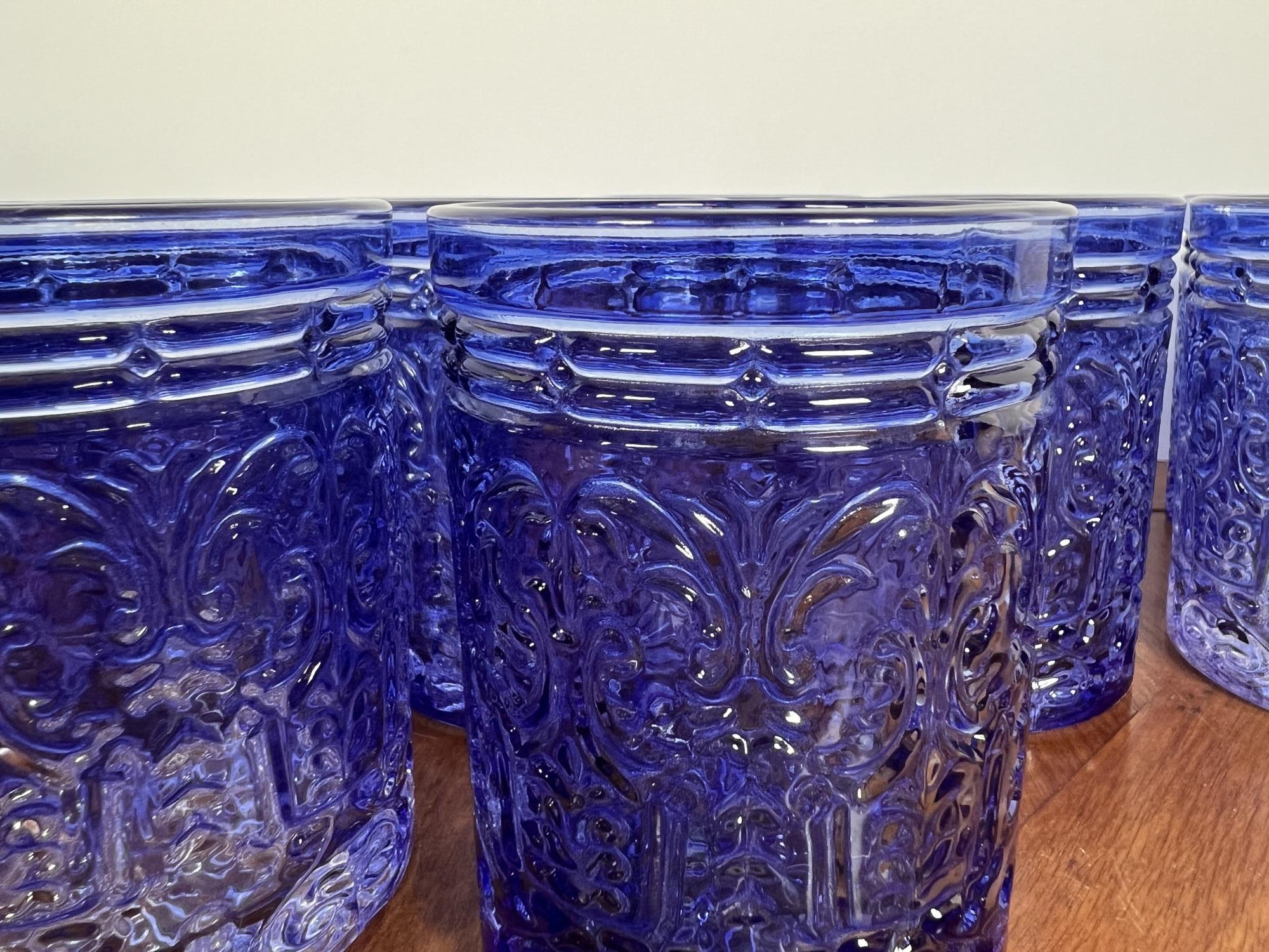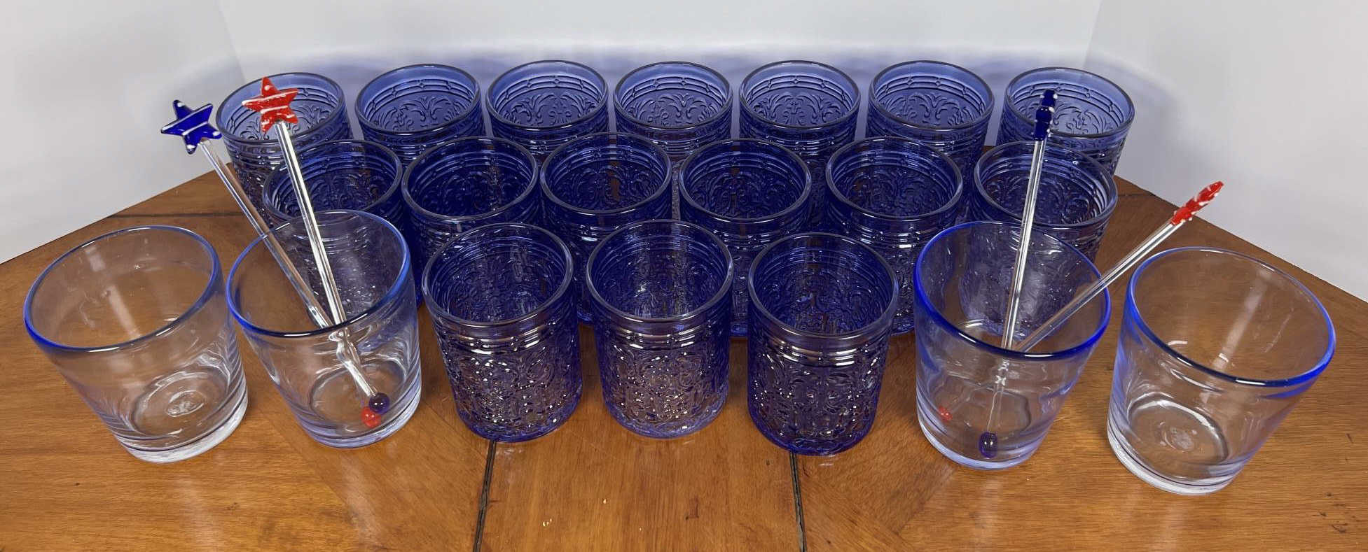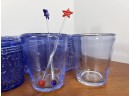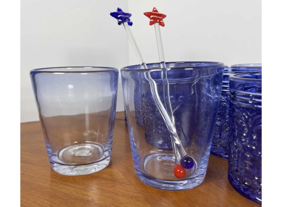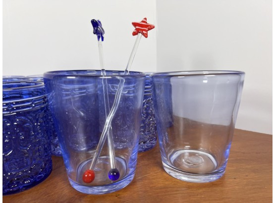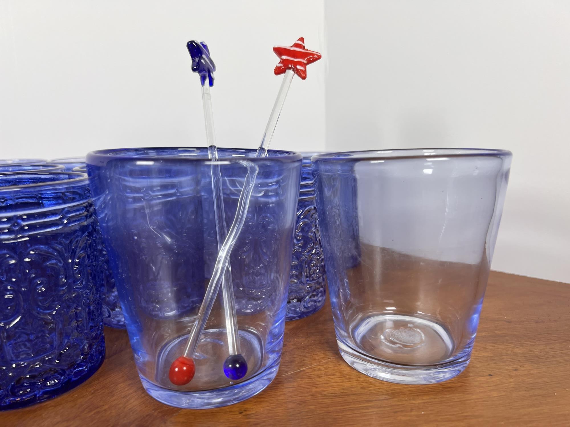 Along with (4) blue tinted tumblers and (4) glass swizzle sticks. Tallest glasses 4 1/4" Condition: Good Temp No 6428