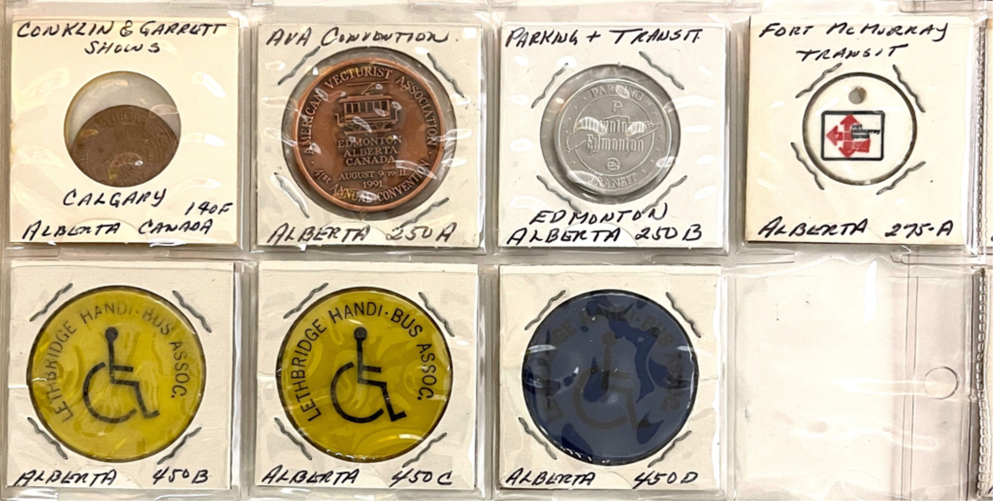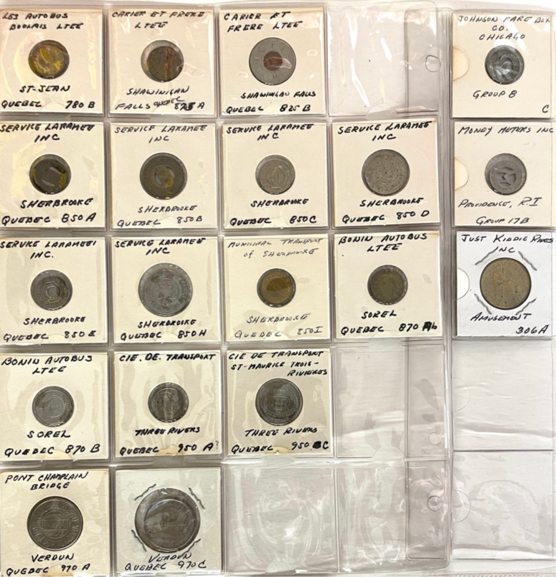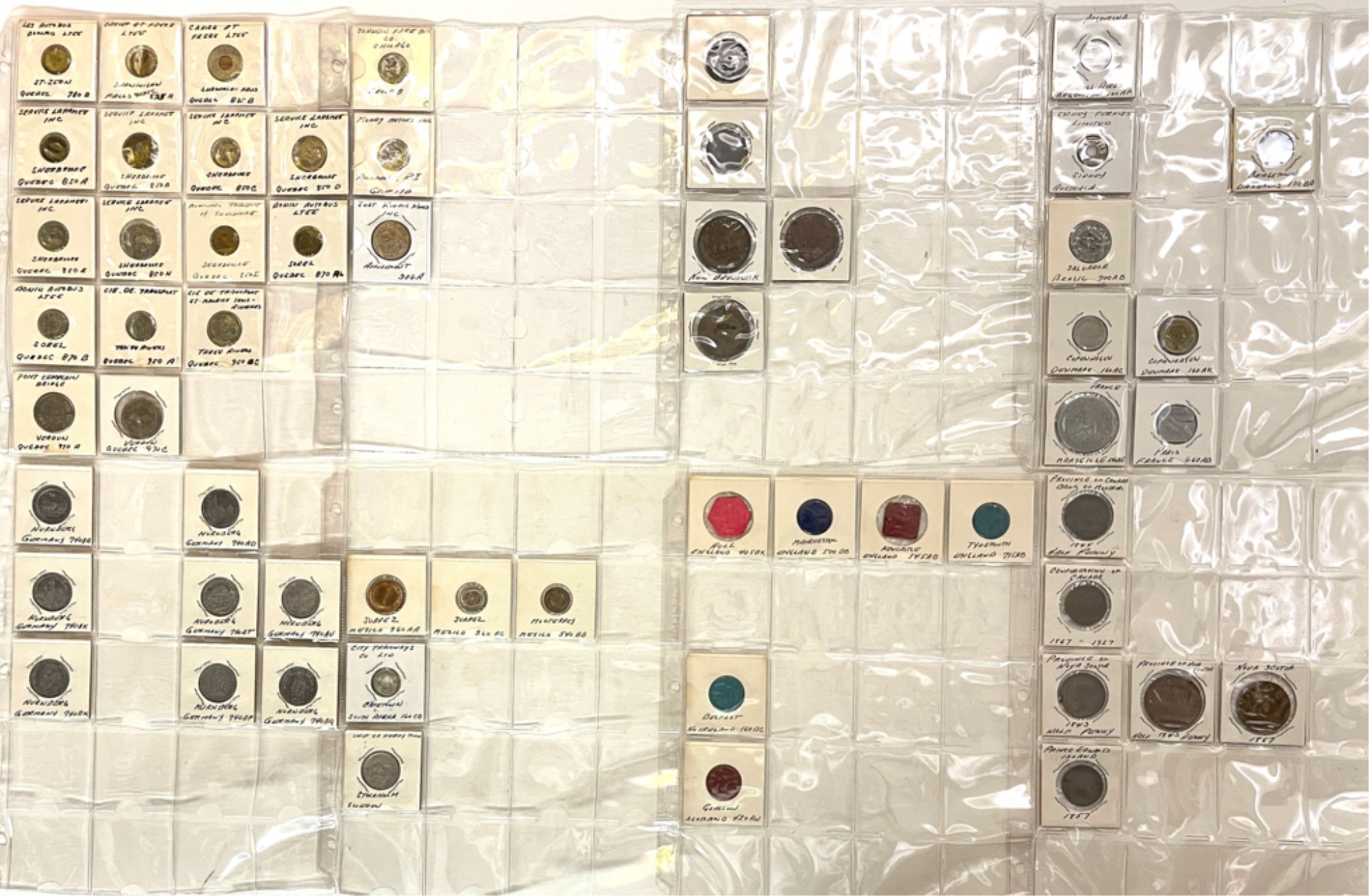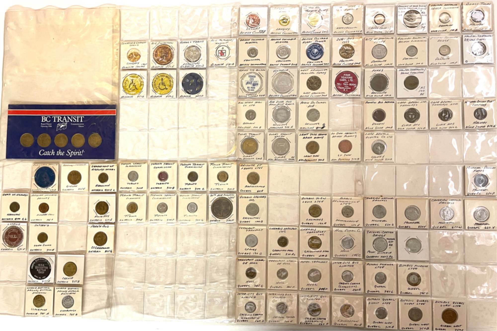 Transit tokens housed in a (17) sleeve binder. 11 1/2" x 10 1/2" x 2"