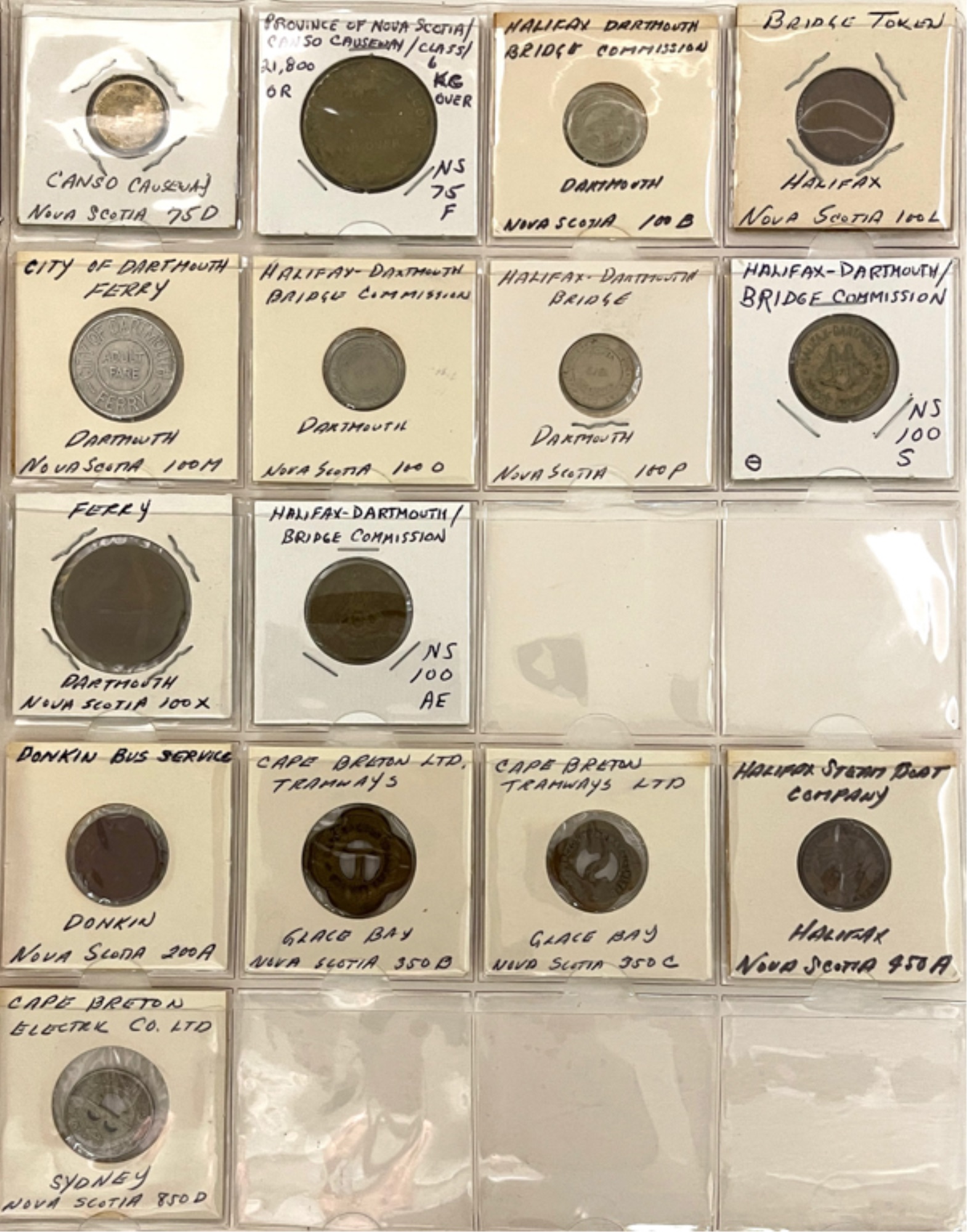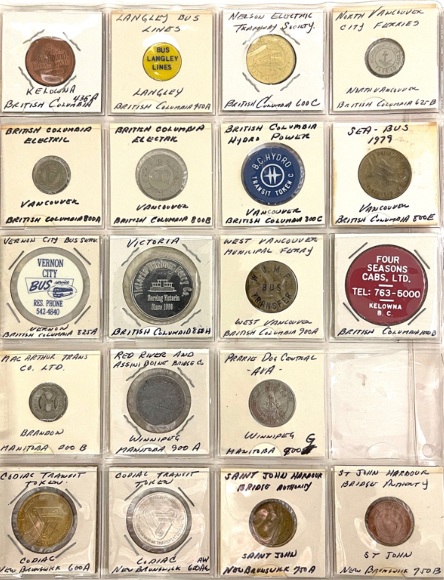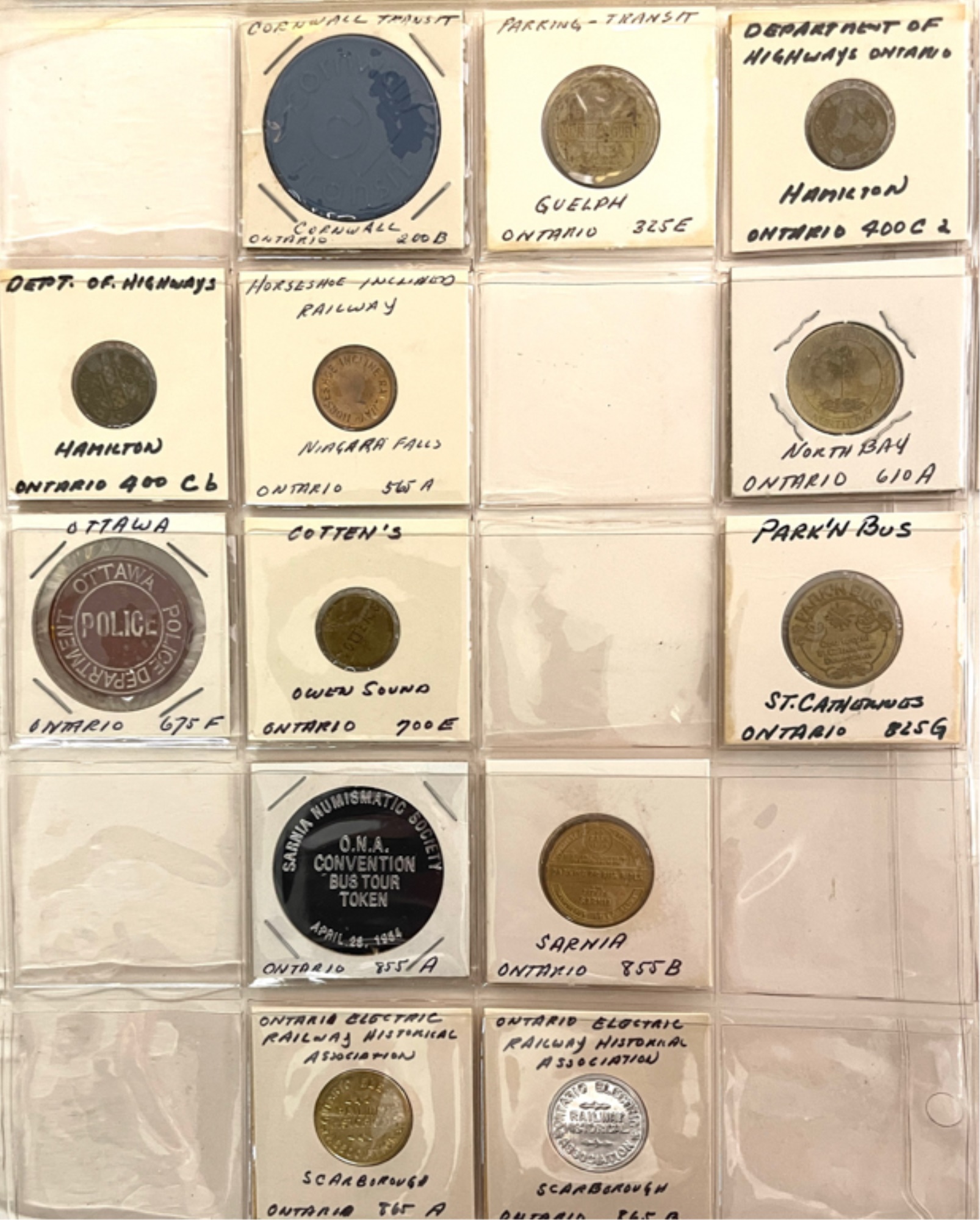 Transit tokens housed in a (17) sleeve binder. 11 1/2" x 10 1/2" x 2"