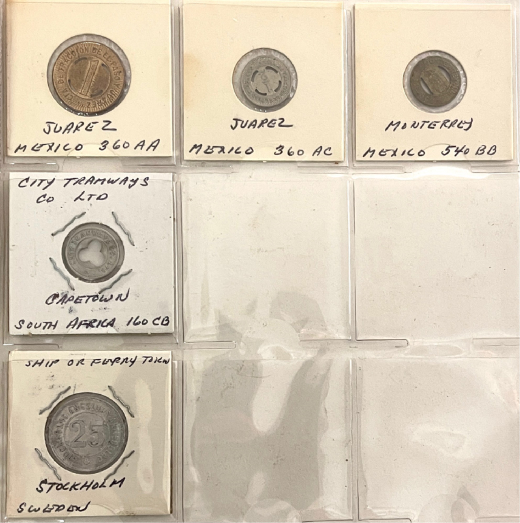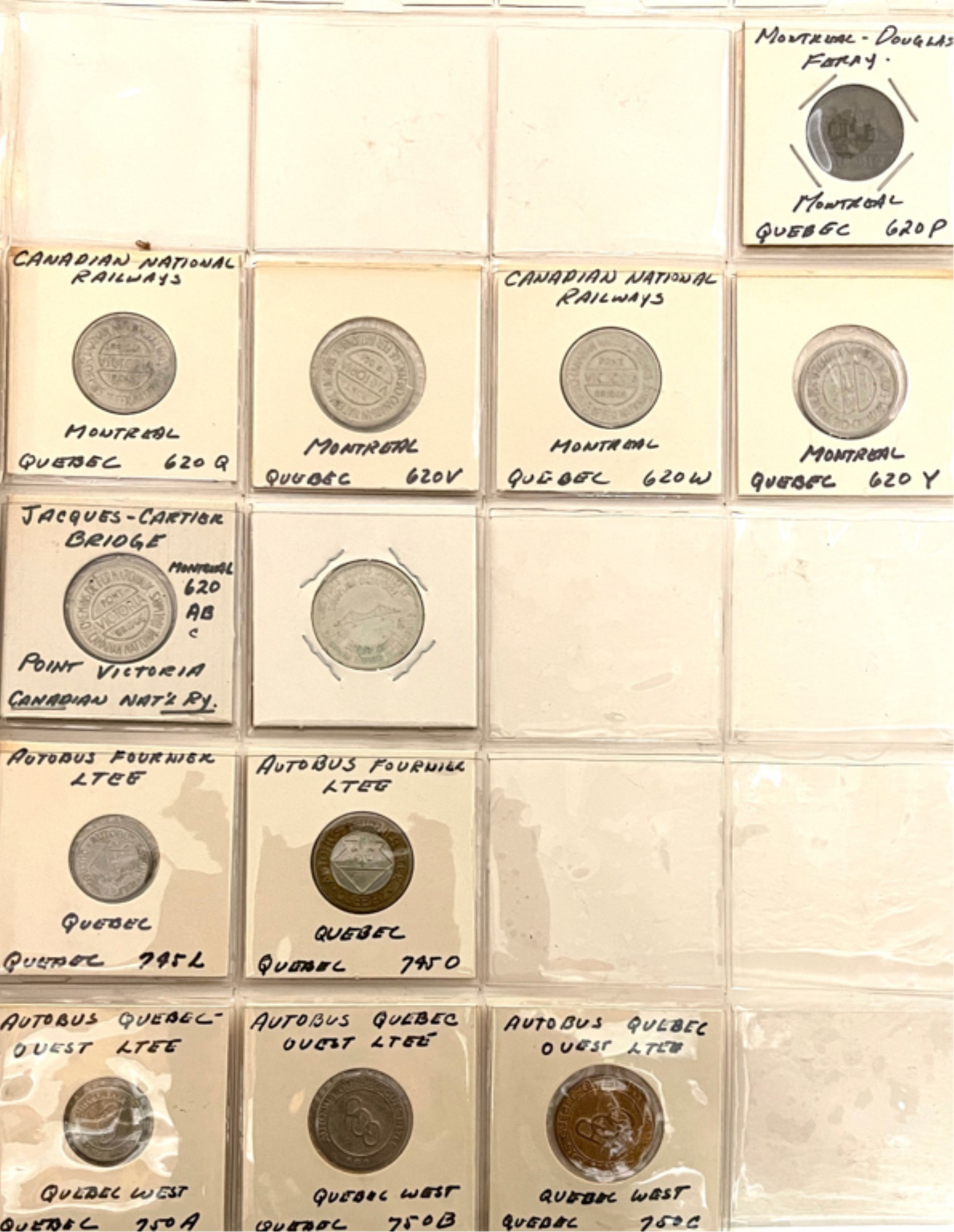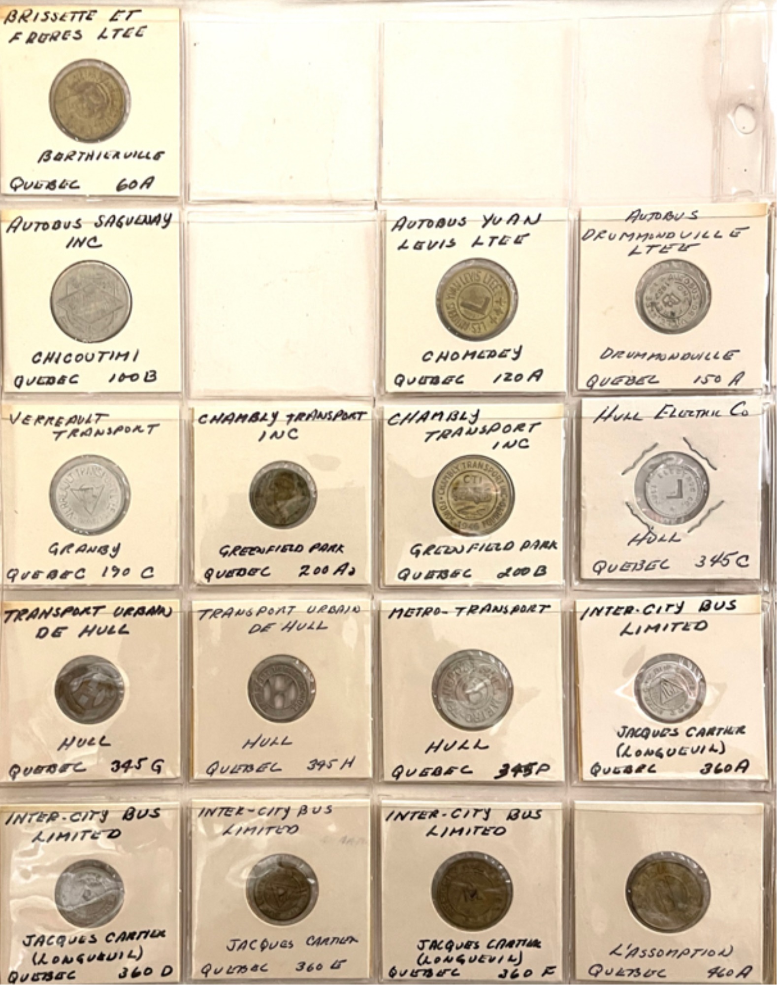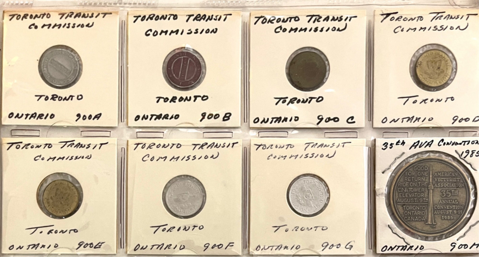 Transit tokens housed in a (17) sleeve binder. 11 1/2" x 10 1/2" x 2"