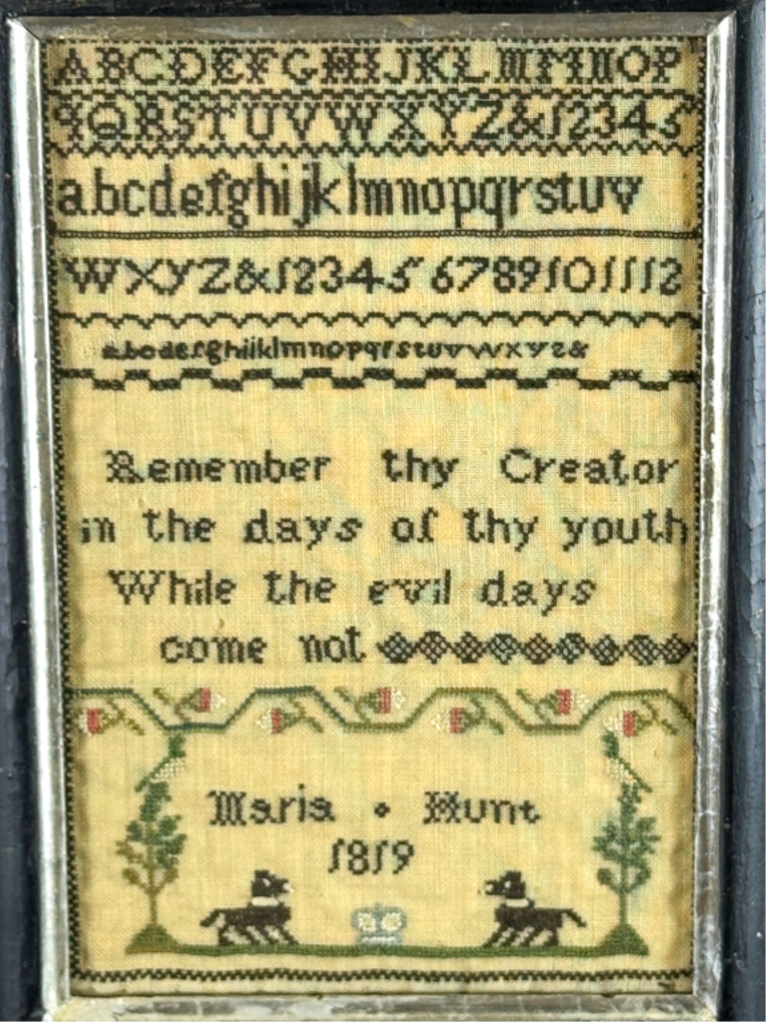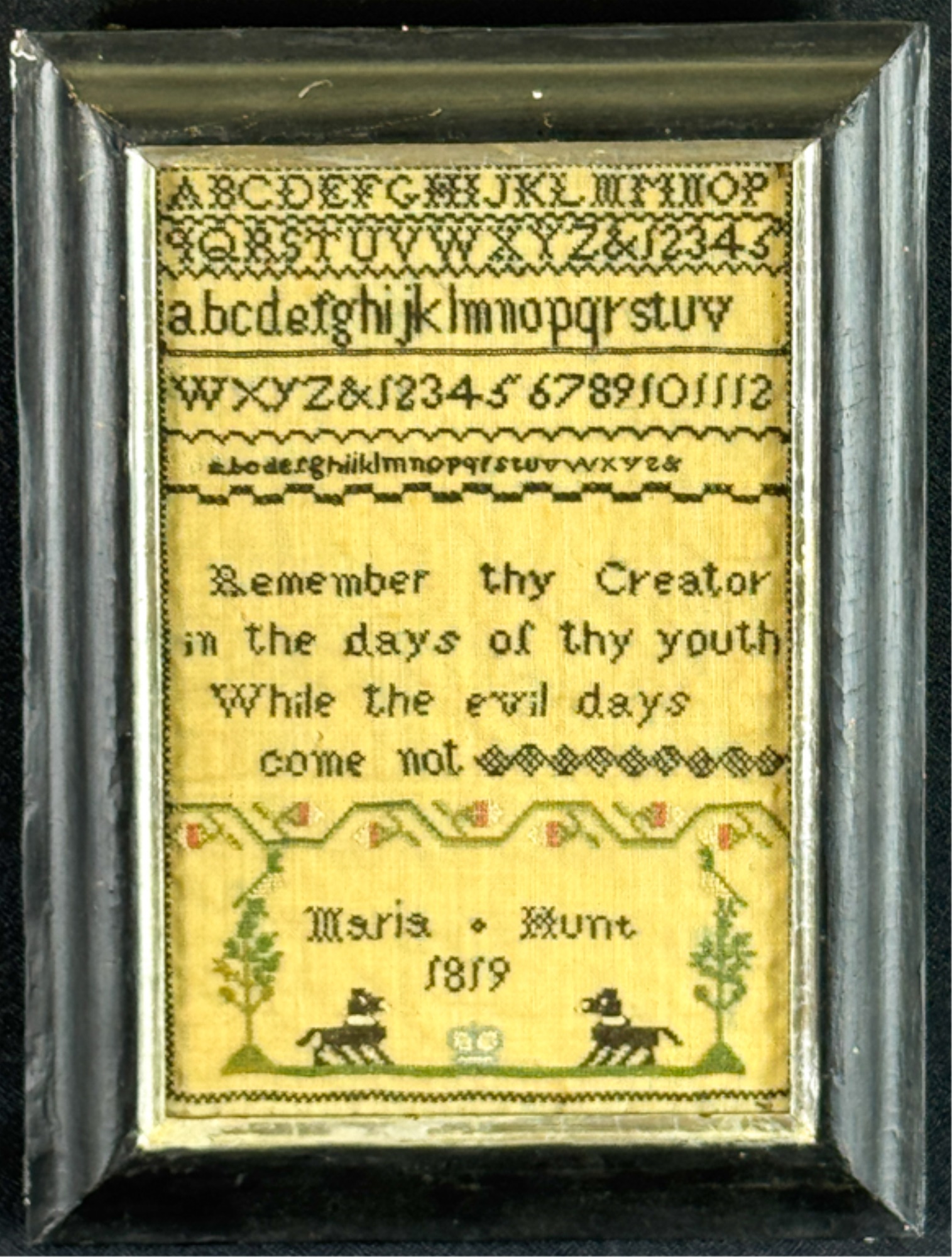 With motto. Framed. 10 1/4 x 7 3/4 inches. Condition: Good. Some losses to frame.