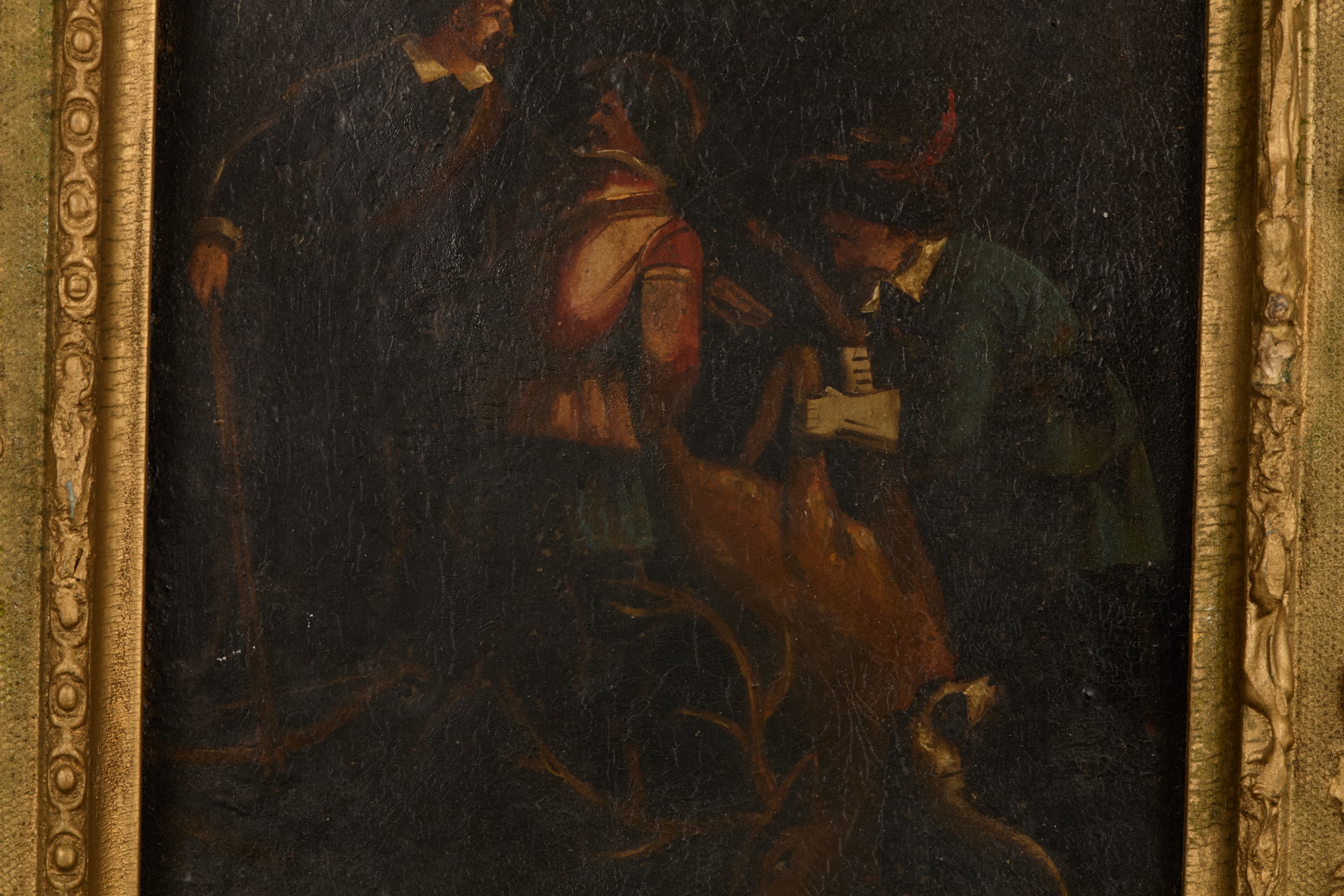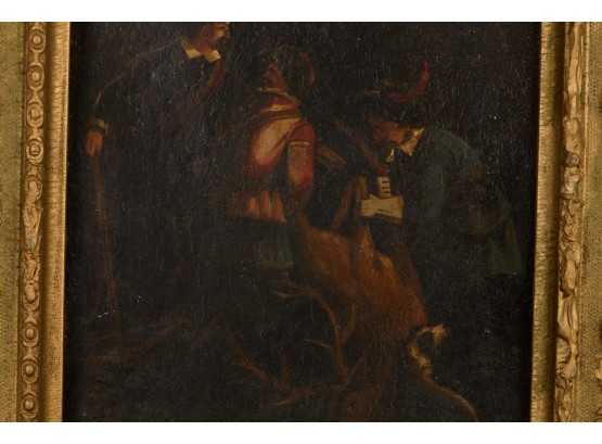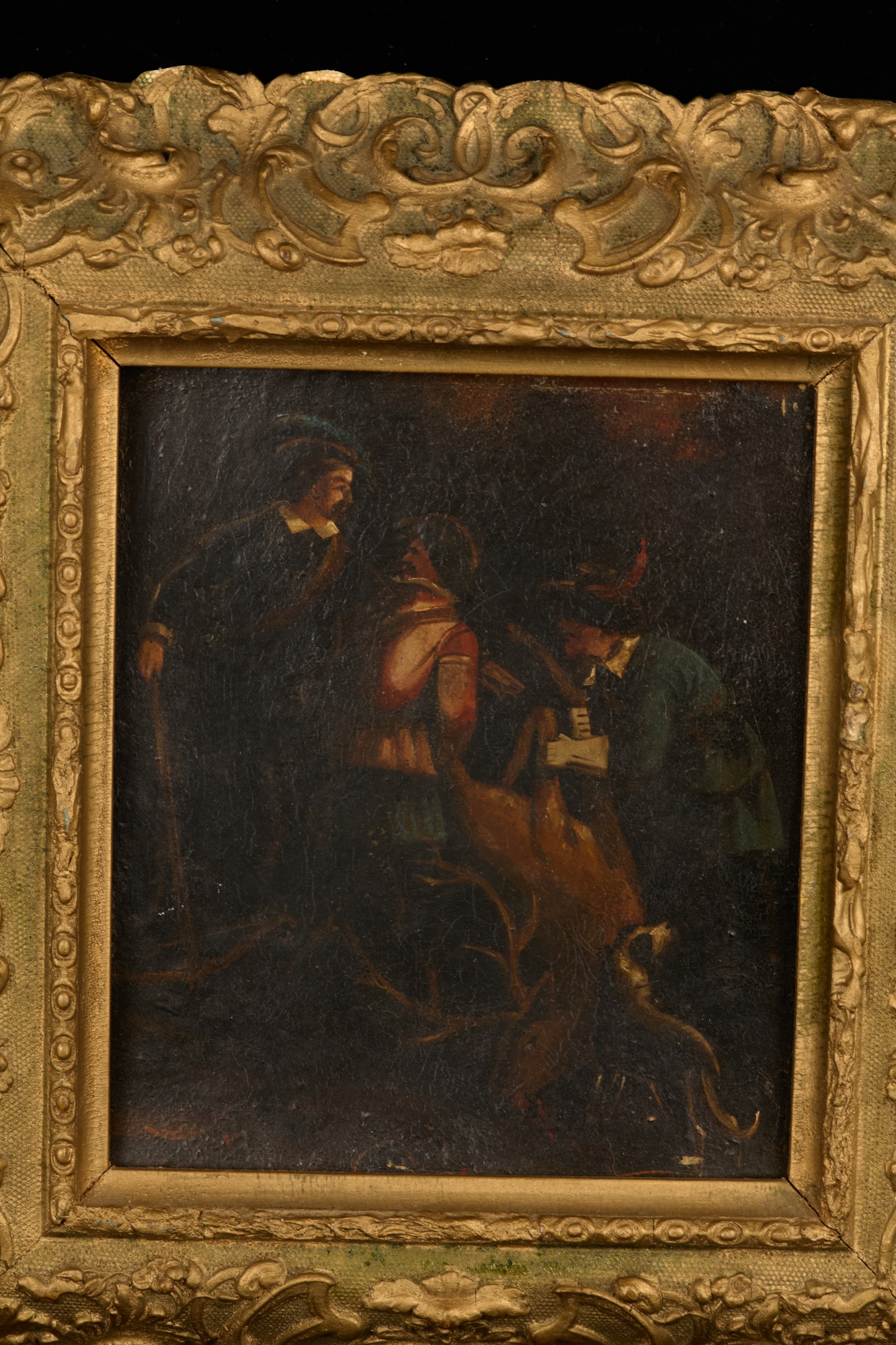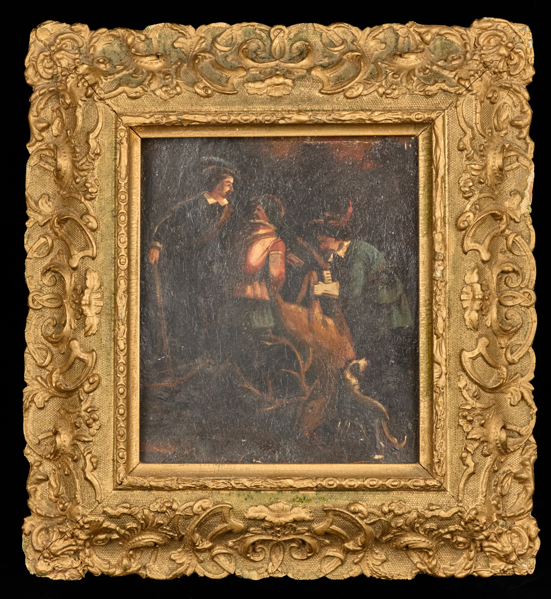 Hunting Party with Stag 7 x 6 inches. unsigned. framed 11.5 x 10.5 inches (overall) Condition: Good Temp No 6119