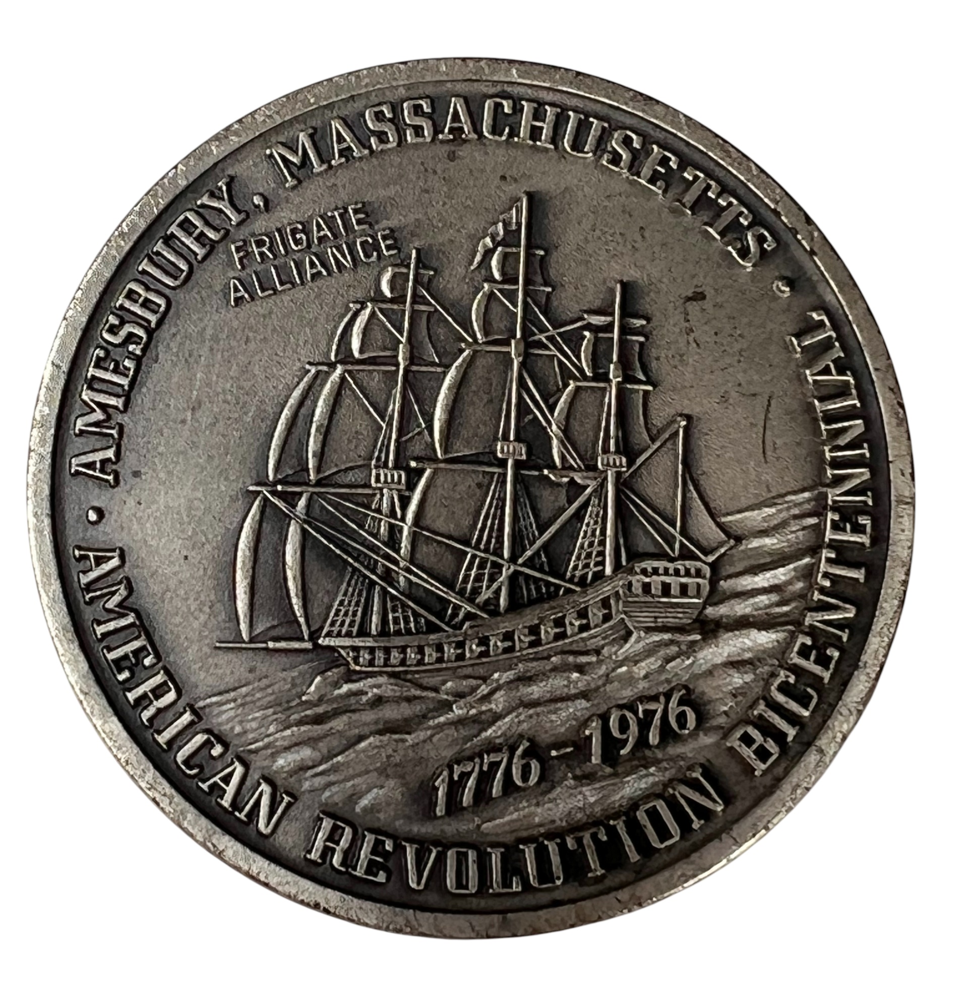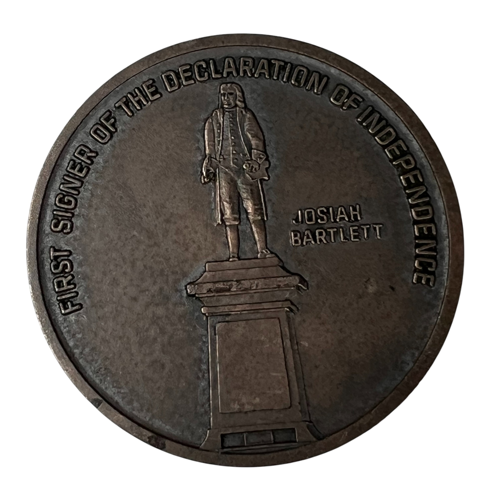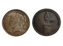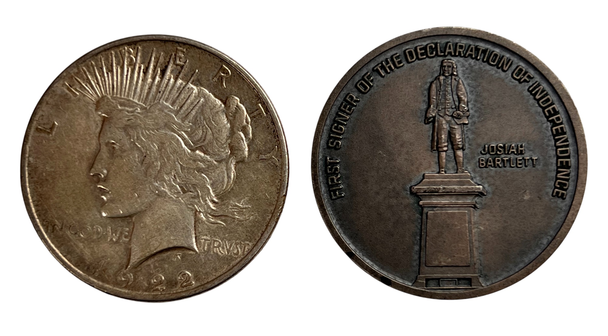 1922 United States Peace Silver Dollar. Along with a Bicentennial Amesbury, MA coin marked sterling silver depicting Josiah Bartlett, signer of the Declaration of Independence. 1.73 OZT overall Condition: Good