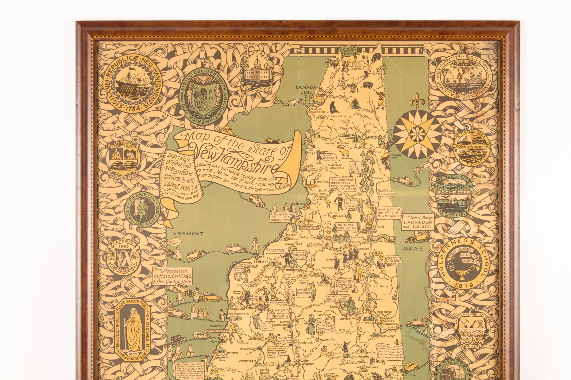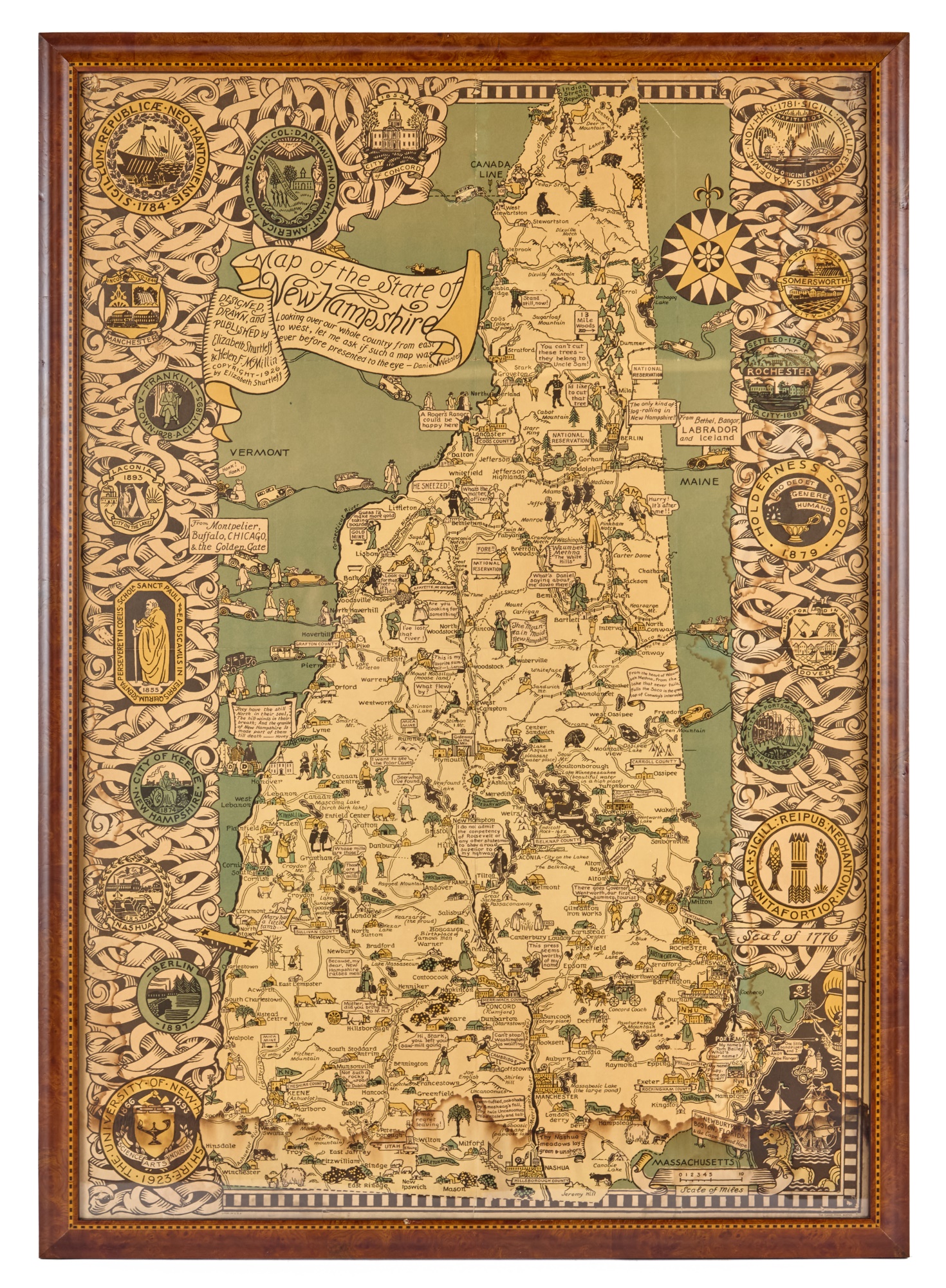 Elizabeth Shurtliff and Helen F. McMillen. 36 x 25.5 inches (including custom burlwood frame with tape inlay. Condition: Tidelines Temp No 6160