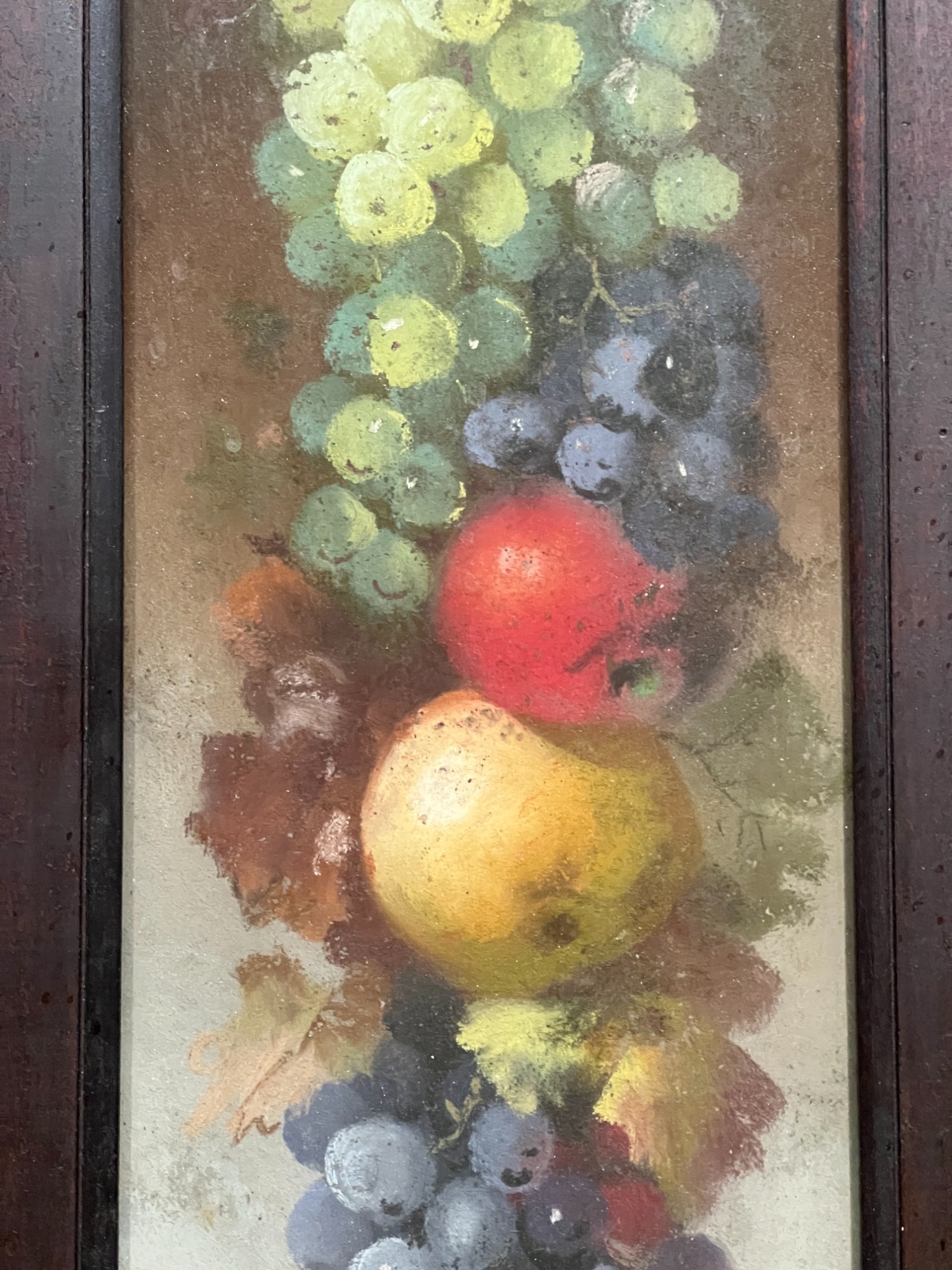 Still life with Fruit. pastel. unsigned. framed 31 x 10 inches (overall) Condition: Good Temp No 6249