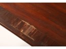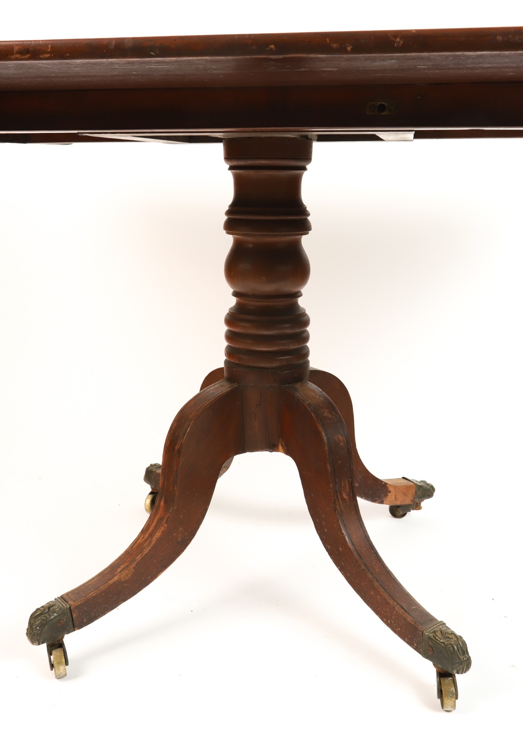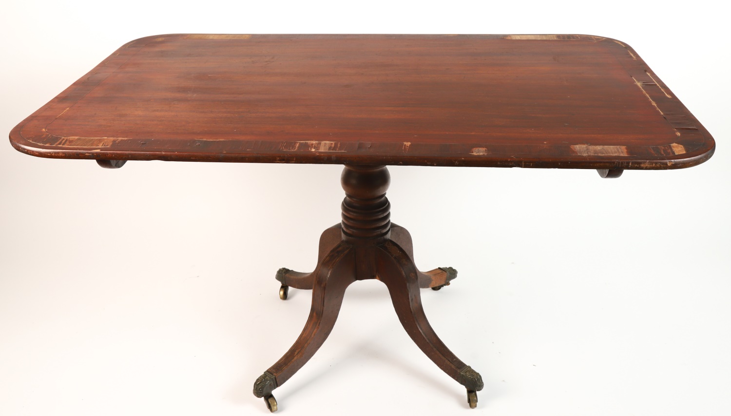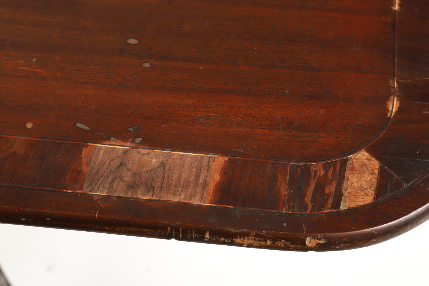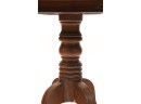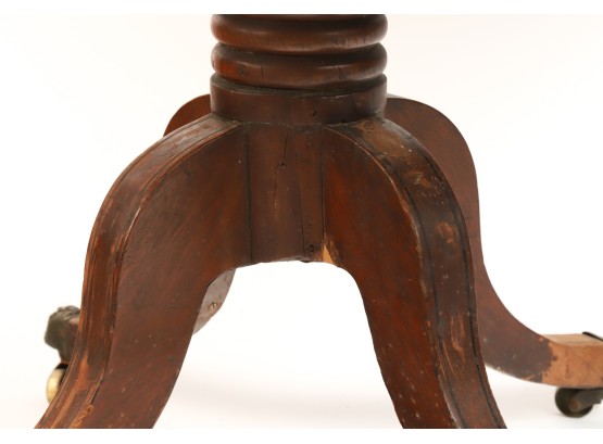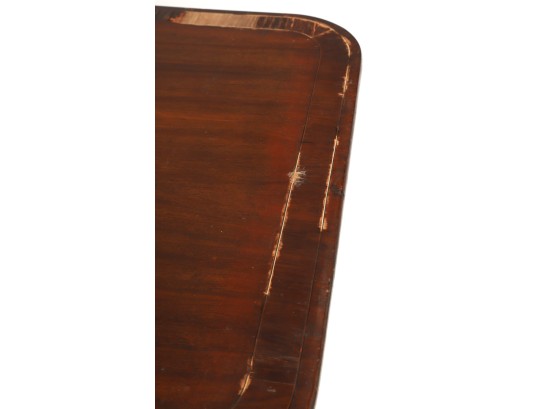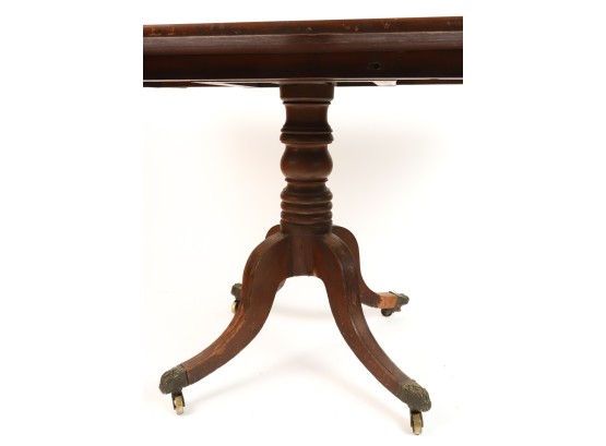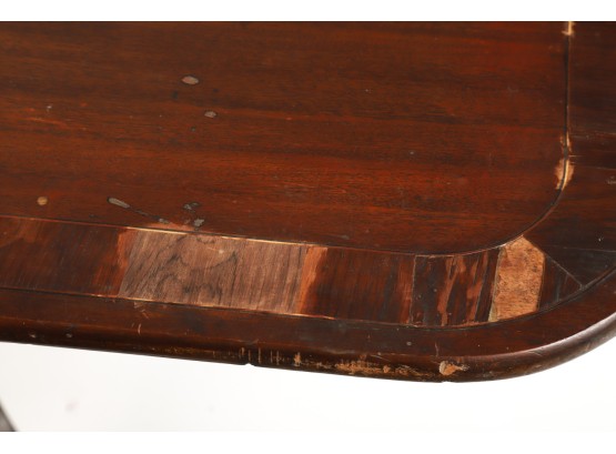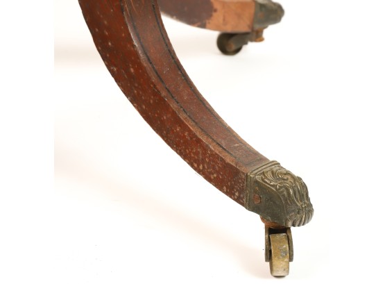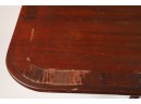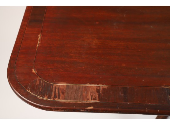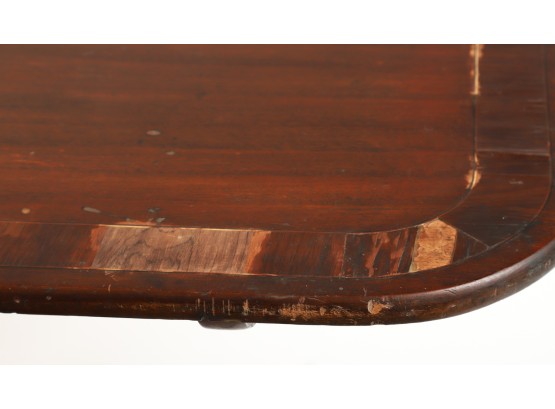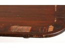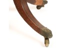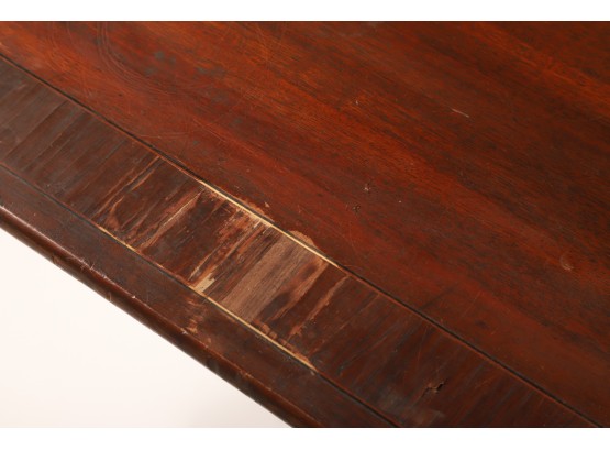 Rectangular top with rounded corners, spool turned style and molded cabriole legs raised on brass casters. 28 3/4 x 35 x 55 inches Condition: Losses to veneer on top. Finish needs Restoration Temp No 6288