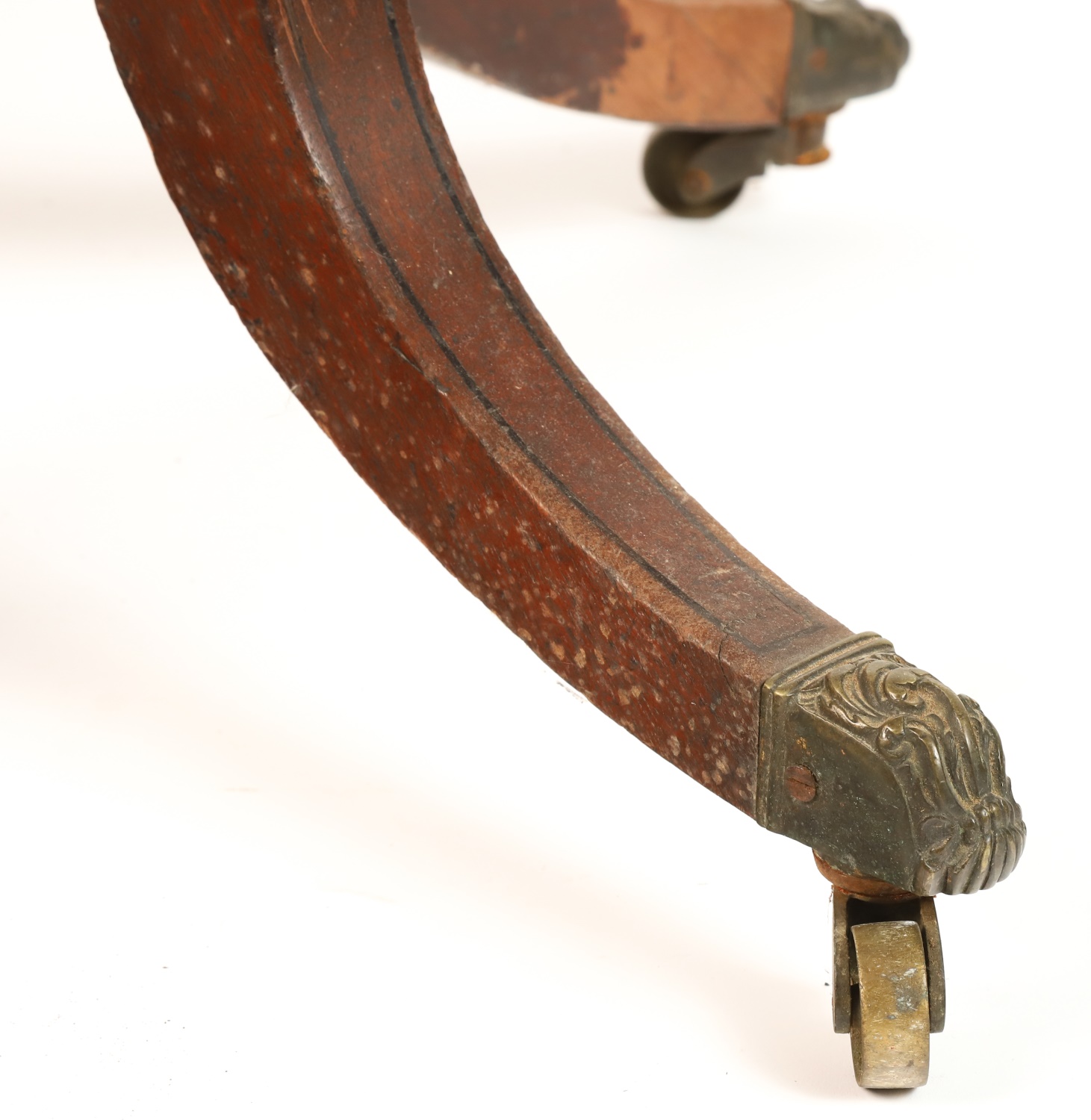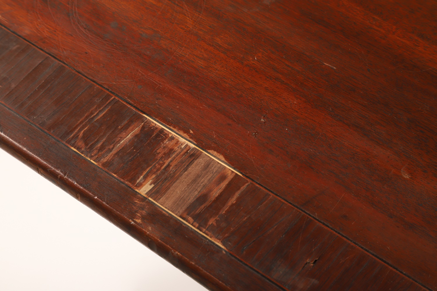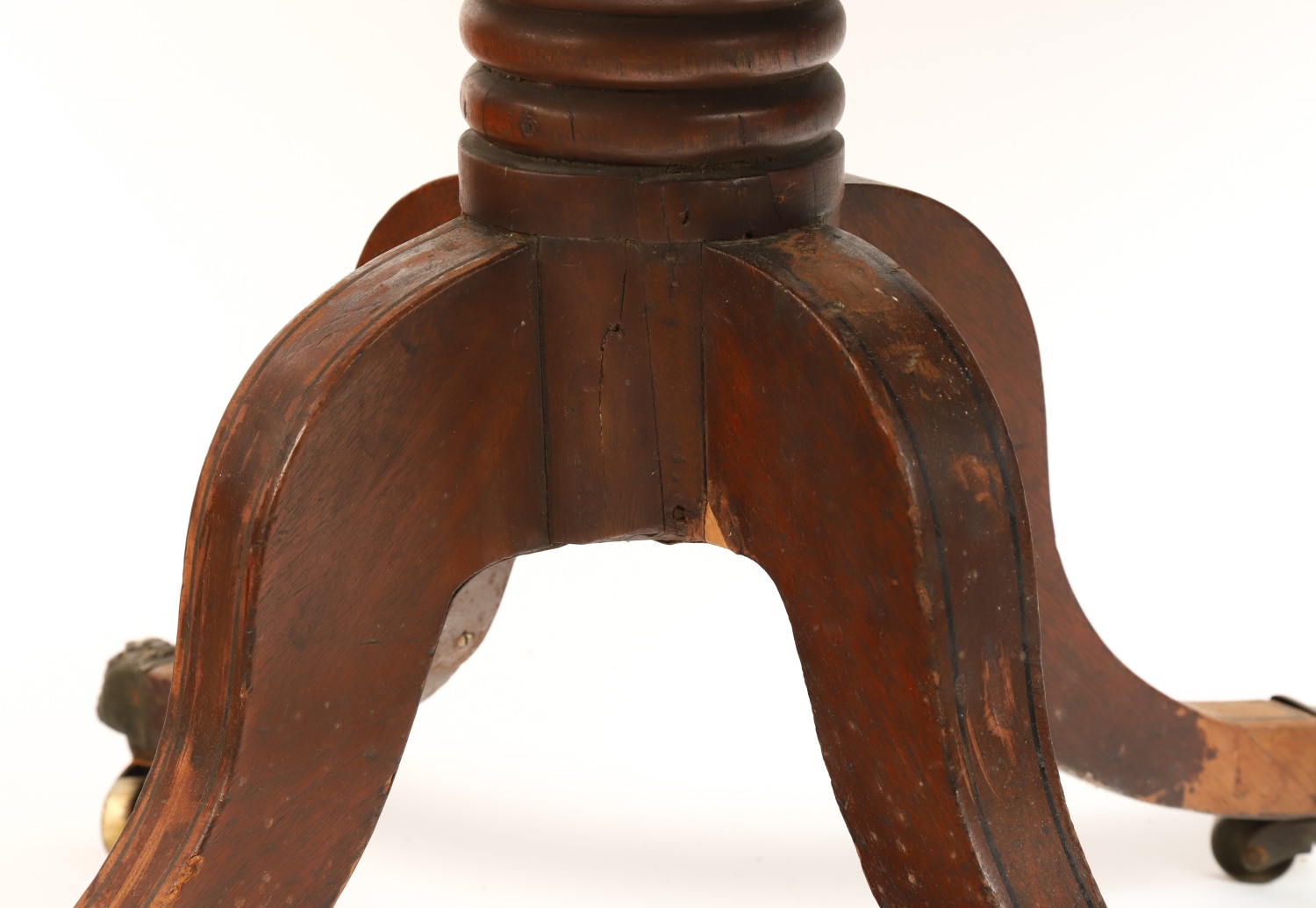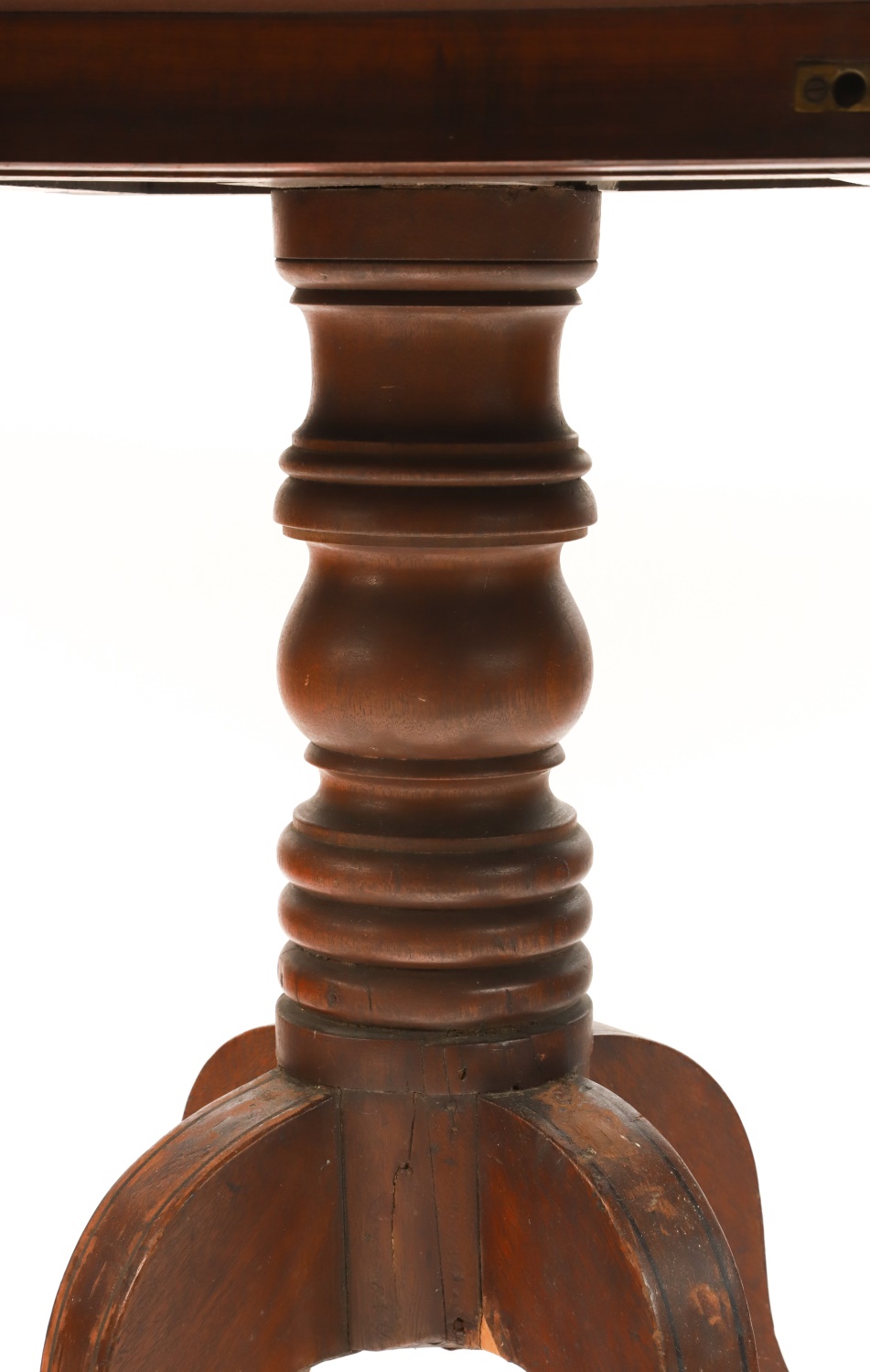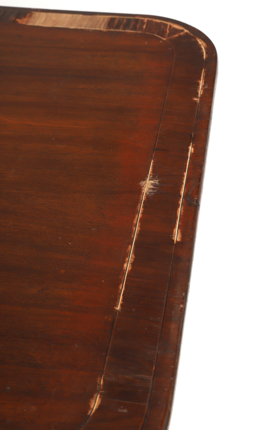 Rectangular top with rounded corners, spool turned style and molded cabriole legs raised on brass casters. 28 3/4 x 35 x 55 inches Condition: Losses to veneer on top. Finish needs Restoration Temp No 6288