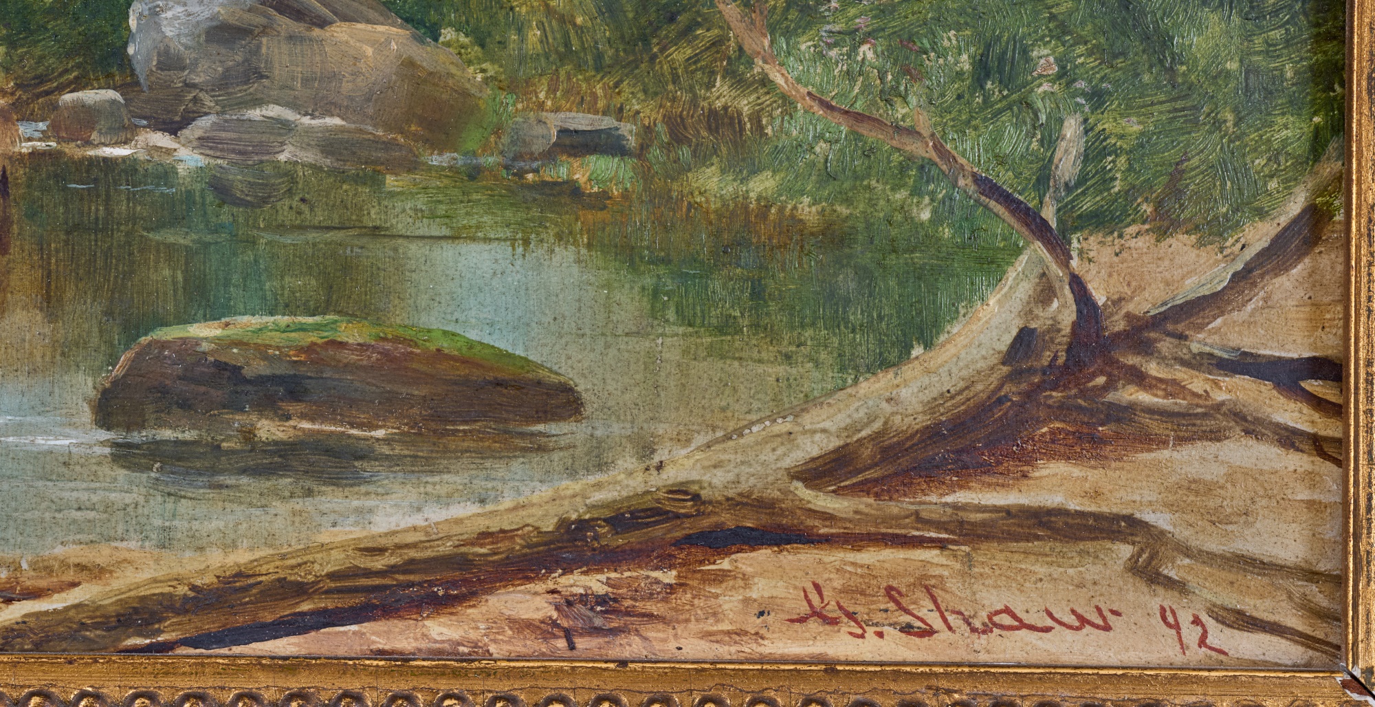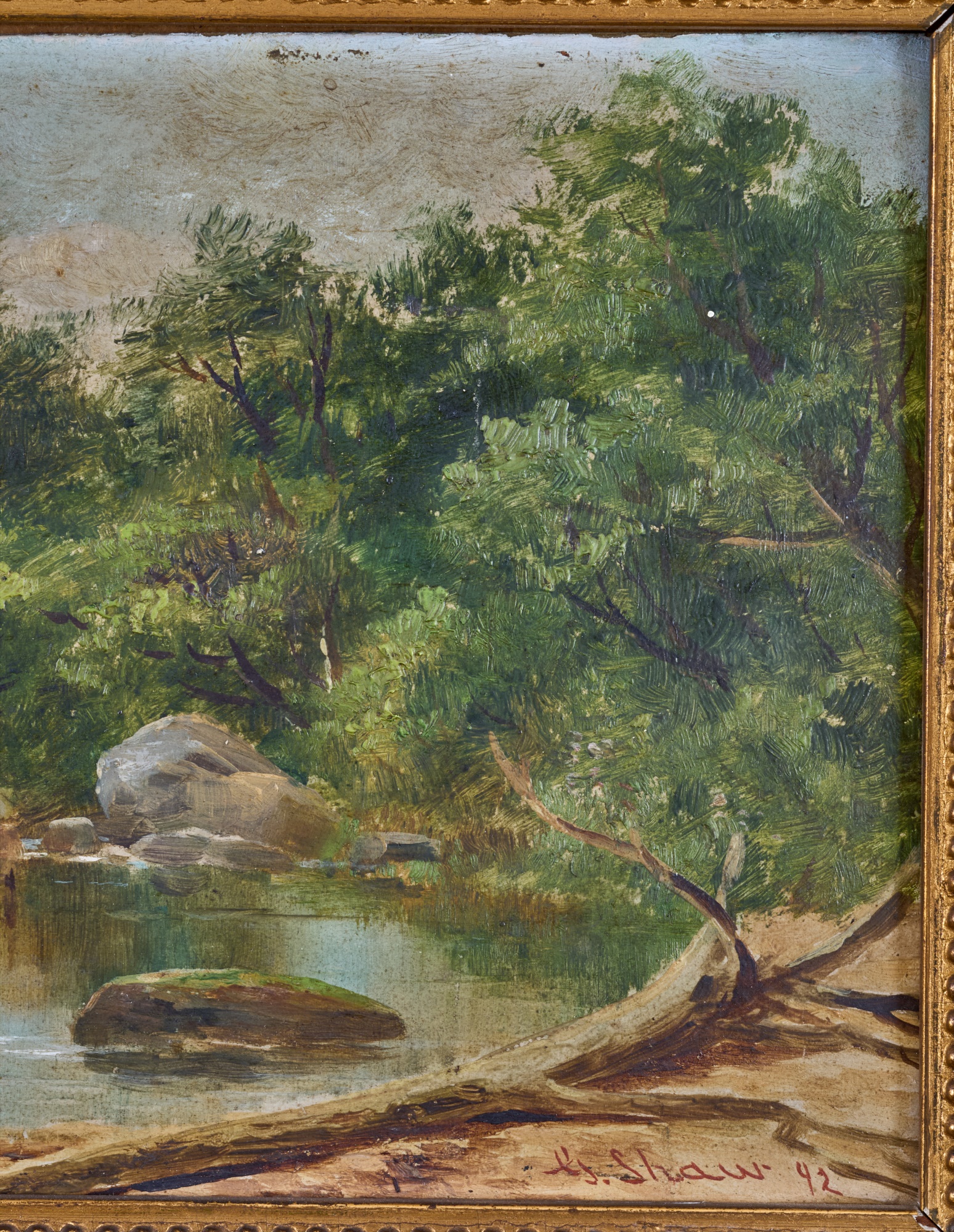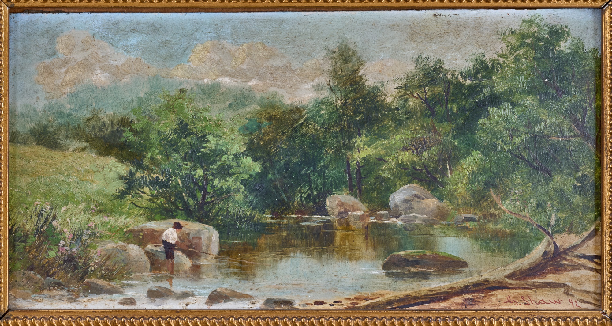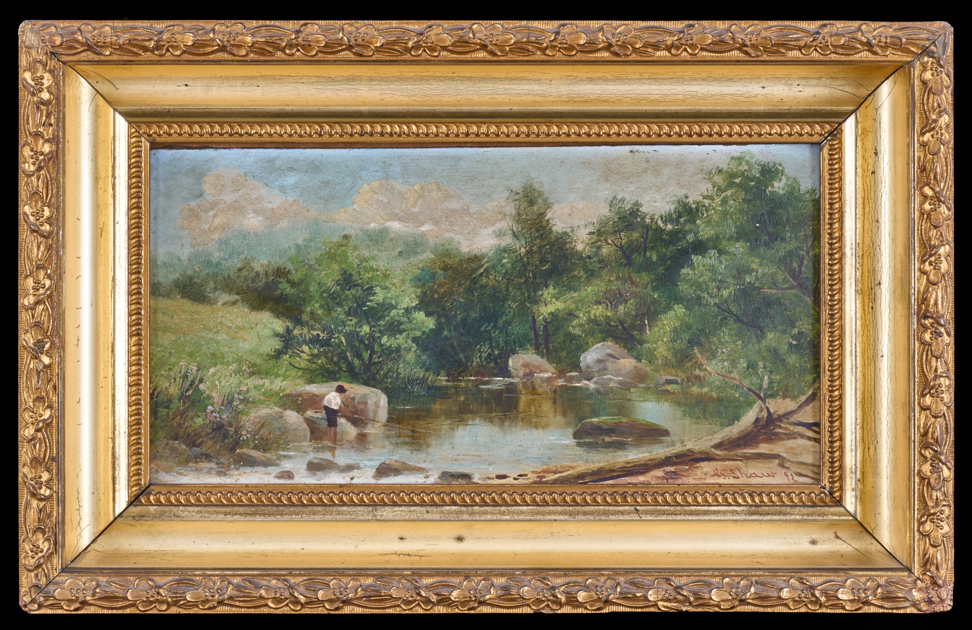 Oil on board 6 x 12 inches. signed G. Shaw and dated 1892. framed 10.5 x 16 inches (overall) Condition: Surface grime