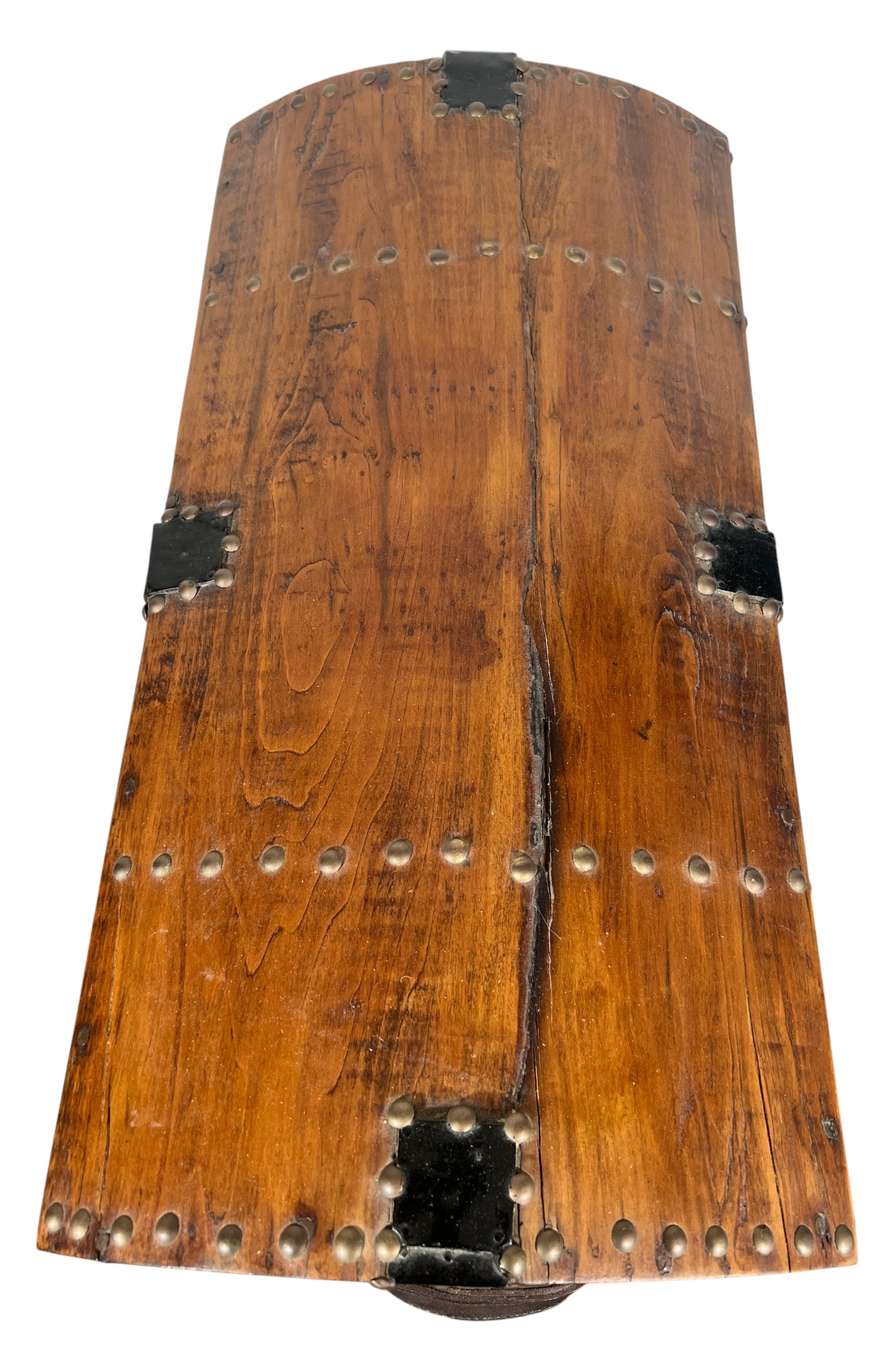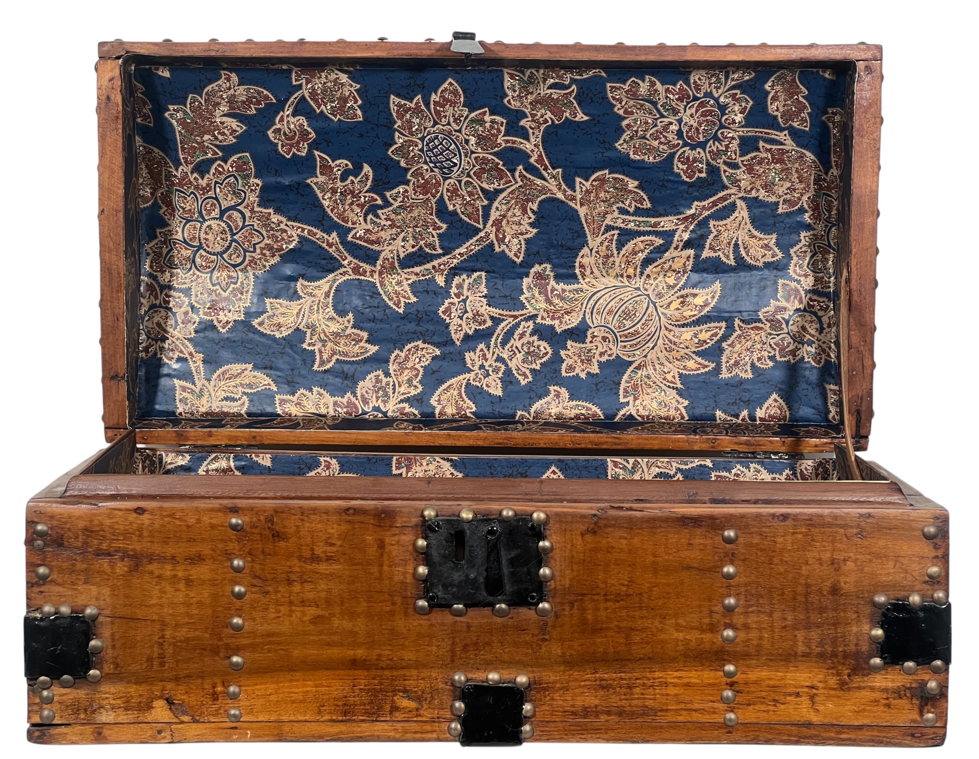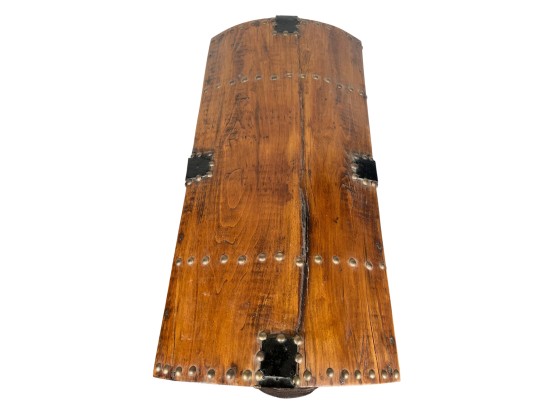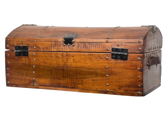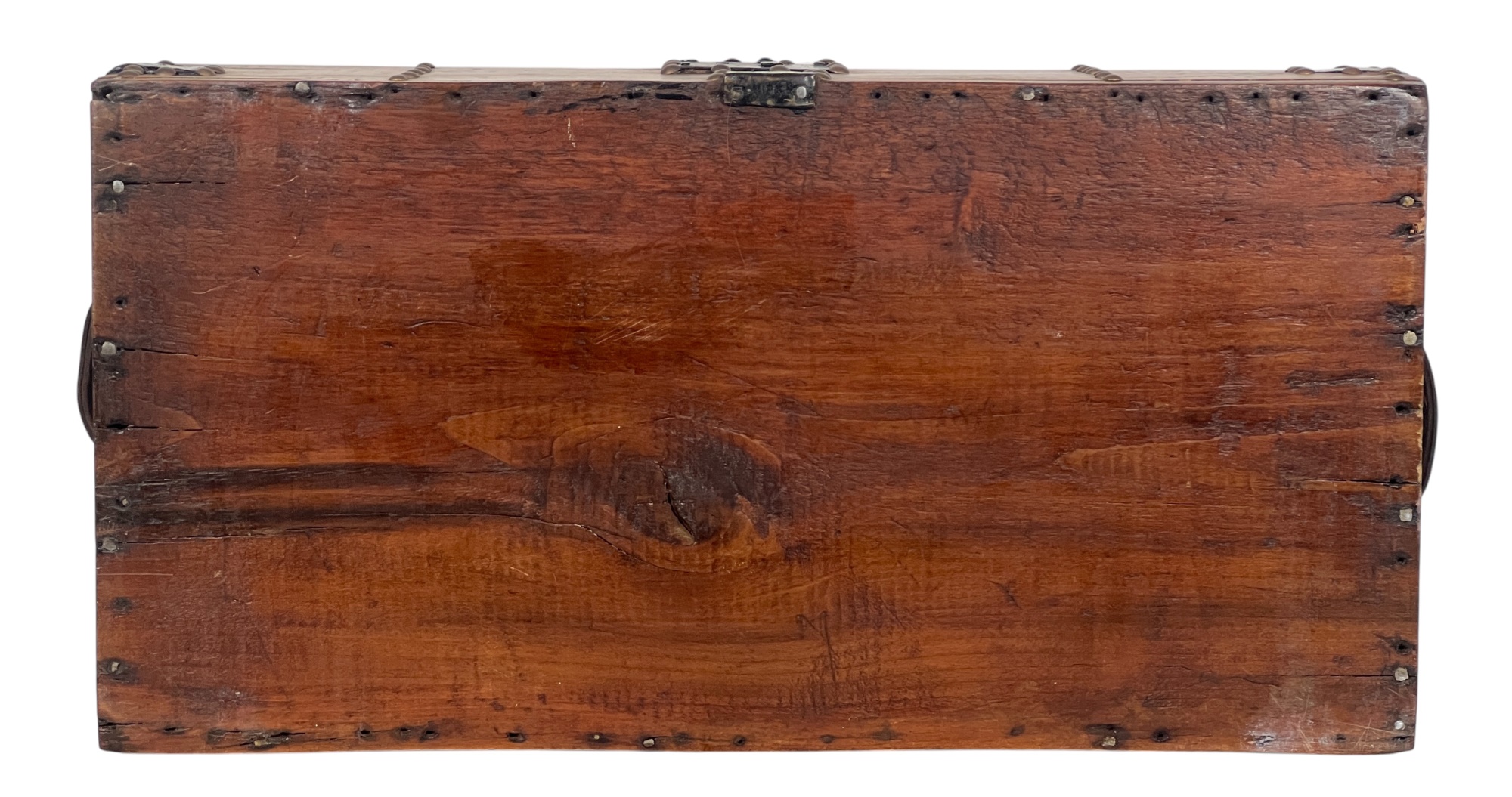 With iron lock & leather handles. 11 x 24 1/2 x 12 1/2 inches. Condition: Good. Temp No 8789