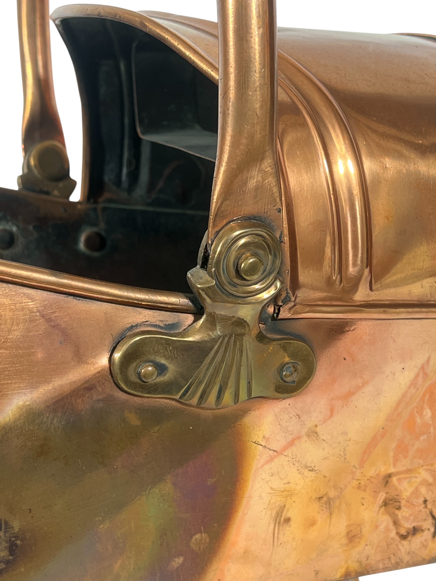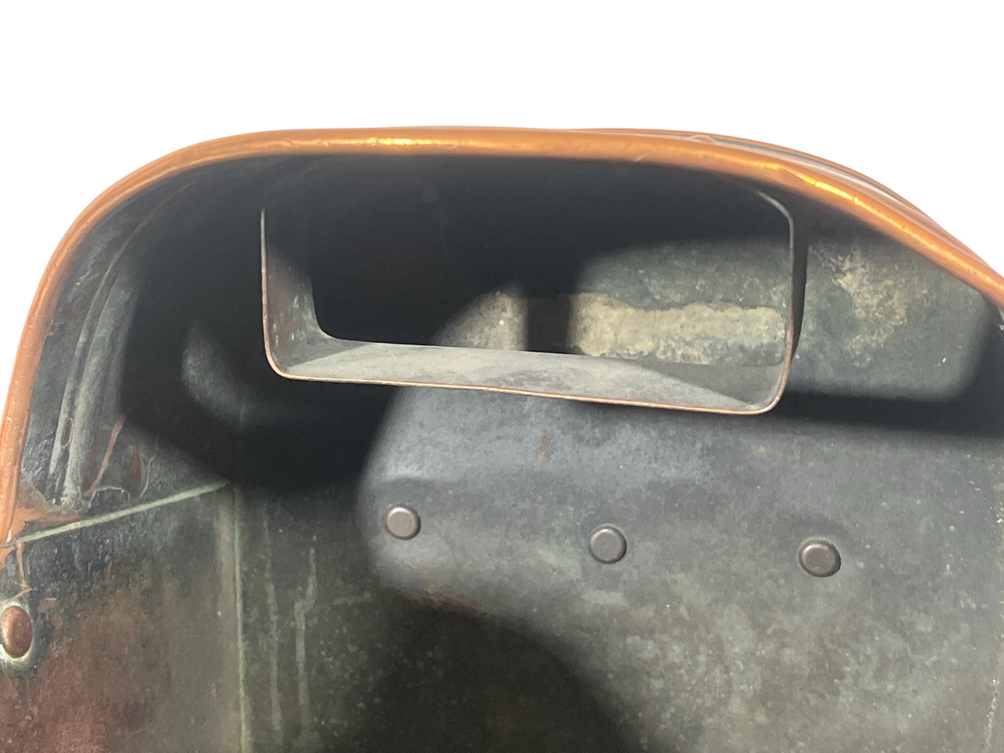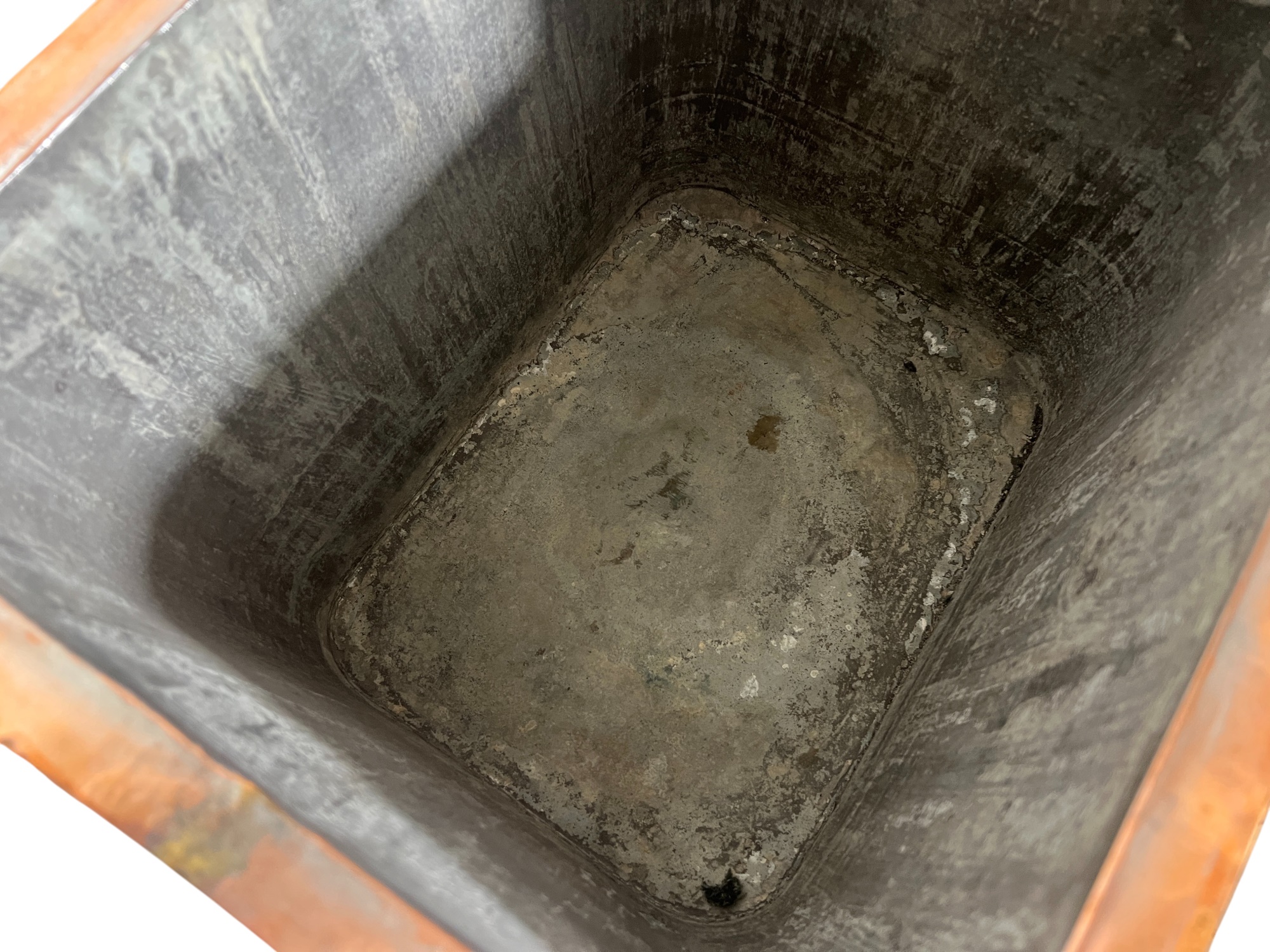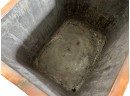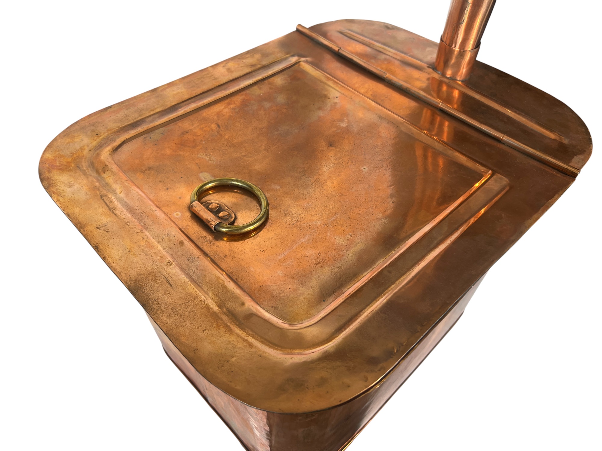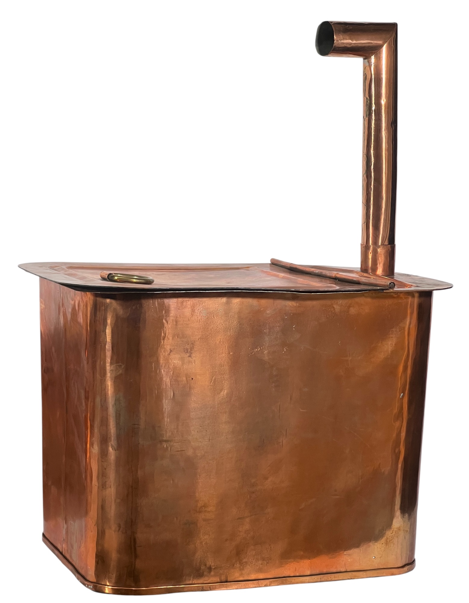 With brass hardware, dovetail construction. 14 x 15 1/2 x 19 inches. Condition: Chimney needs minor reshaping to fit in socket. Temp No 8742